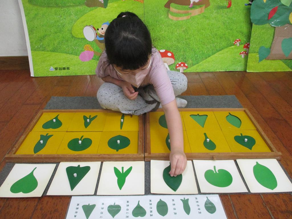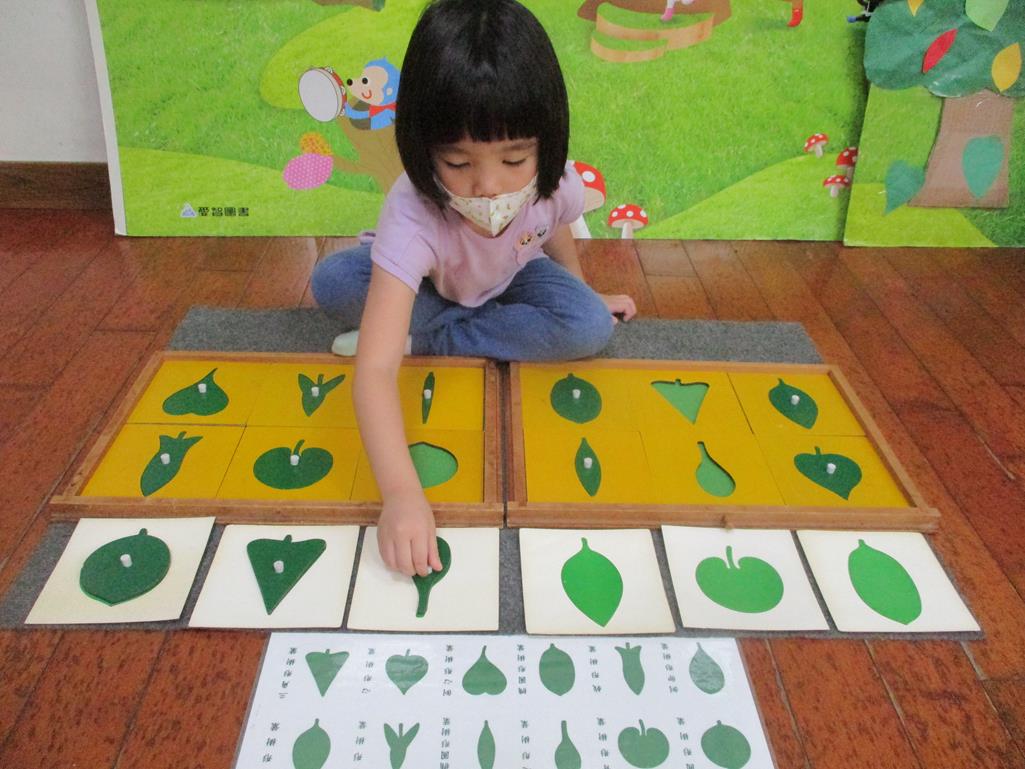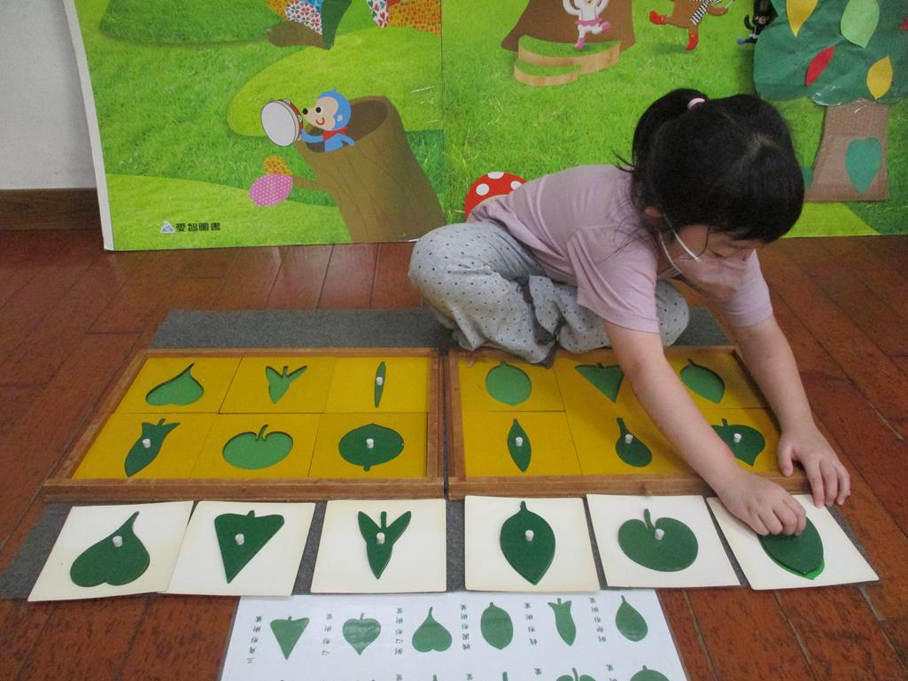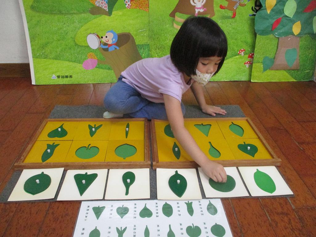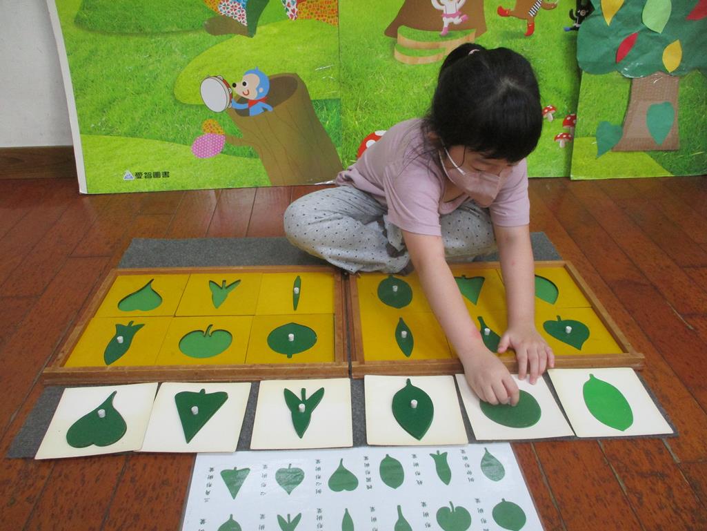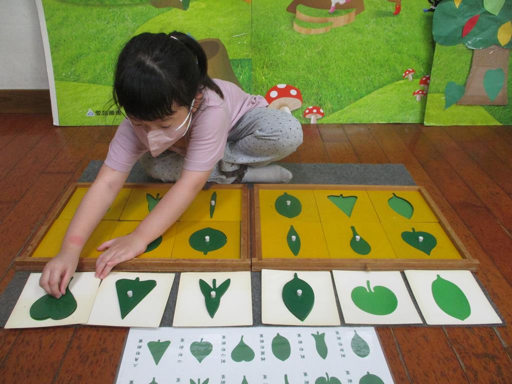 相簿名稱: 茉莉班-蒙特梭利教學(感官教育-樹葉拼圖櫥 (名稱介紹+圖卡) )