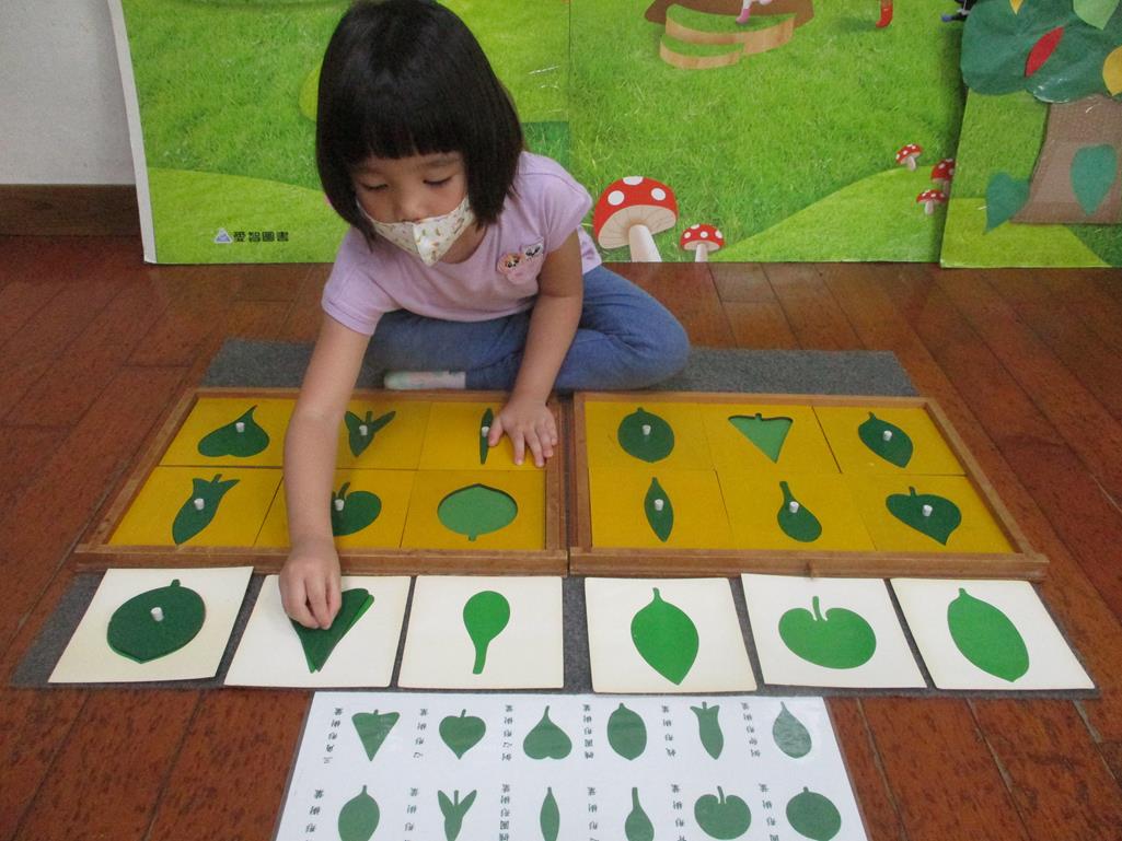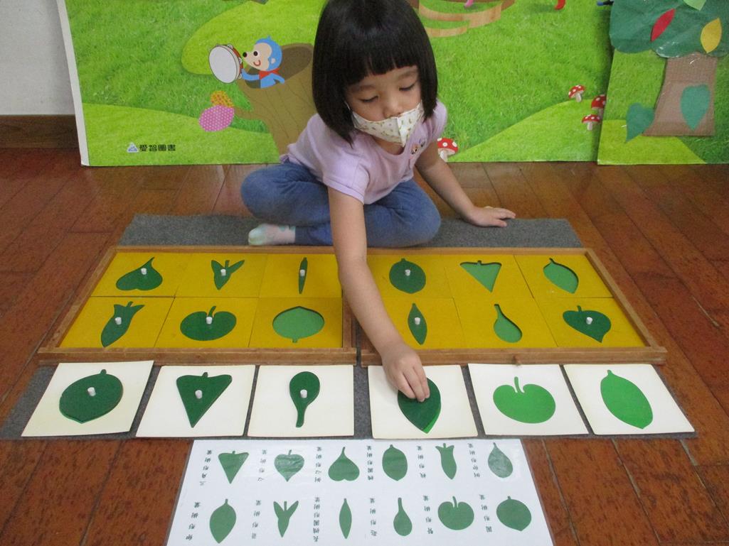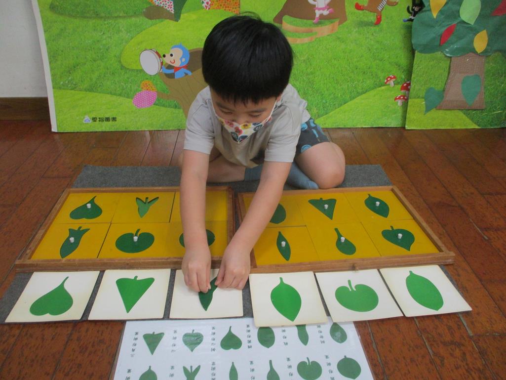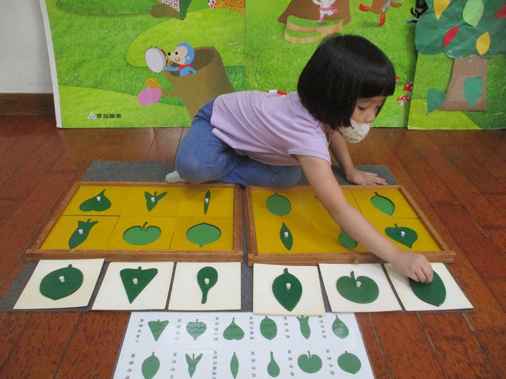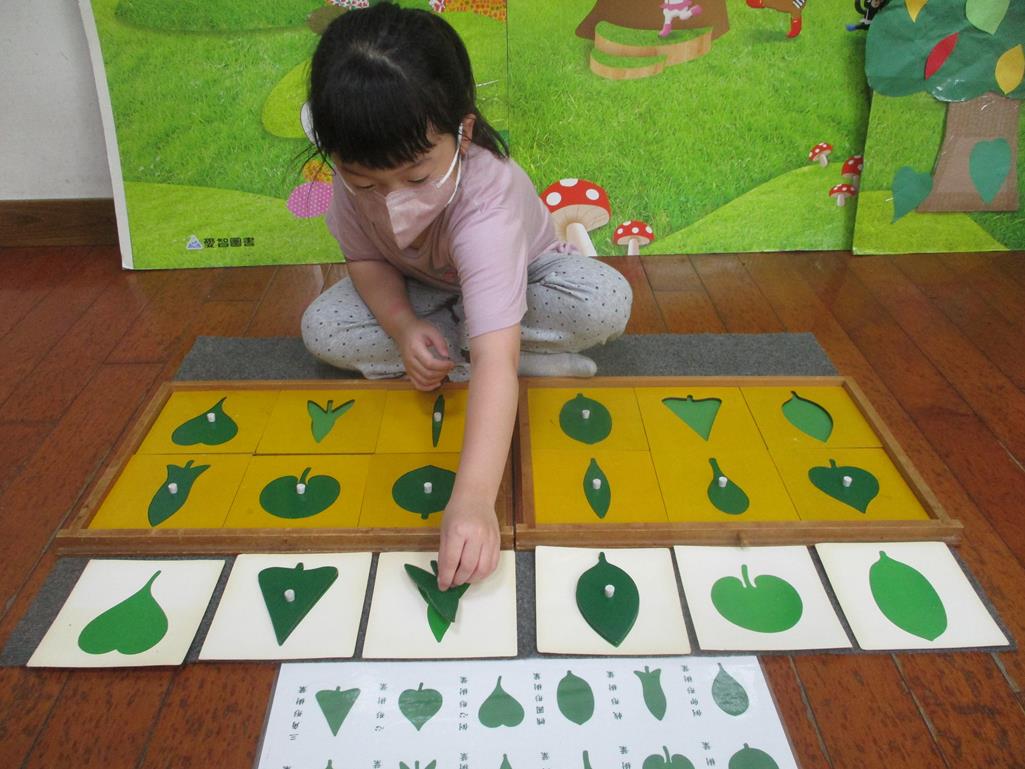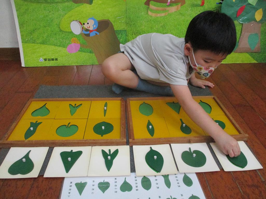 相簿名稱: 茉莉班-蒙特梭利教學(感官教育-樹葉拼圖櫥 (名稱介紹+圖卡) )