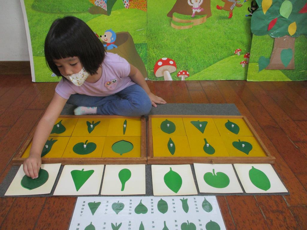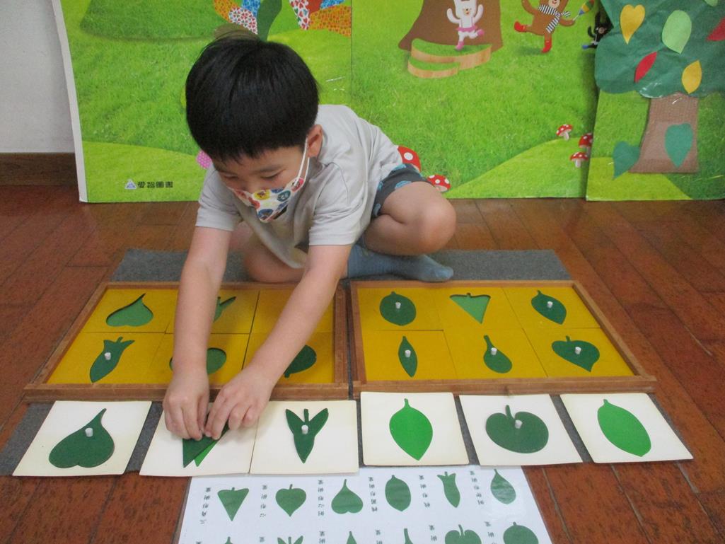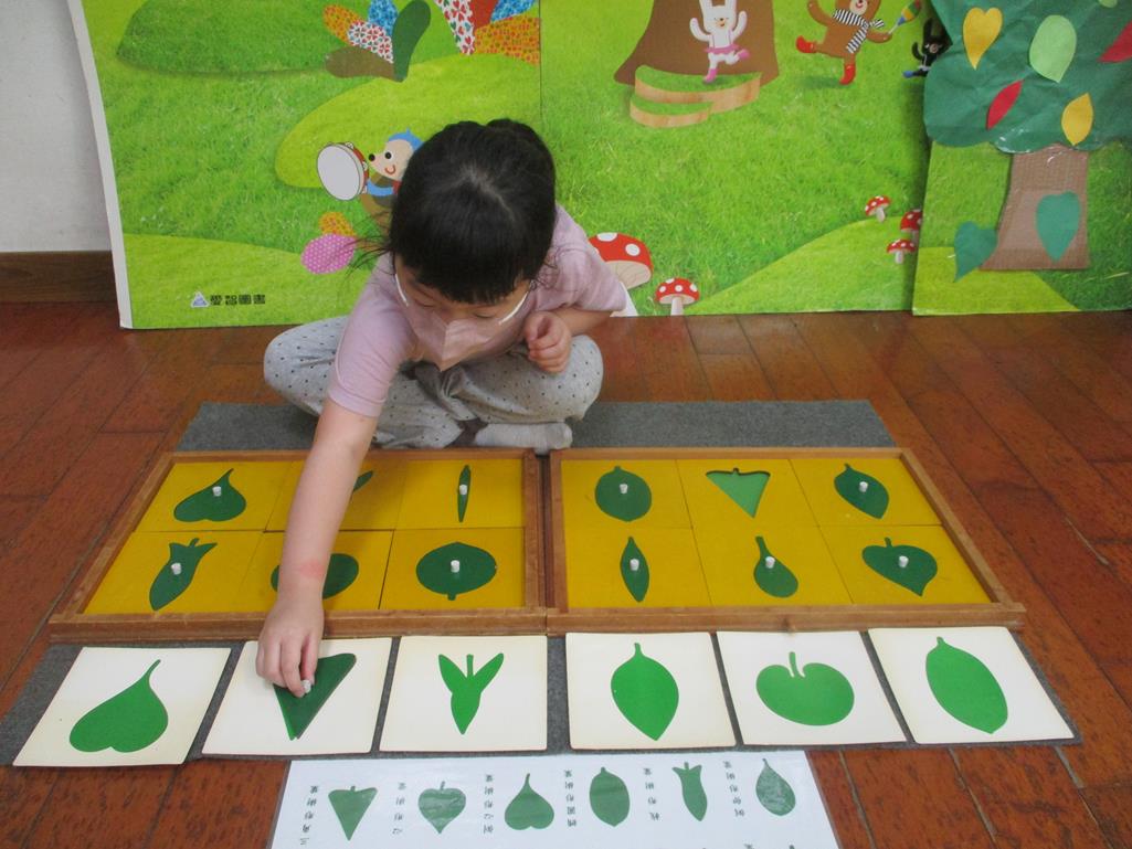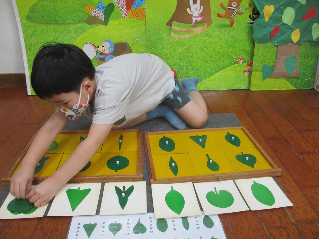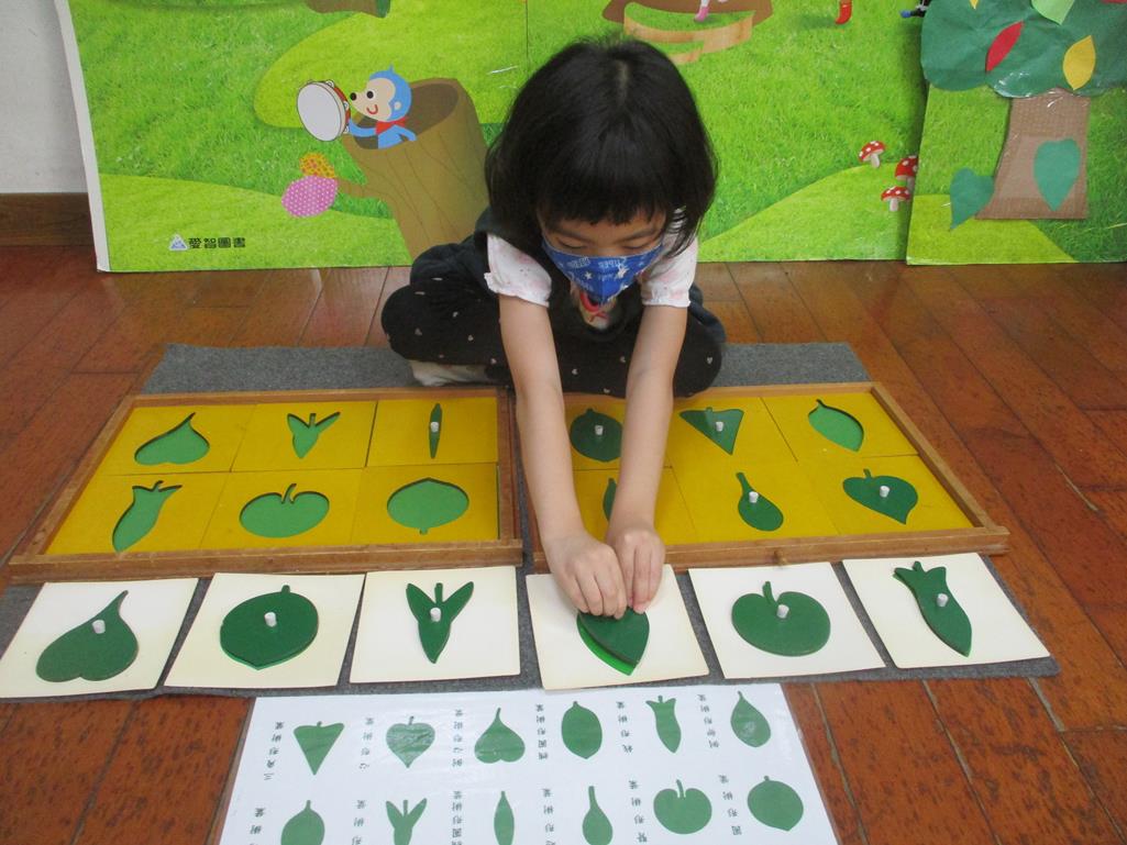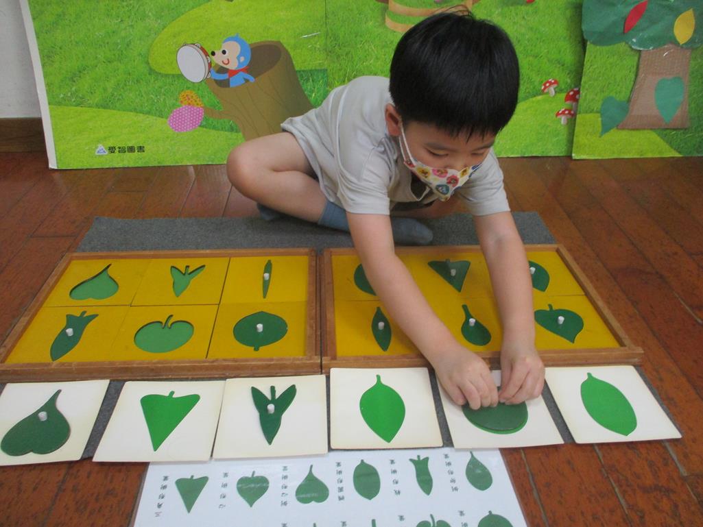 相簿名稱: 茉莉班-蒙特梭利教學(感官教育-樹葉拼圖櫥 (名稱介紹+圖卡) )