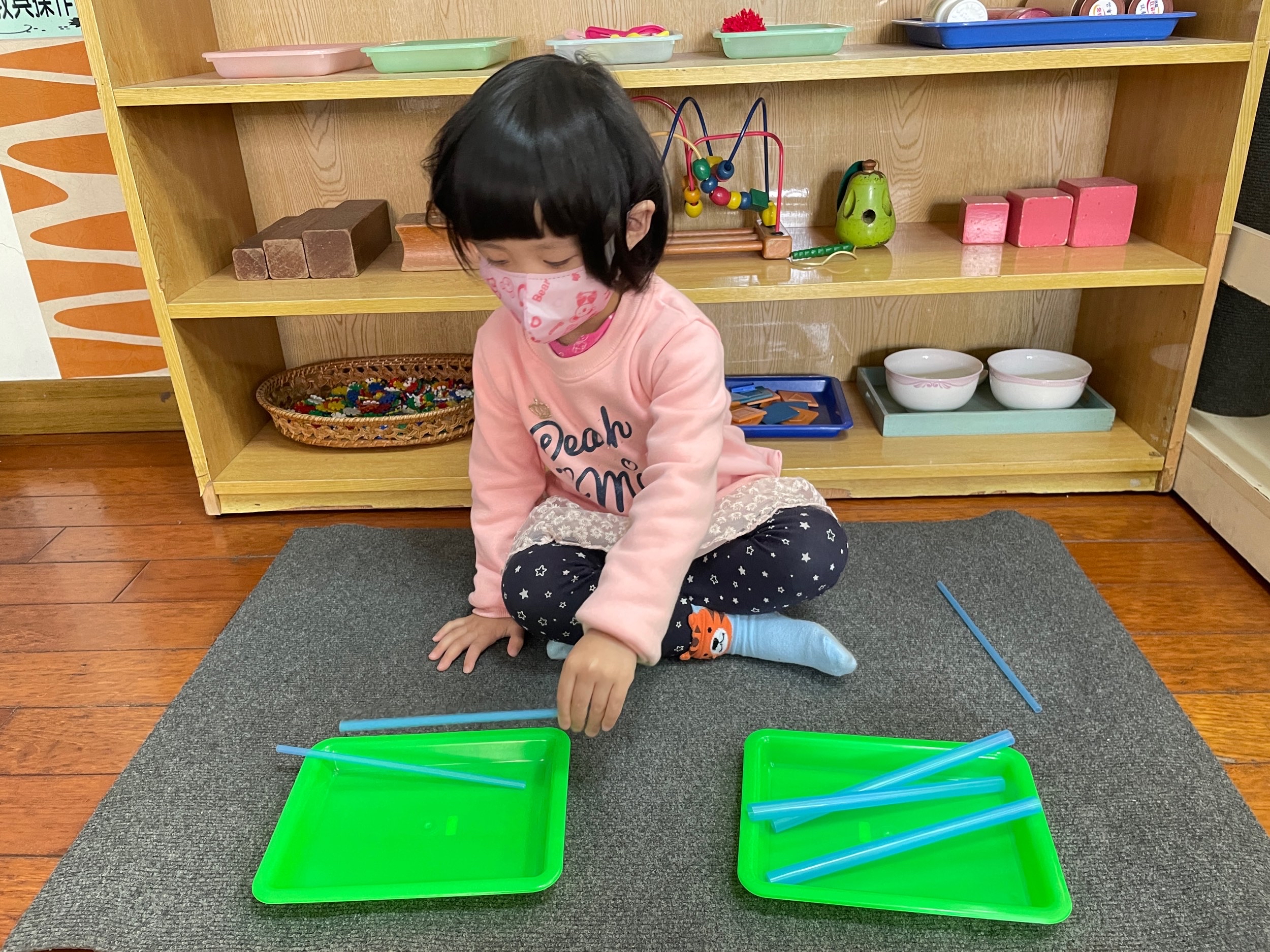相簿名稱: 櫻桃班-蒙特梭利教學(數學-吸管粗、細分類)