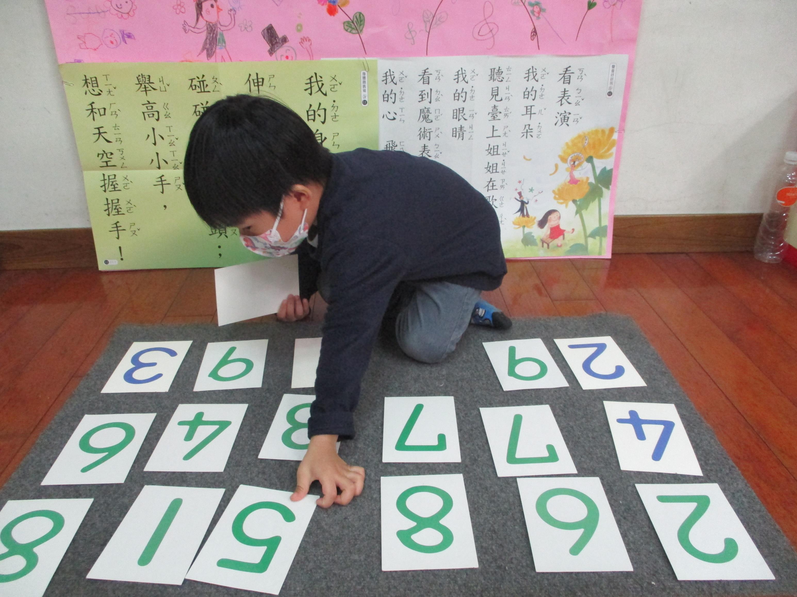 相簿名稱: 茉莉班-蒙特梭利教學(數學教育-找一找5在哪裡?)