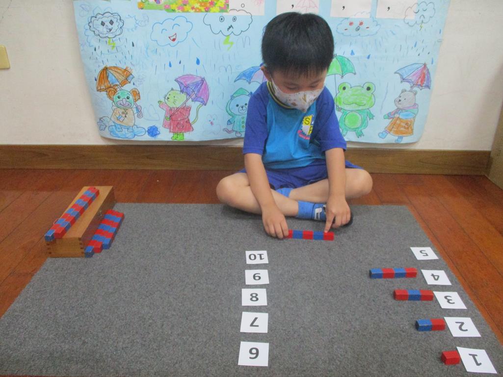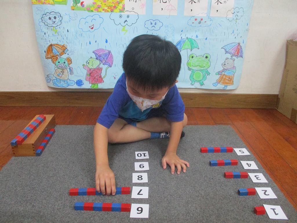 相簿名稱: 茉莉班-蒙特梭利教學(數學教育-數棒+1~10字卡)