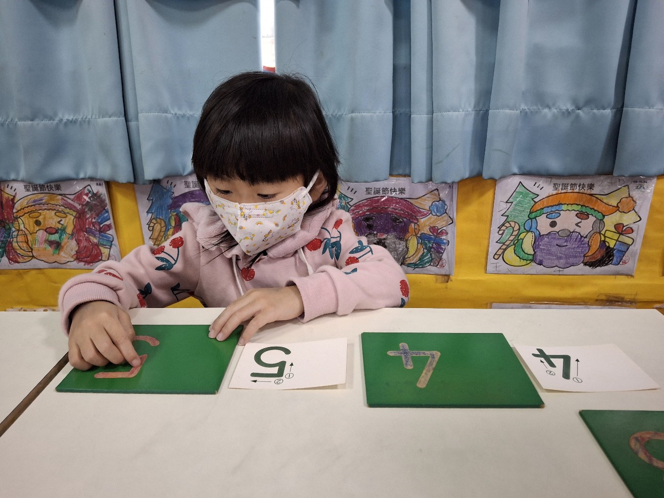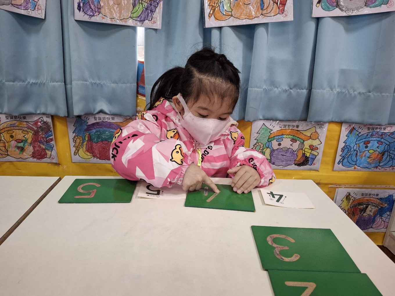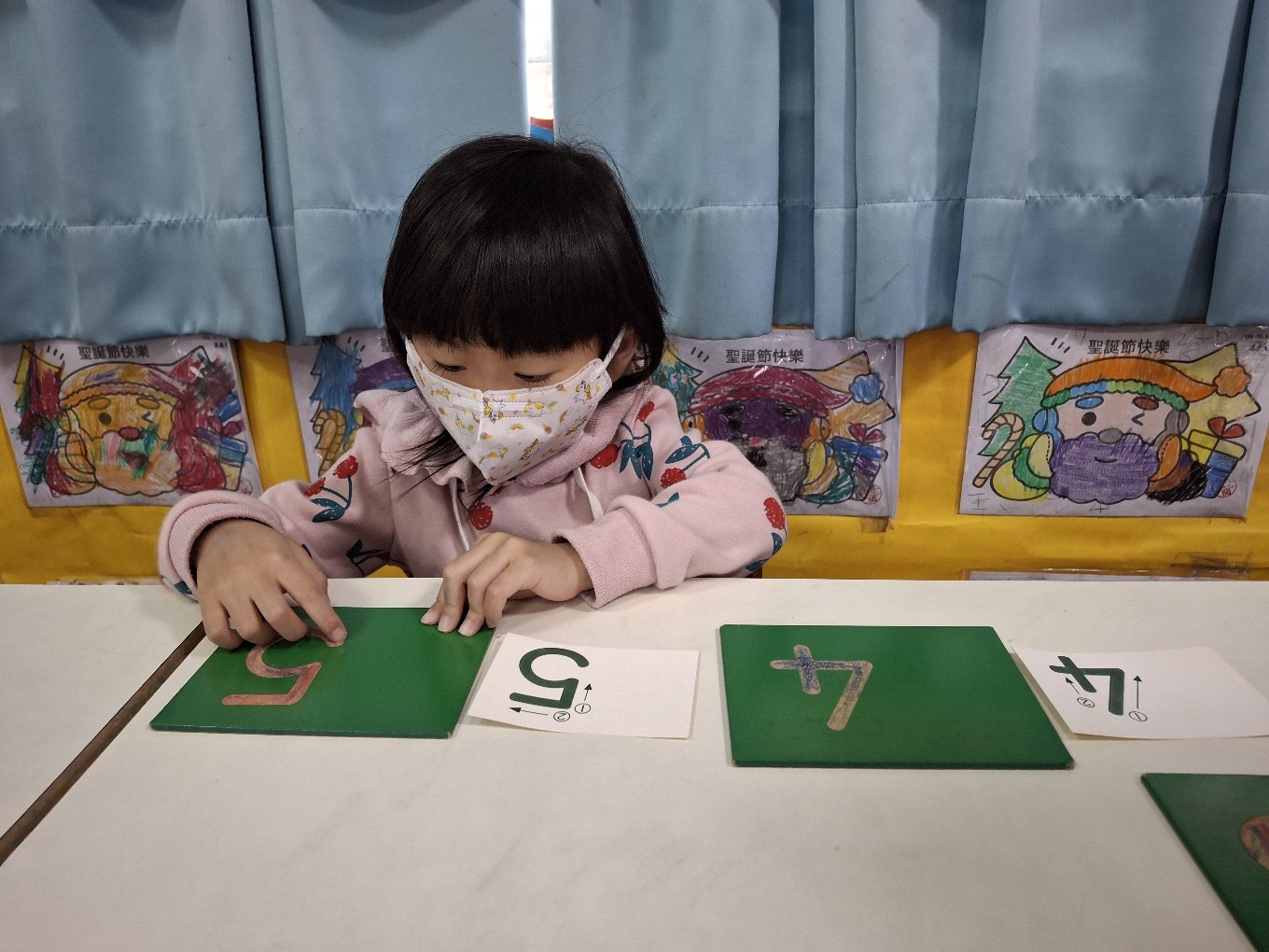 相簿名稱: 櫻花班-蒙特梭利教育【數學教育<砂紙數字卡1-5>】