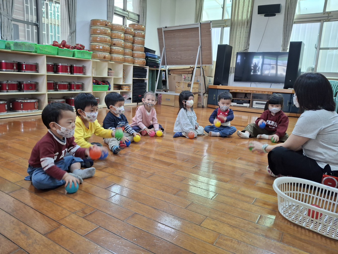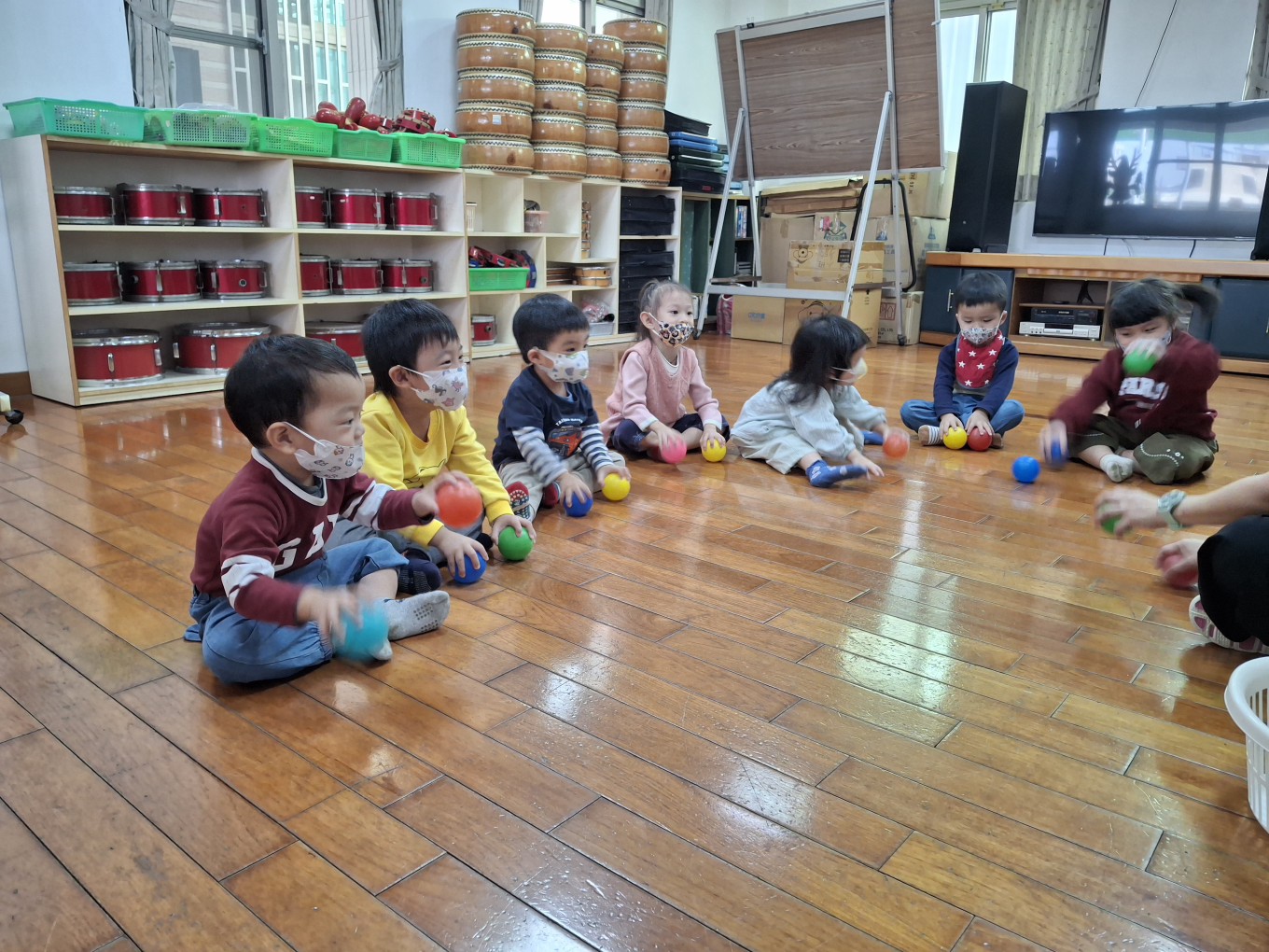 相簿名稱: 草莓班-美感【奧福音樂-音樂節奏快、慢速度的變化(彩色球模擬)】