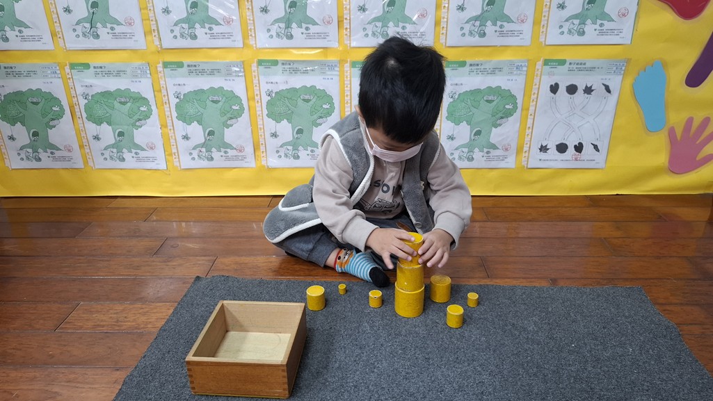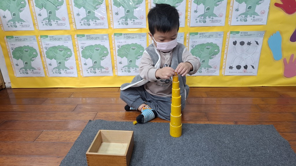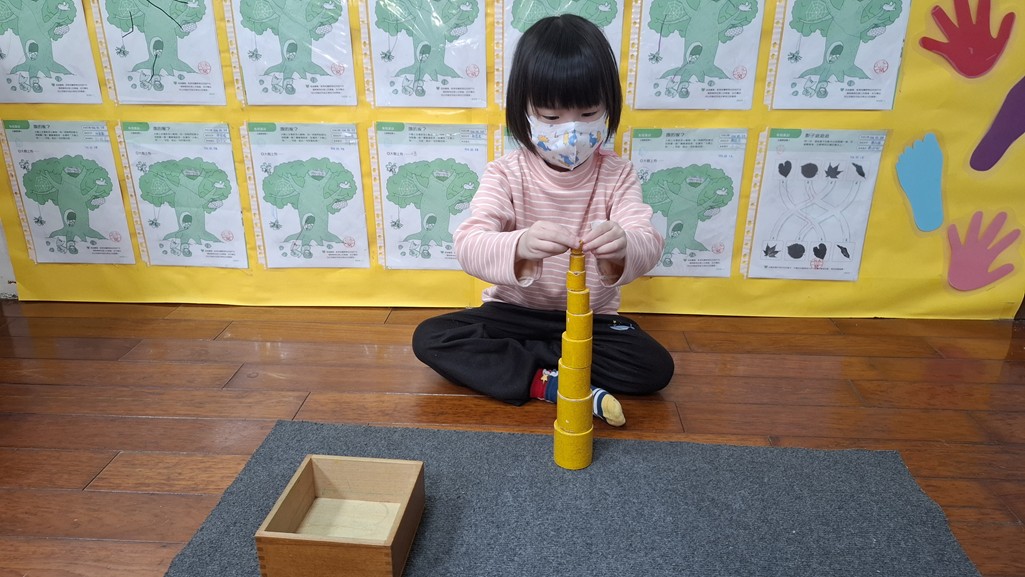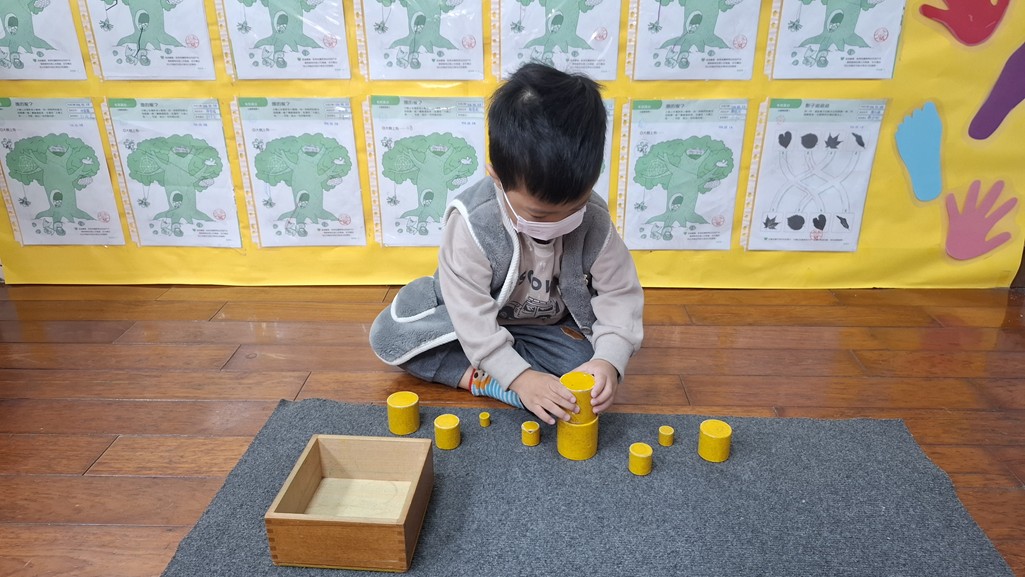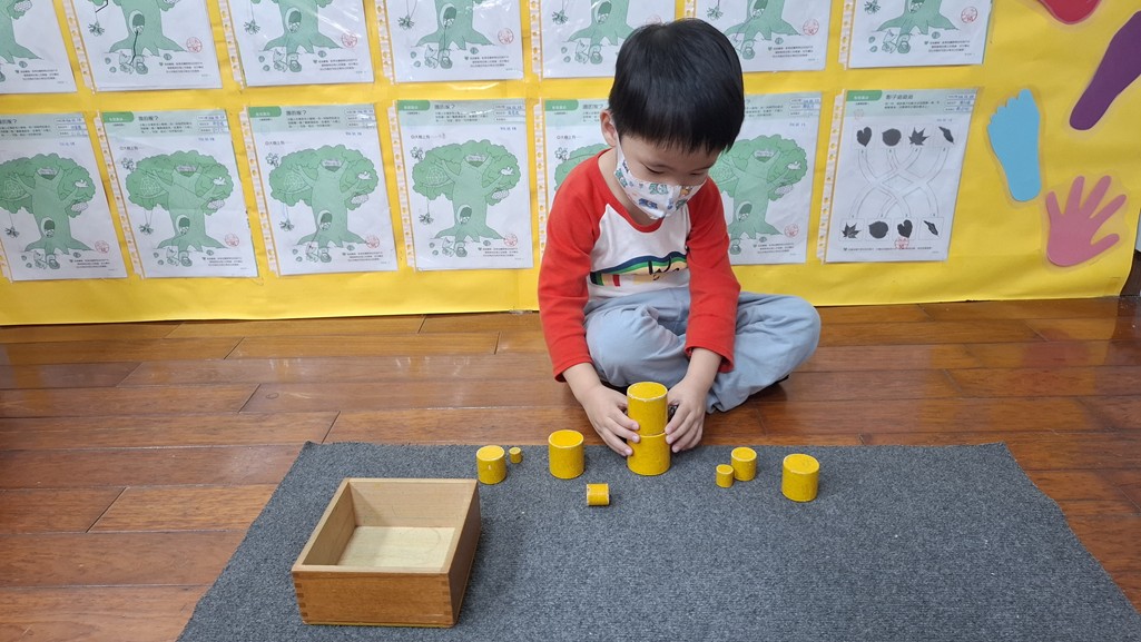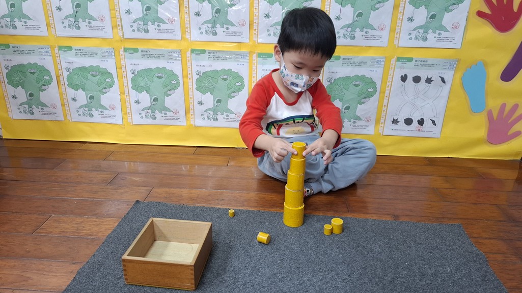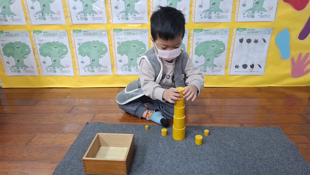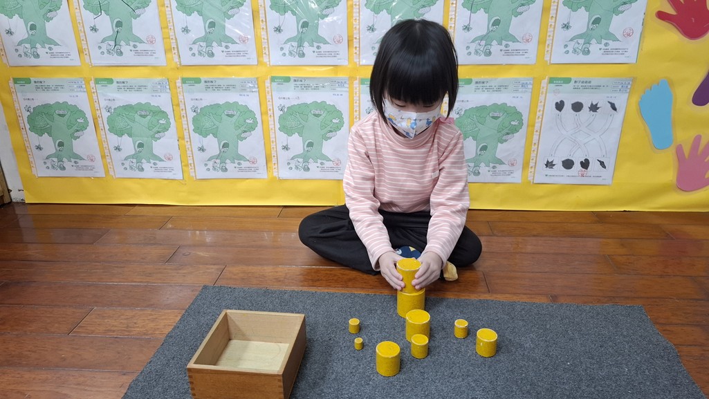 相簿名稱: 葡萄班-蒙特梭利教學(感官教育-彩色圓柱黃造塔)