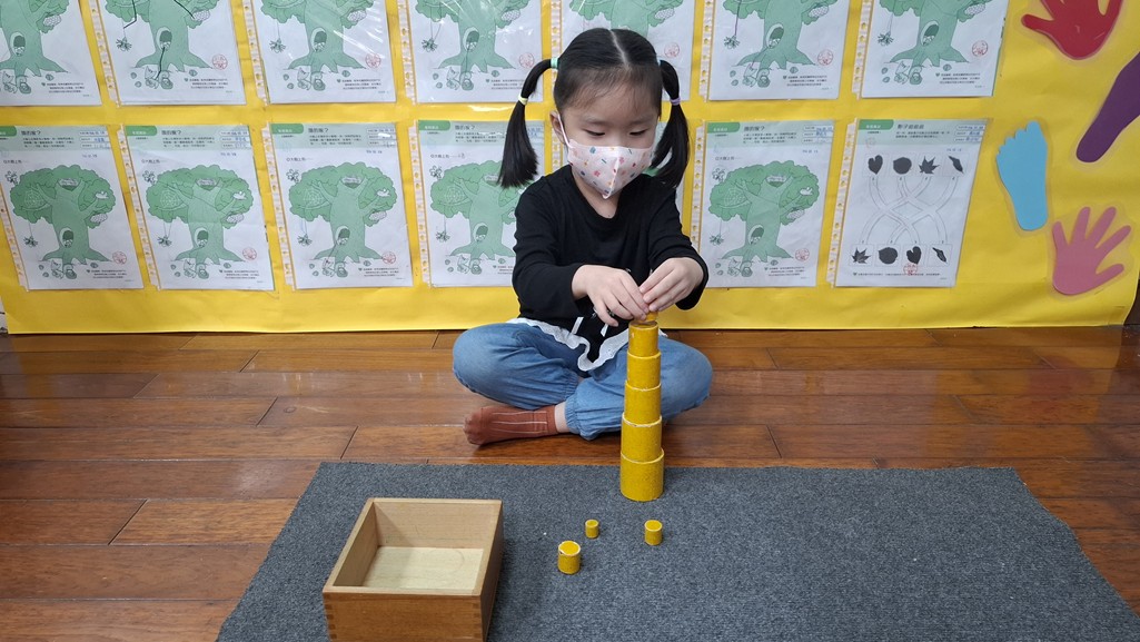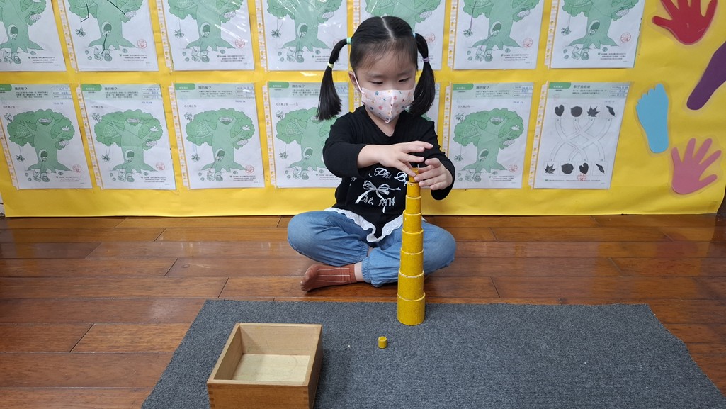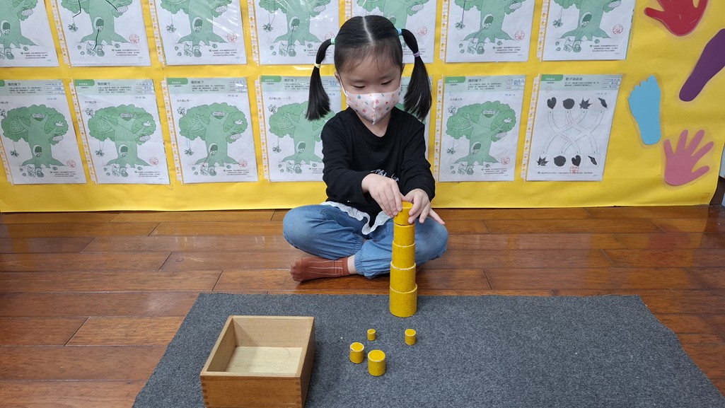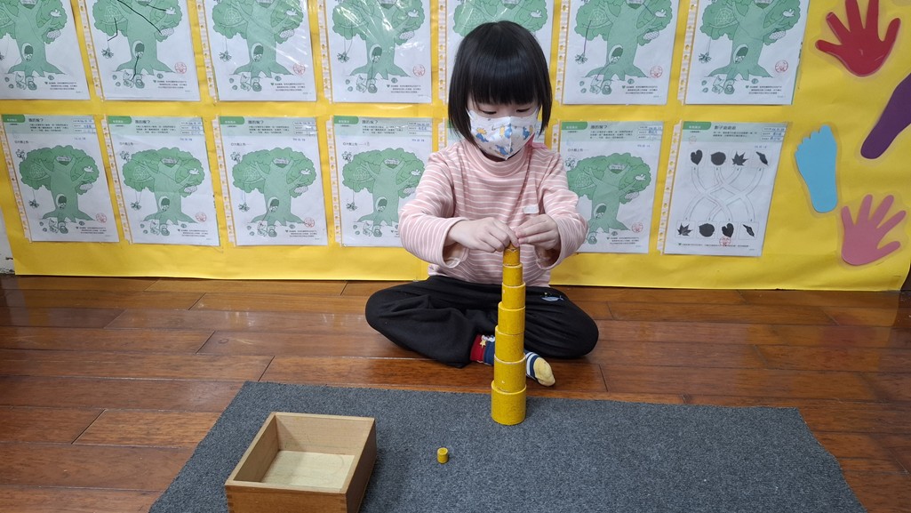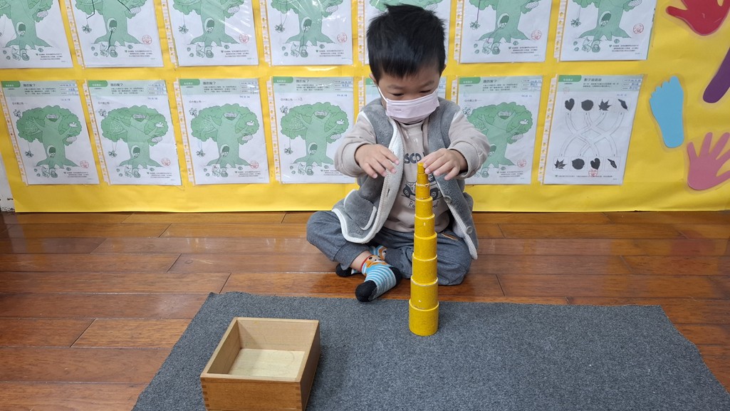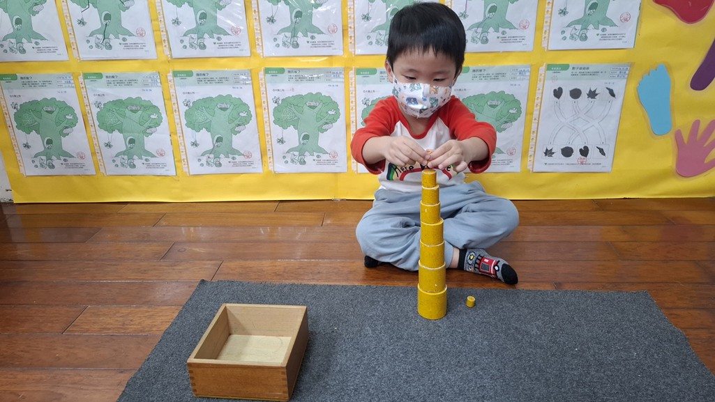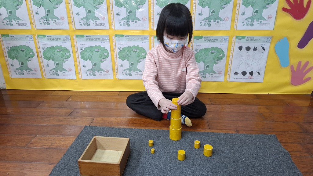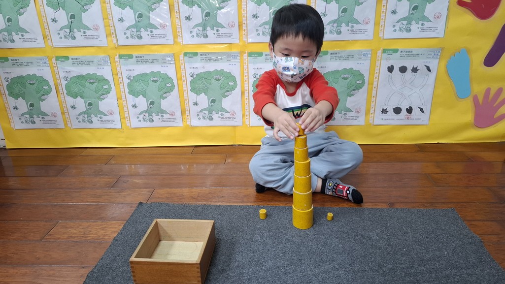 相簿名稱: 葡萄班-蒙特梭利教學(感官教育-彩色圓柱黃造塔)
