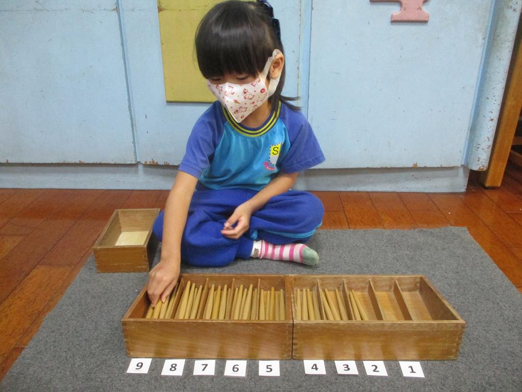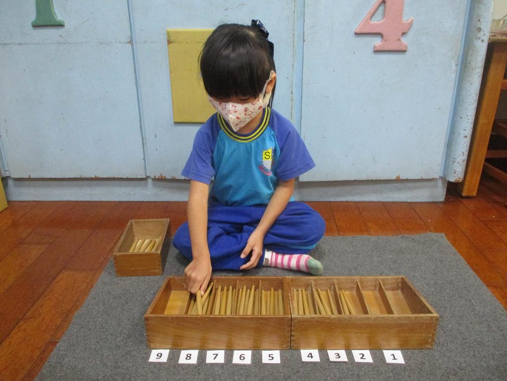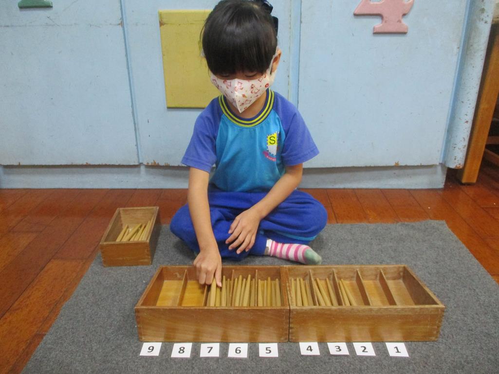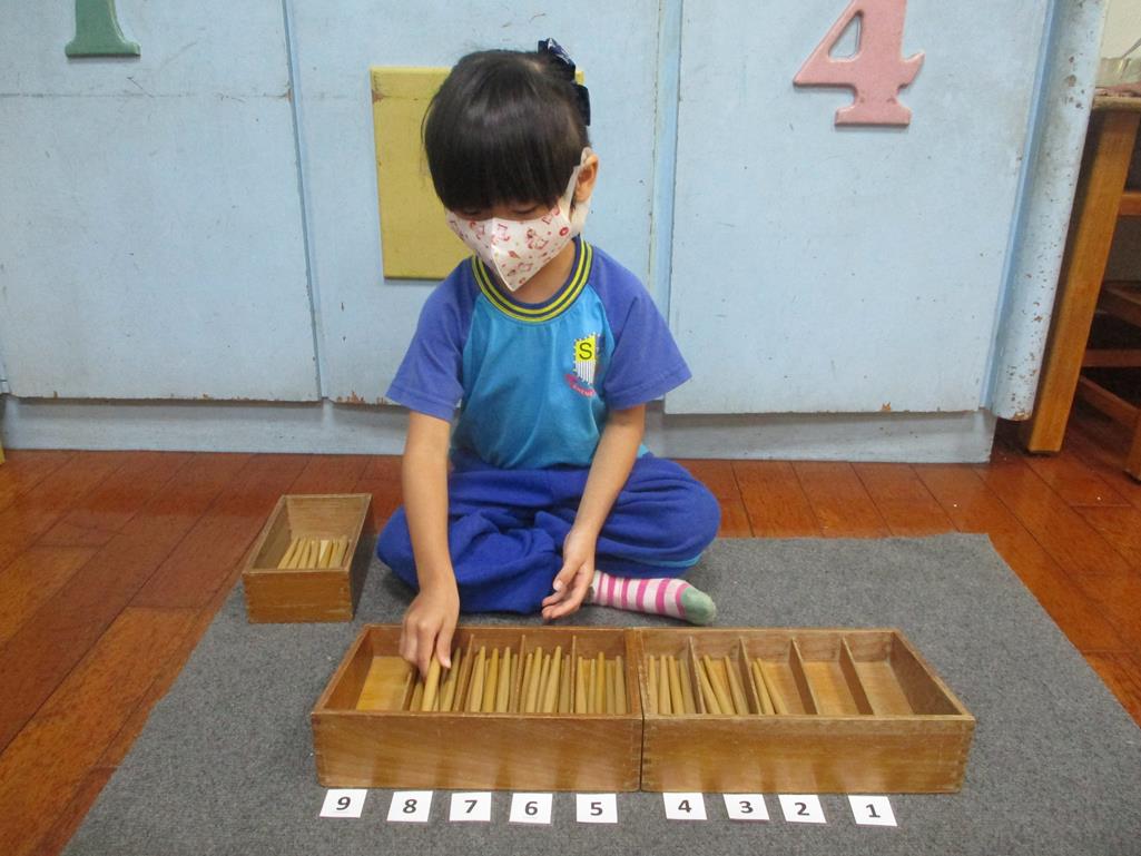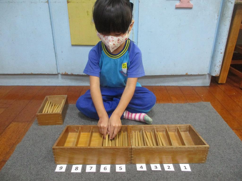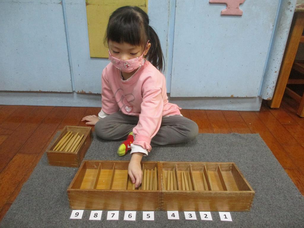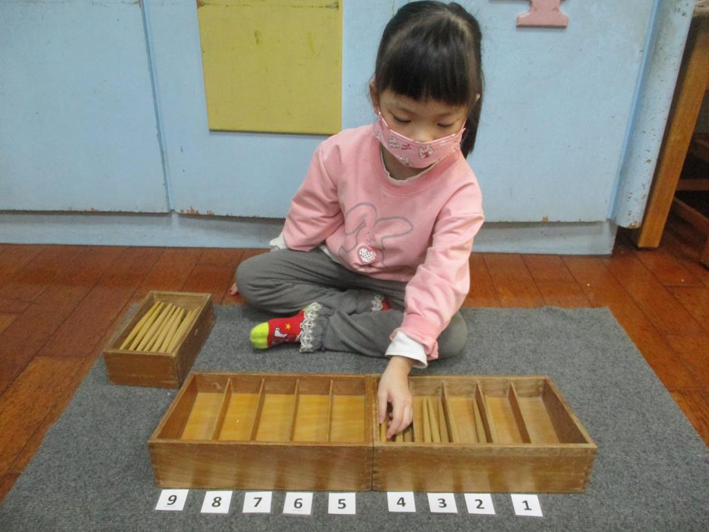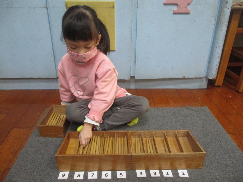 相簿名稱: 茉莉班-蒙特梭利教學(數學教育-紡錘棒箱 0~9)