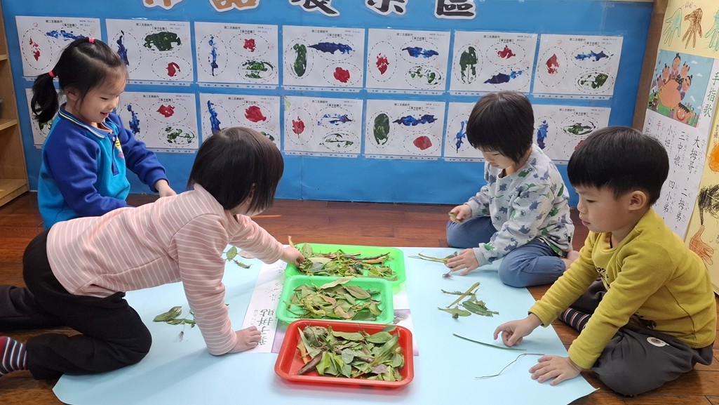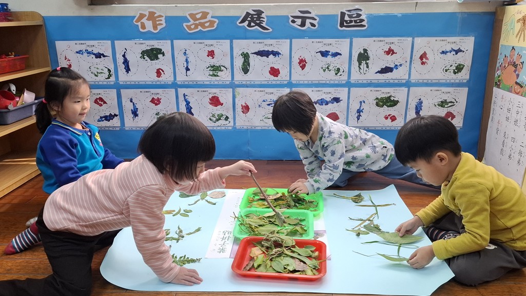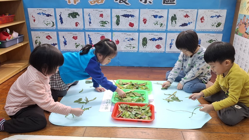 相簿名稱: 葡萄班-主題活動(主題兒歌海報創作-葉子拼貼)