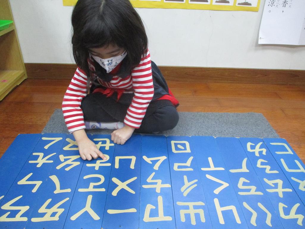 相簿名稱: 茉莉班-蒙特梭利教學(感官教育-注音符號描線板(長條))