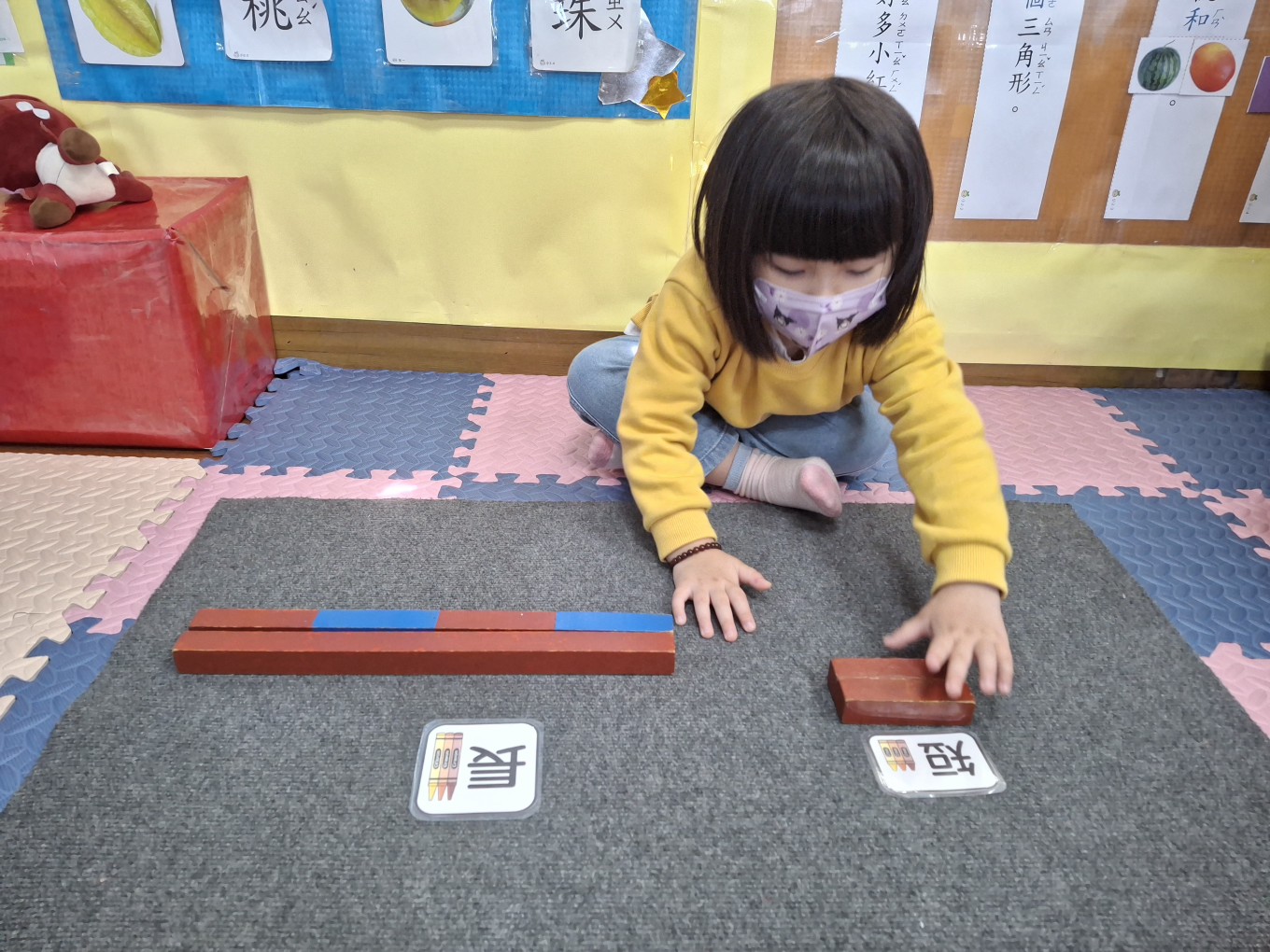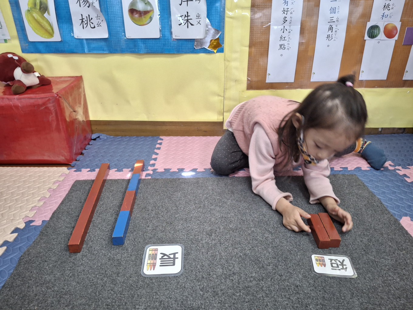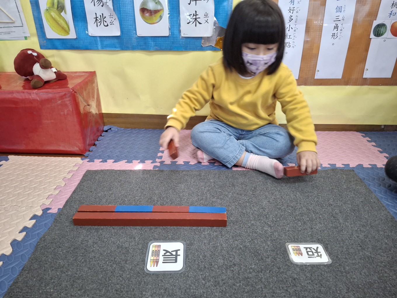 相簿名稱: 草莓班-蒙特梭利教學【數學教育-數棒+長棒(長短)配對】