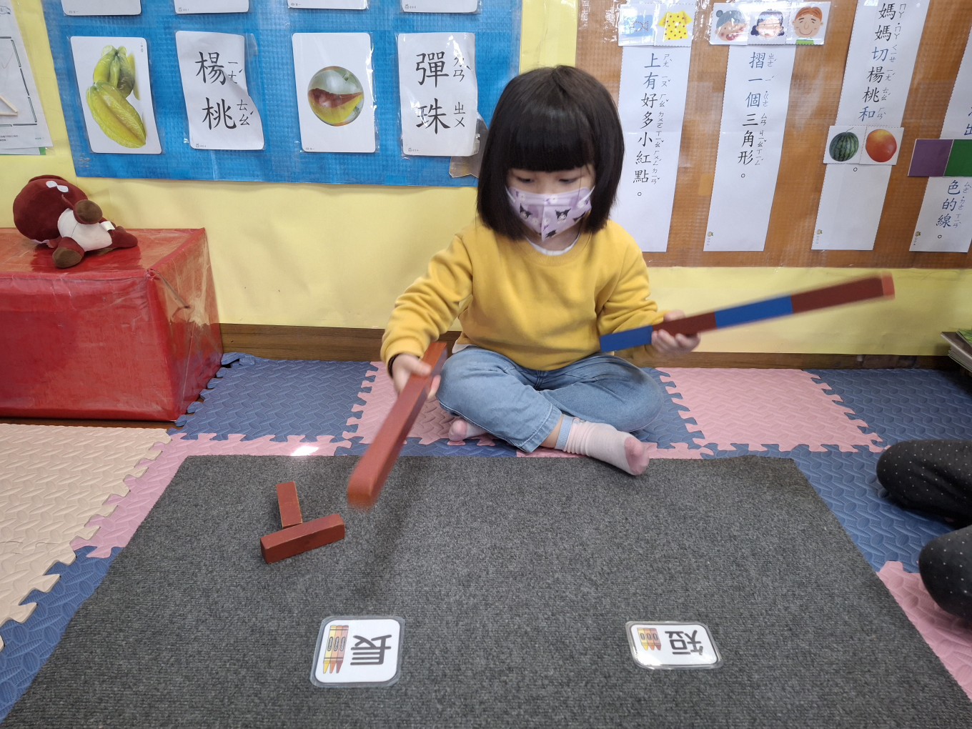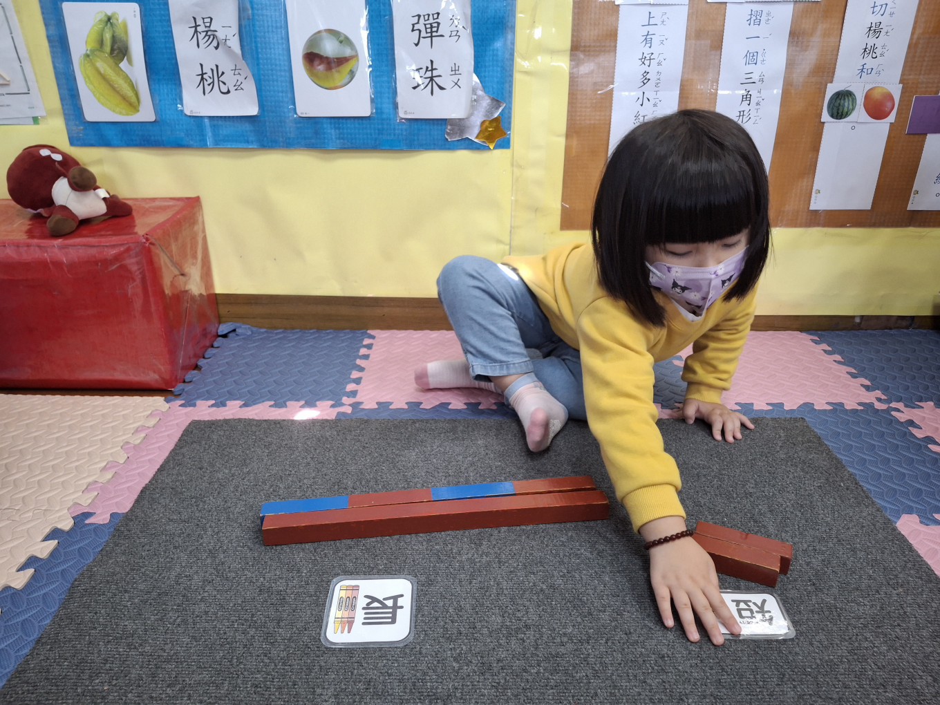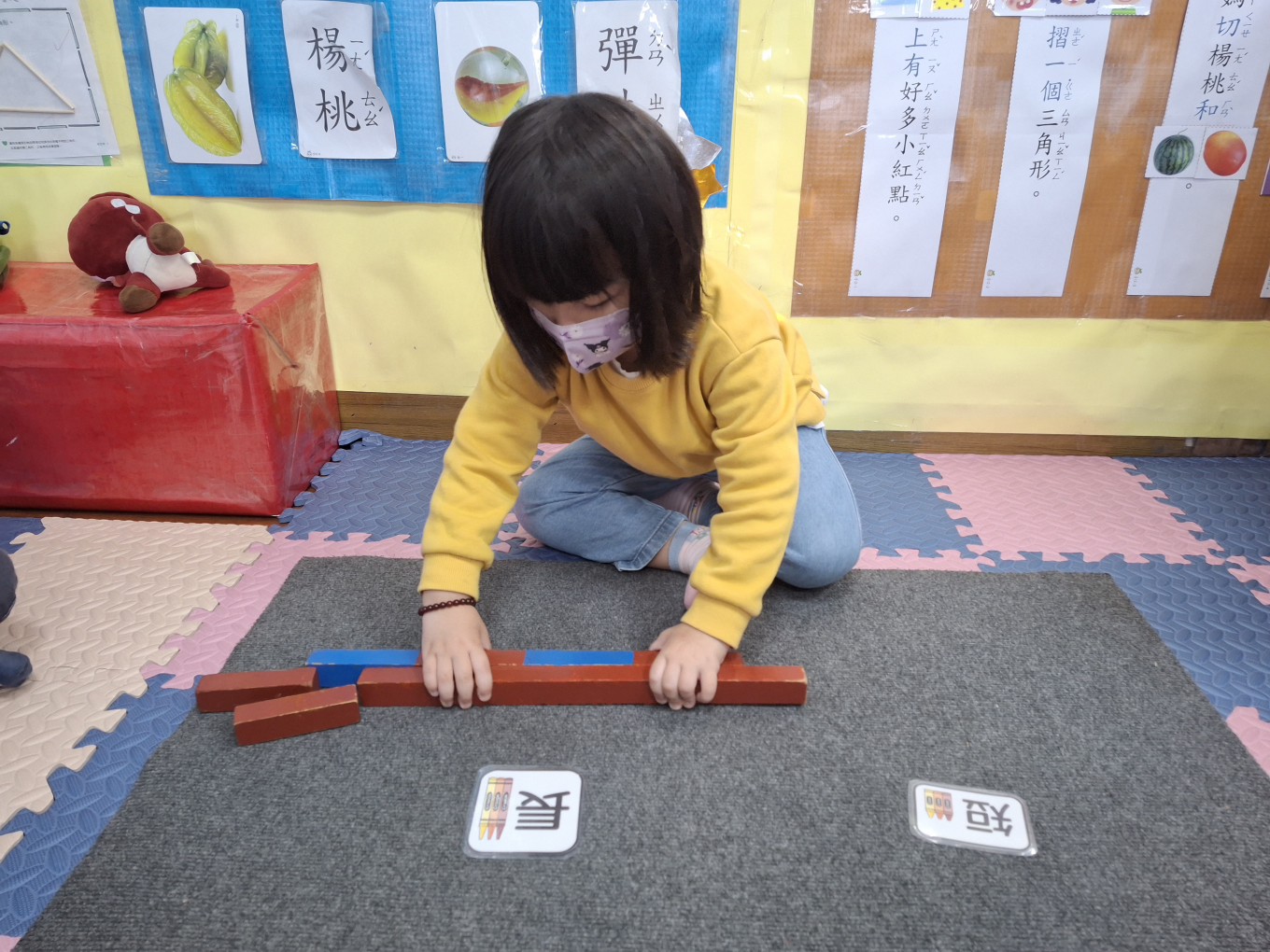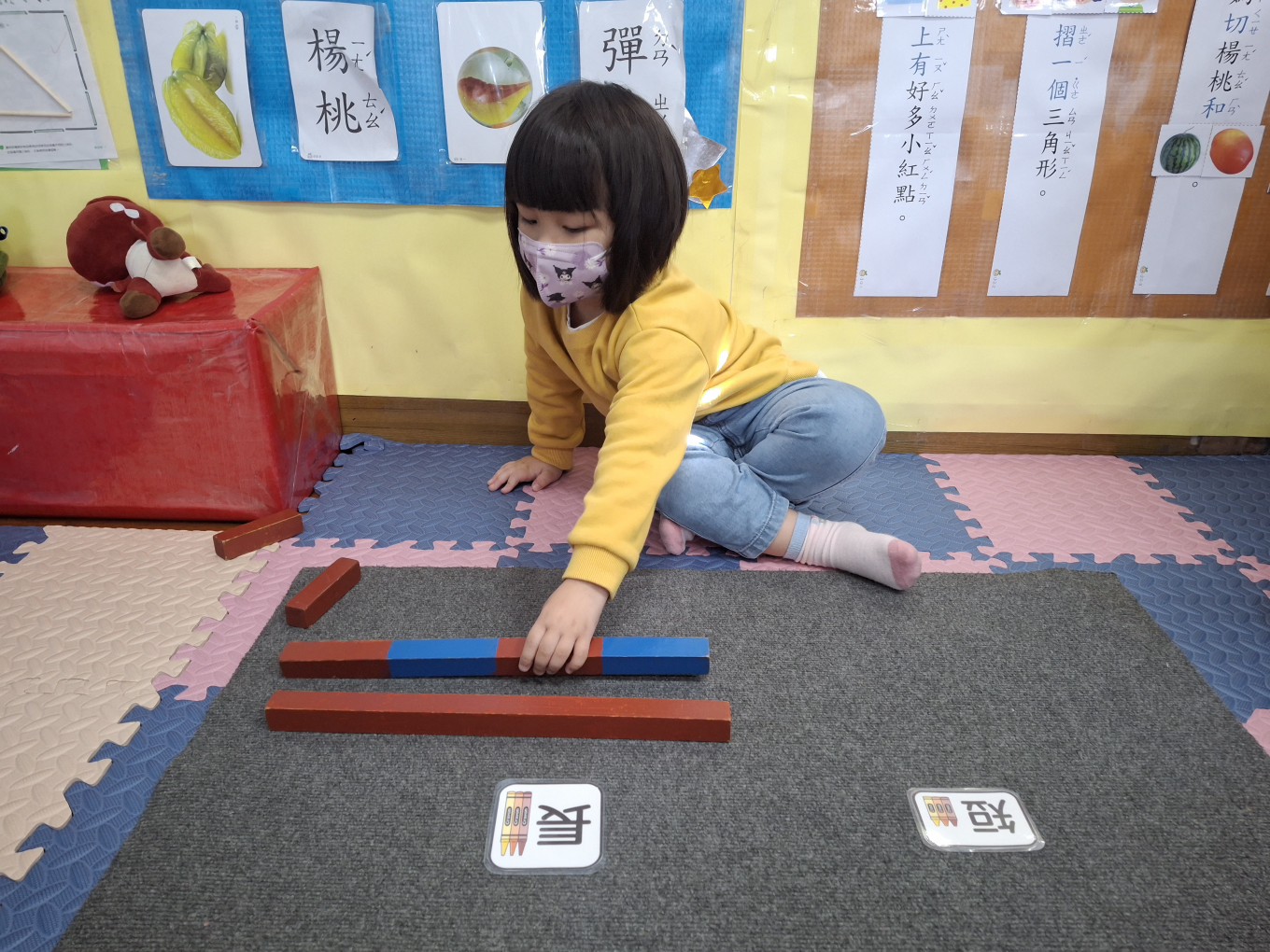 相簿名稱: 草莓班-蒙特梭利教學【數學教育-數棒+長棒(長短)配對】