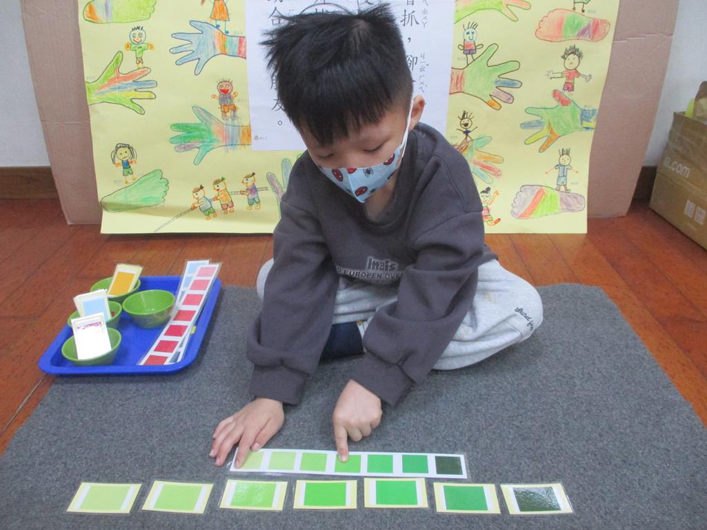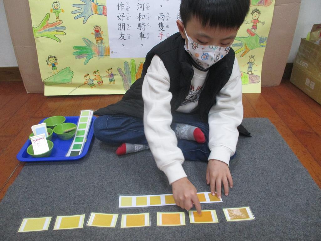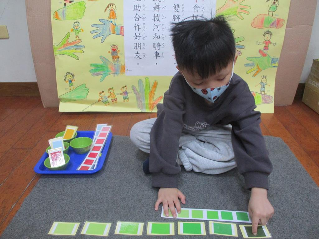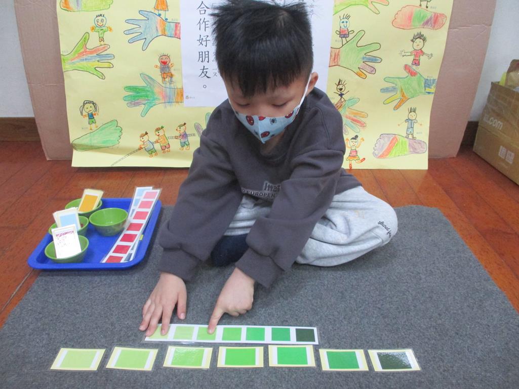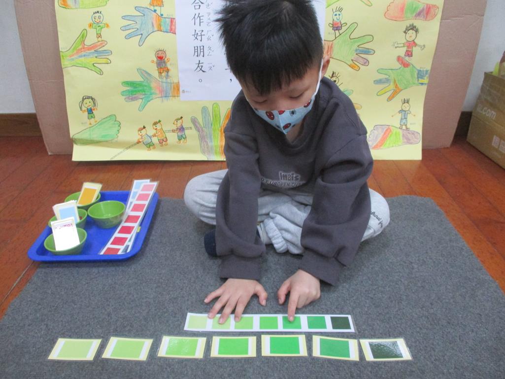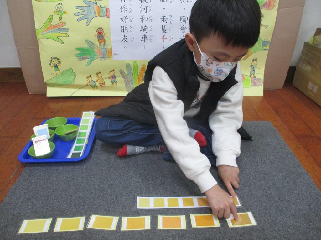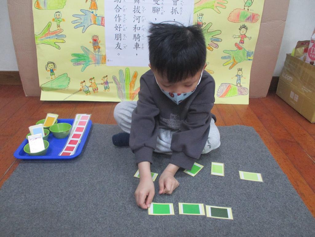 相簿名稱: 茉莉班-蒙特梭利教學(感官教育-色板依序 由深至淺)
