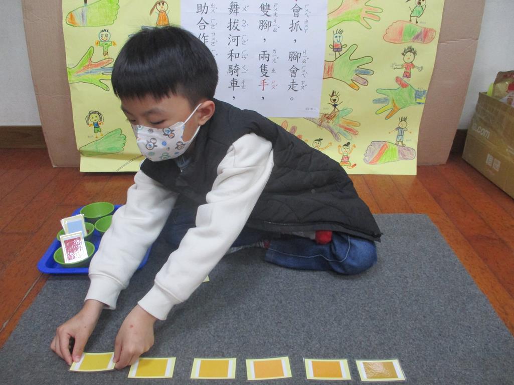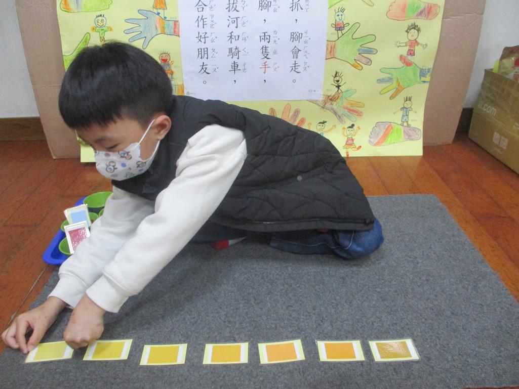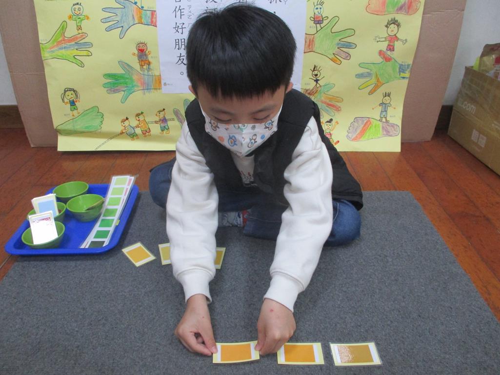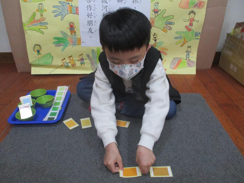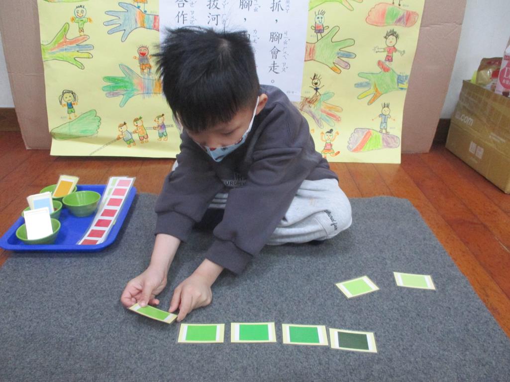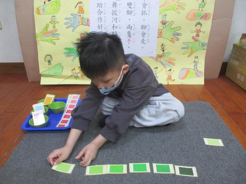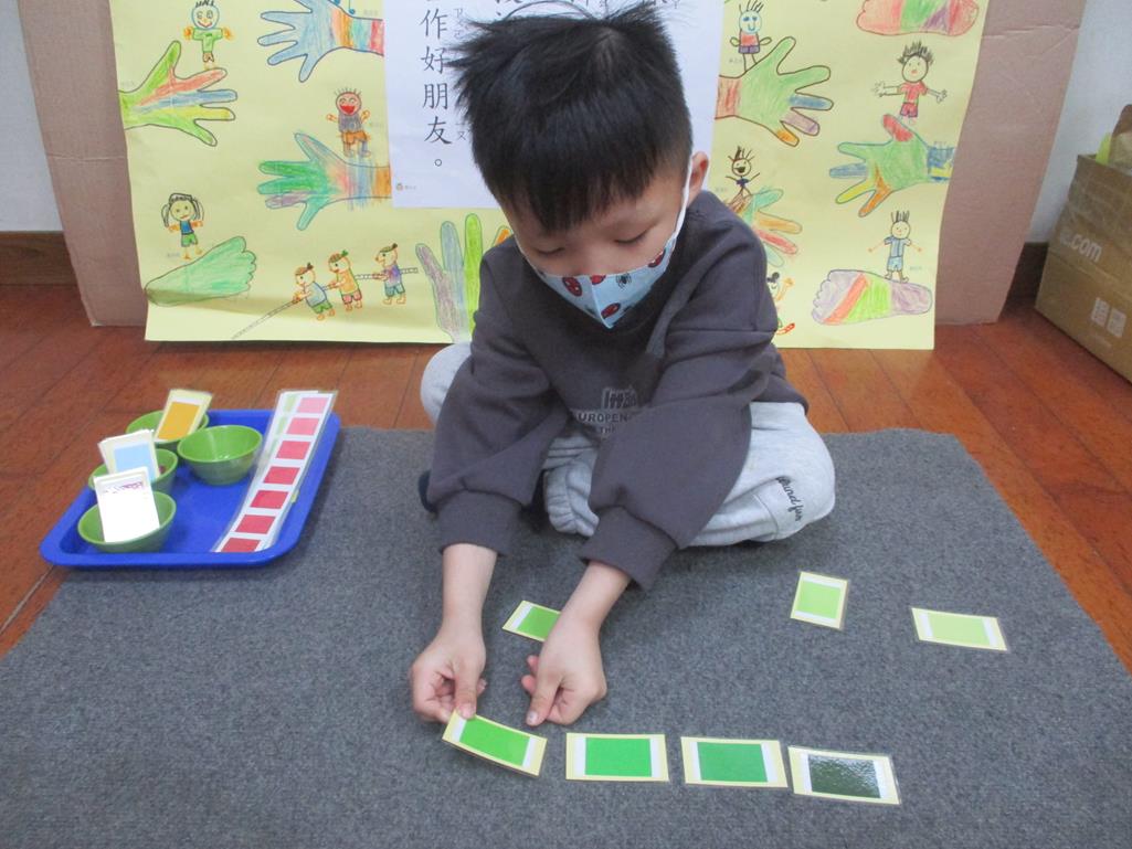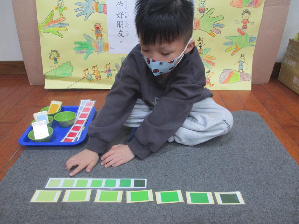 相簿名稱: 茉莉班-蒙特梭利教學(感官教育-色板依序 由深至淺)