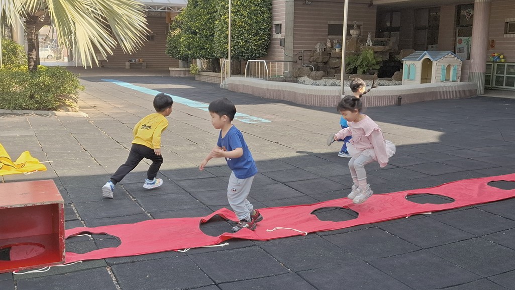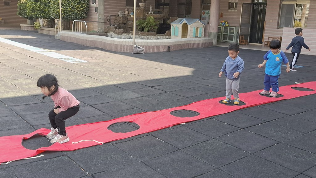 相簿名稱: 葡萄班-30分鐘大肌肉發展(洞洞山探險-蜈蚣布)
