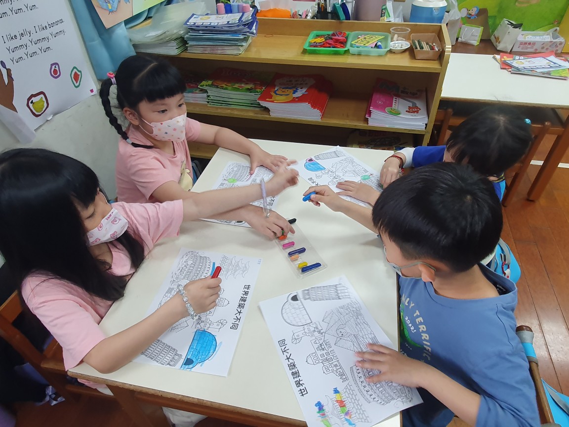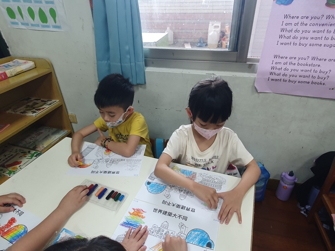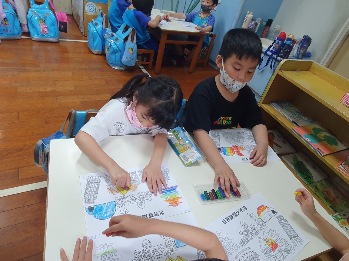 相簿名稱: 向日葵班-美感創作(著色畫-世界建築大不同)