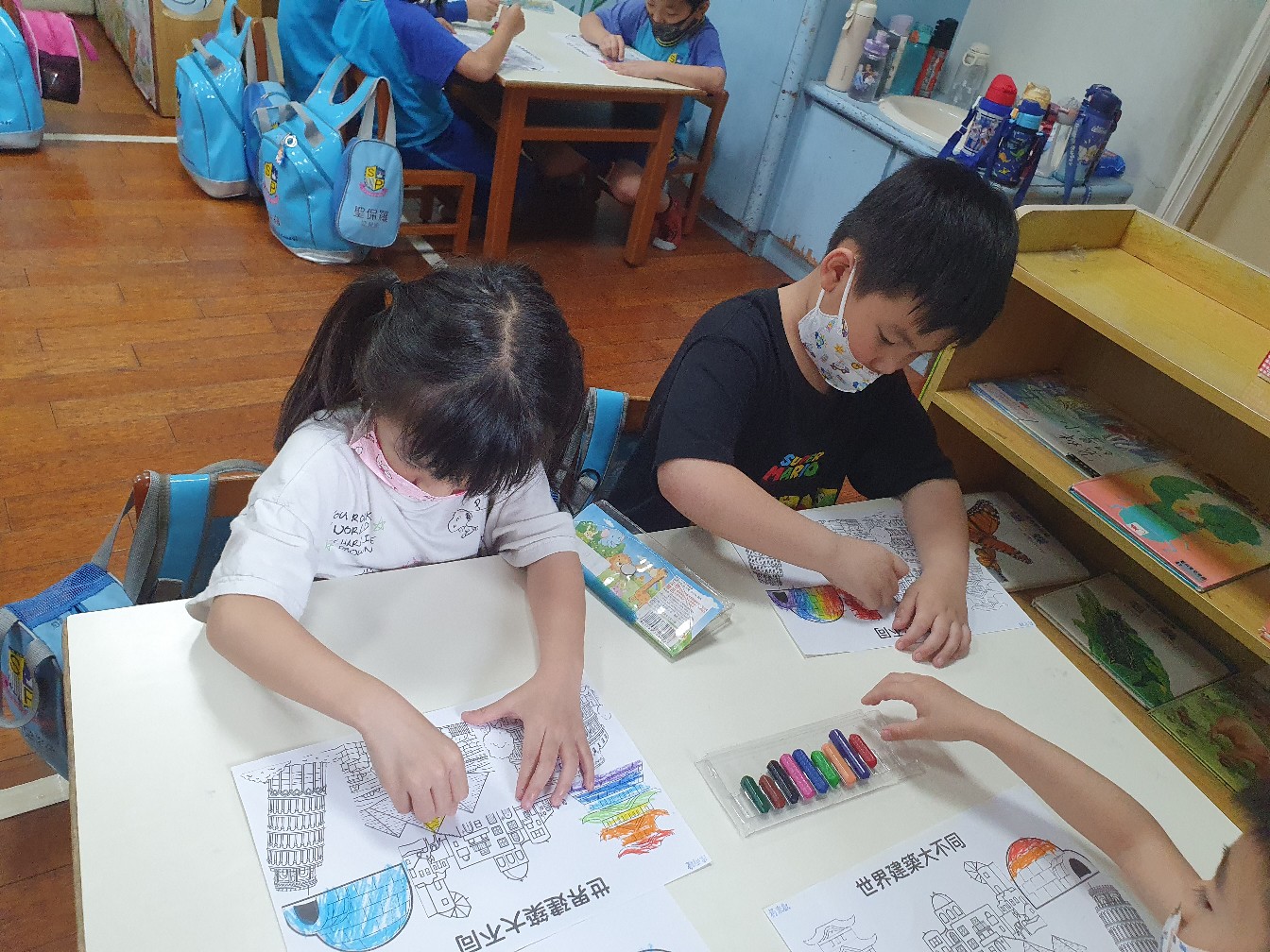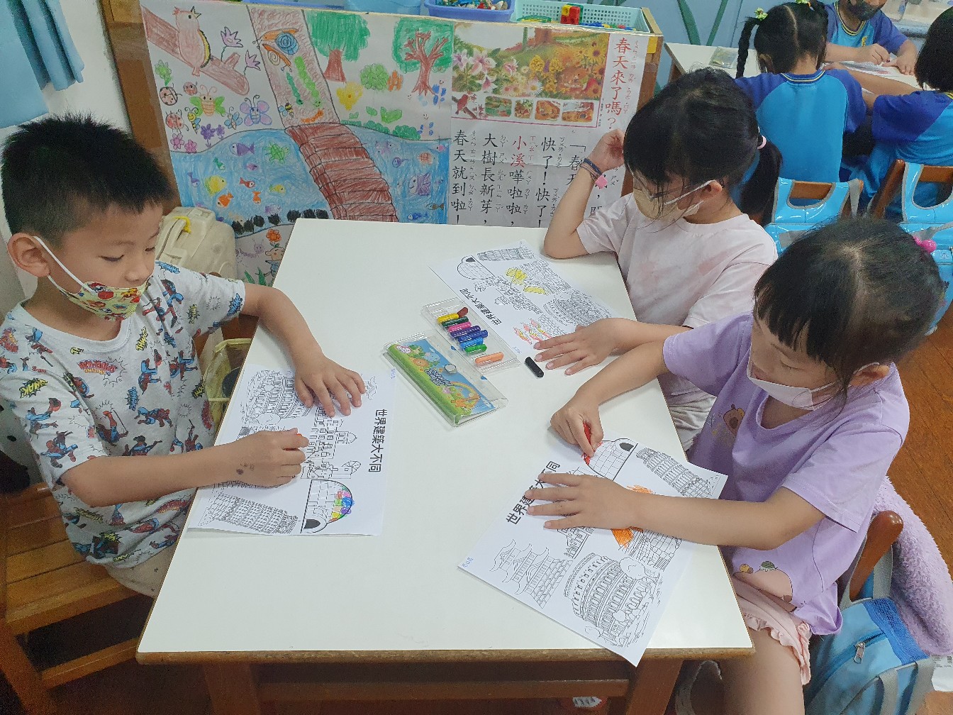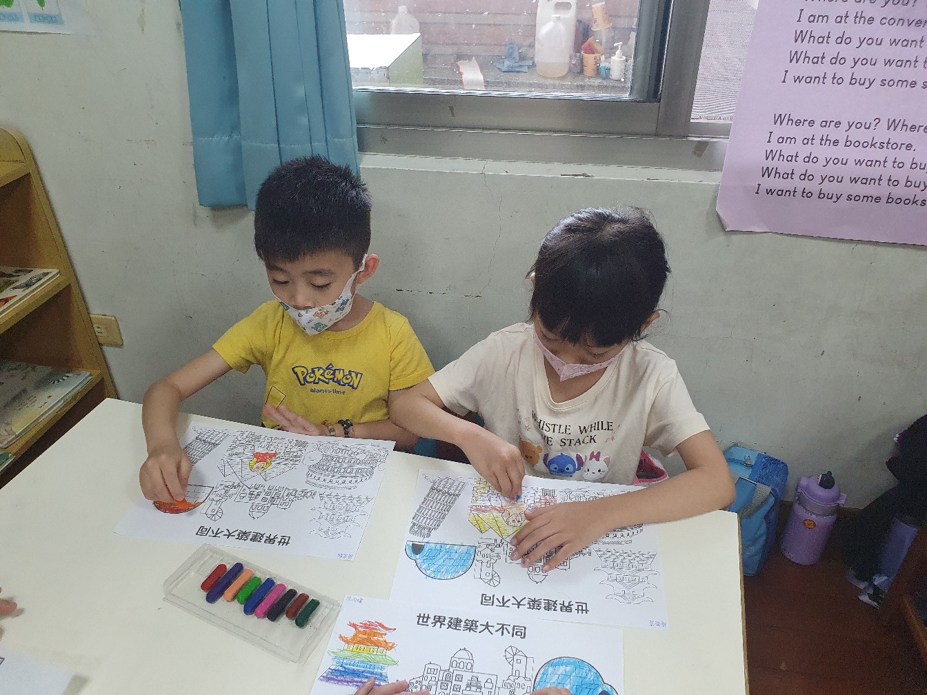 相簿名稱: 向日葵班-美感創作(著色畫-世界建築大不同)