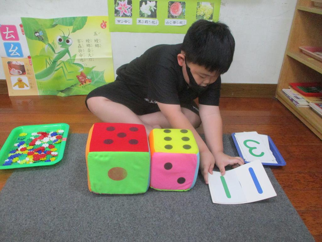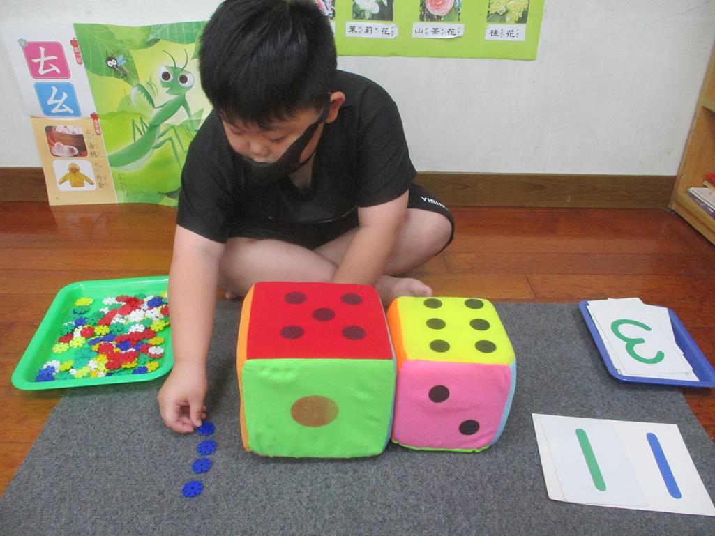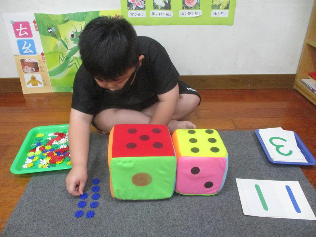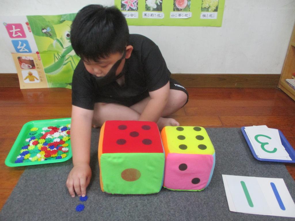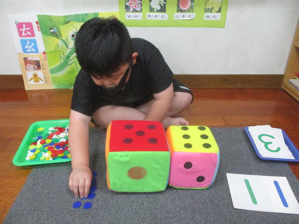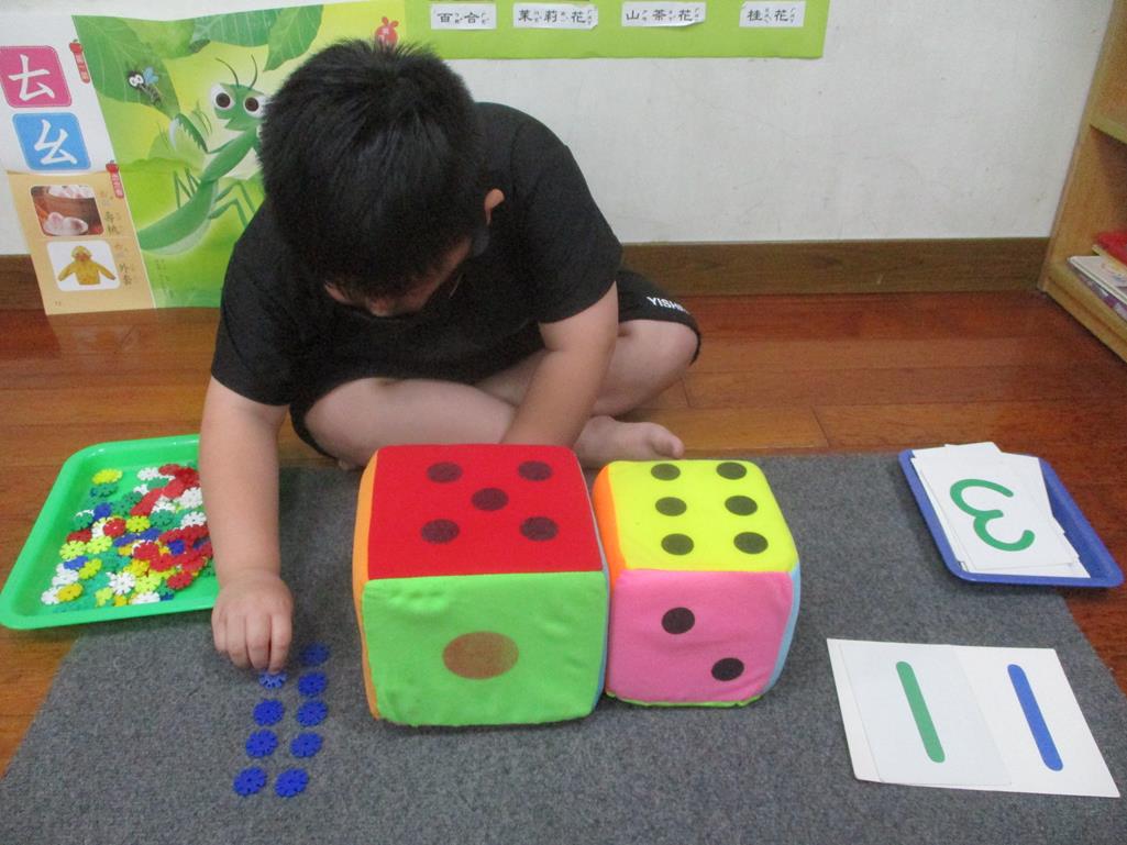相簿名稱: 茉莉班-蒙特梭利教學(數學教育-骰子與籌碼配對數字卡)