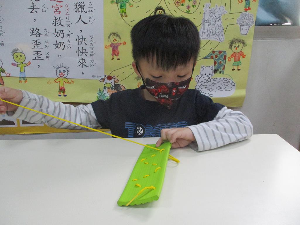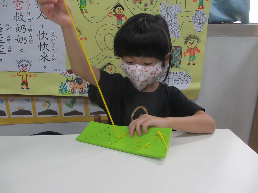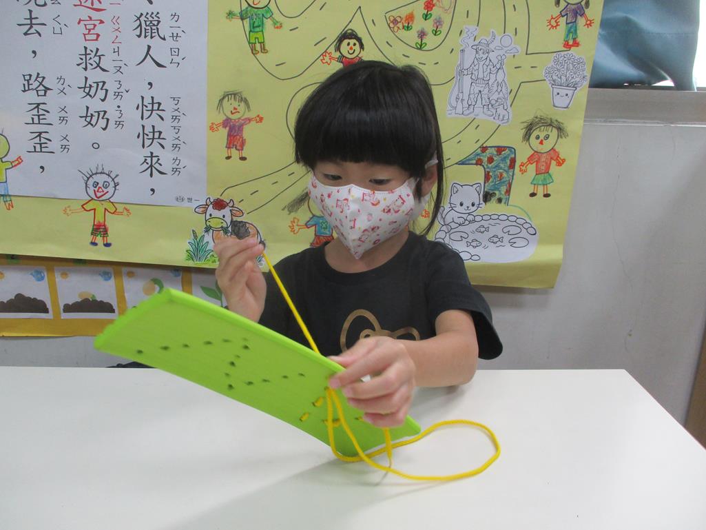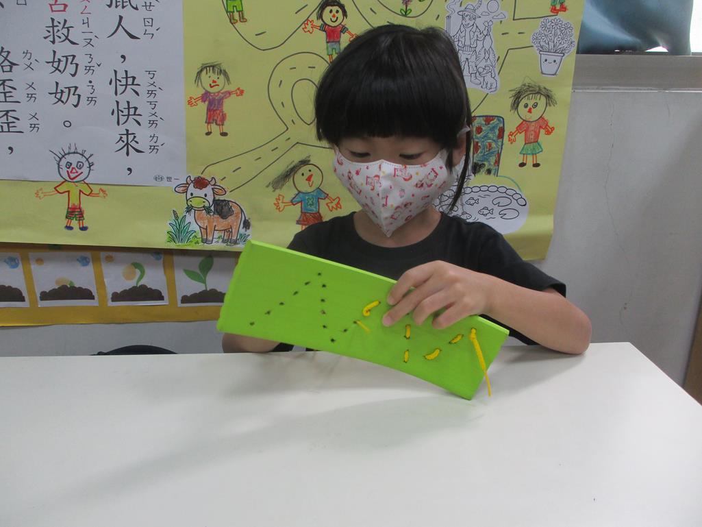 相簿名稱: 茉莉班-主題活動配合蒙特梭利教學(日常生活教育-形狀穿線板)