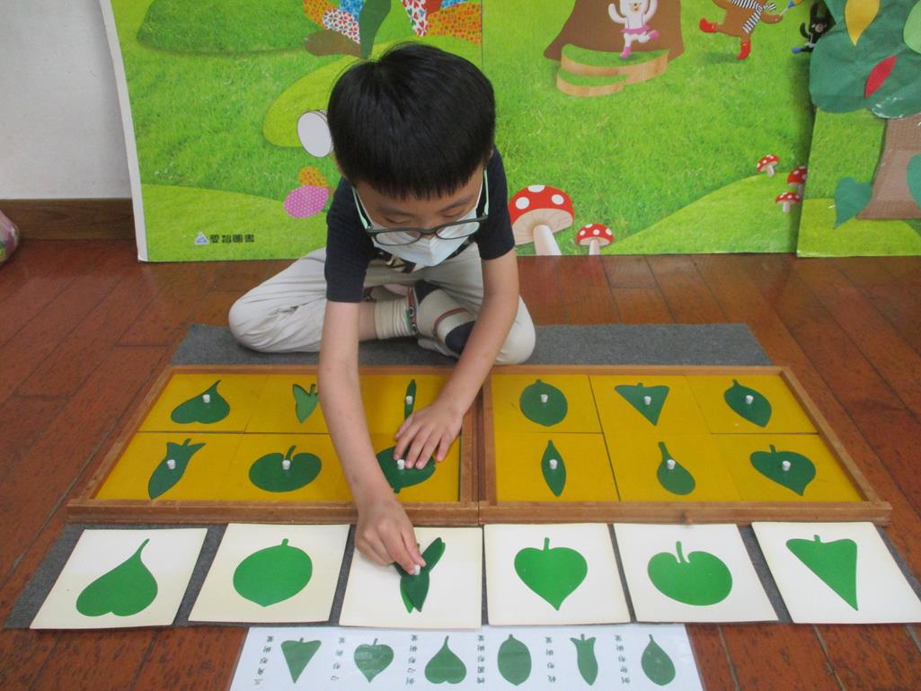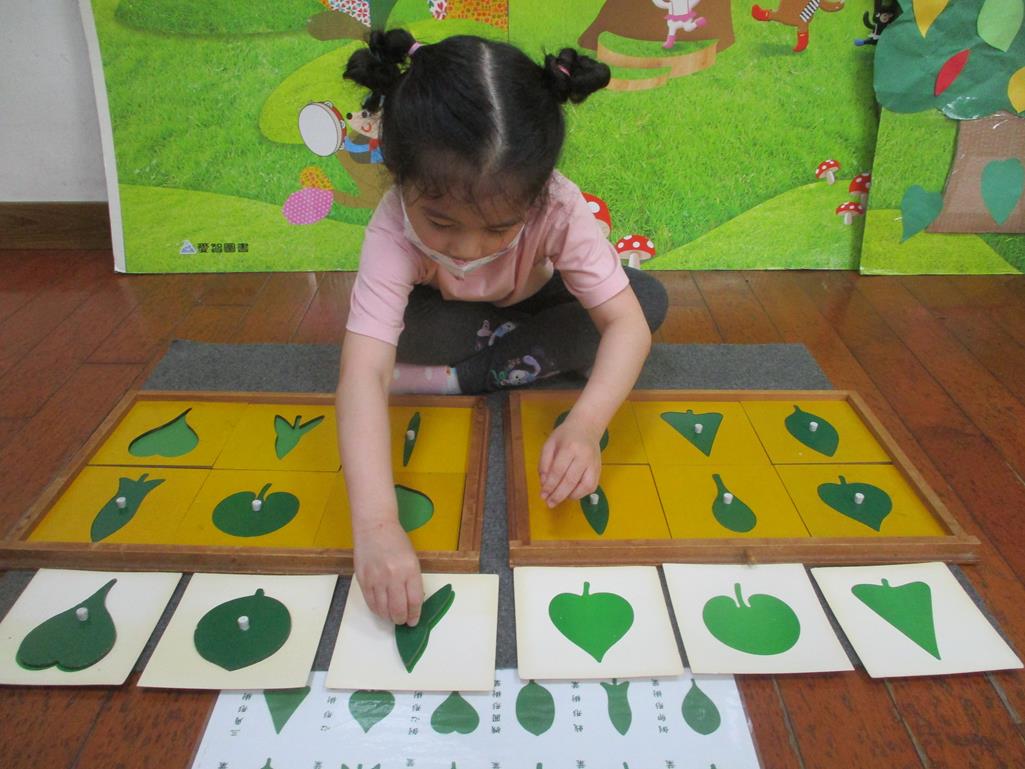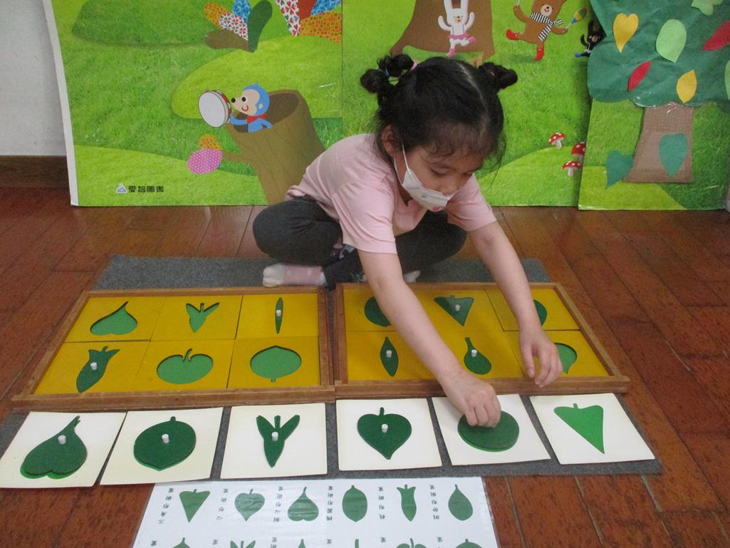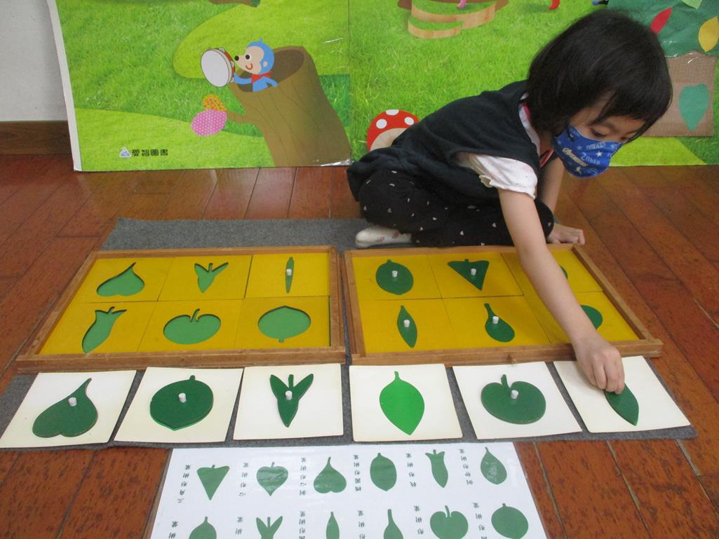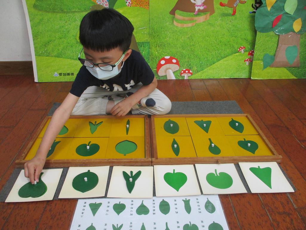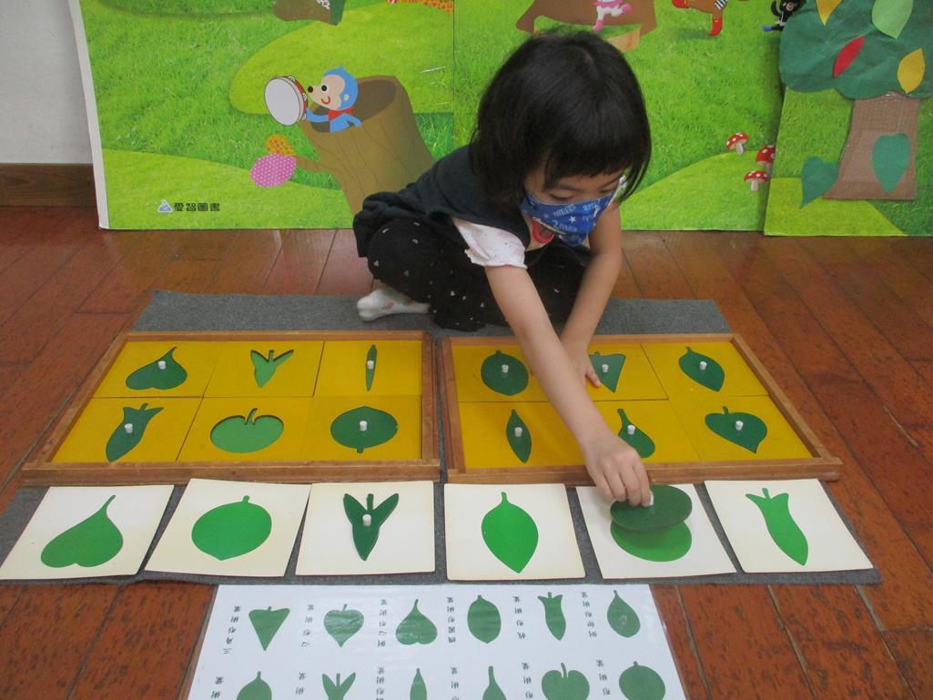相簿名稱: 茉莉班-蒙特梭利教學(感官教育-樹葉拼圖櫥 (名稱介紹+圖卡) )