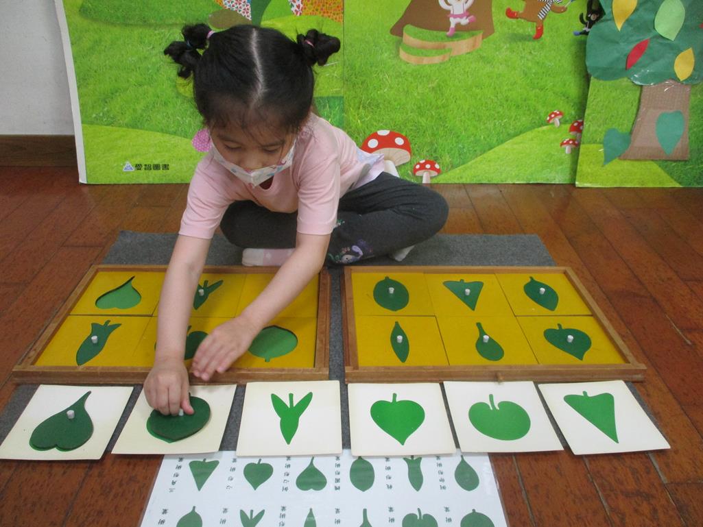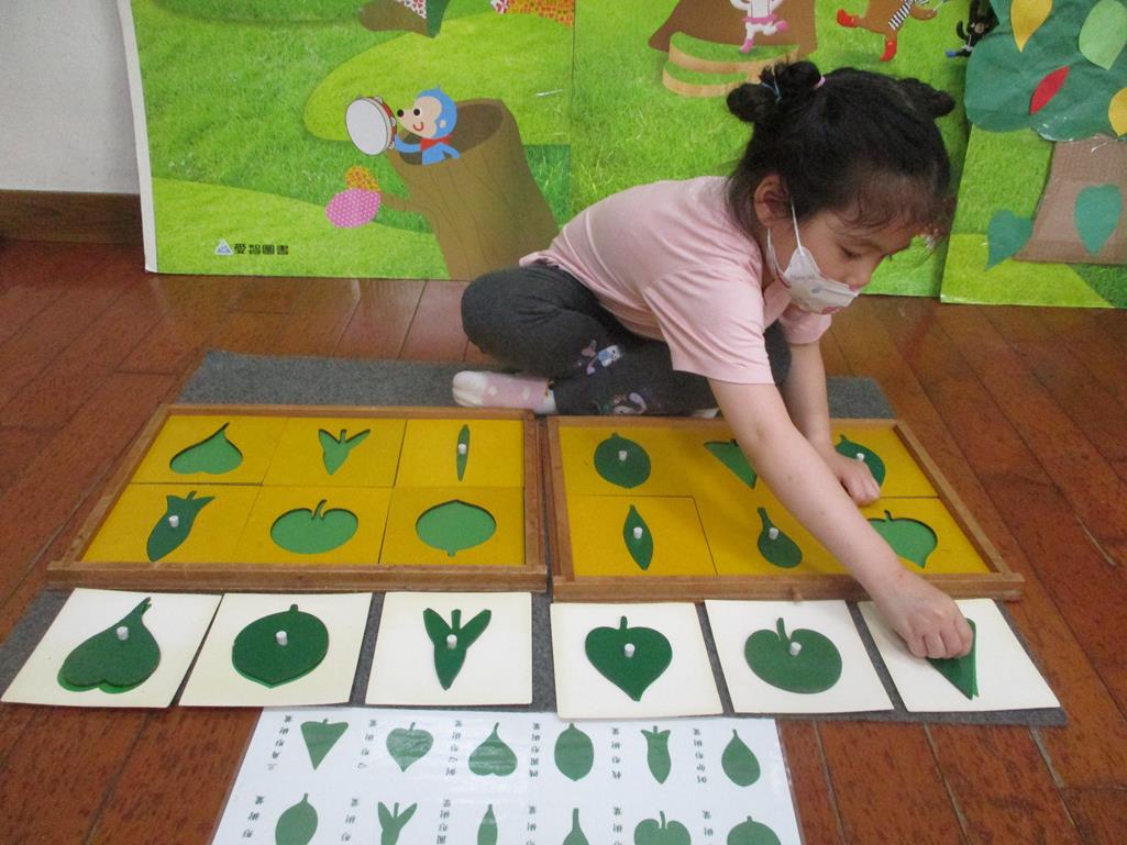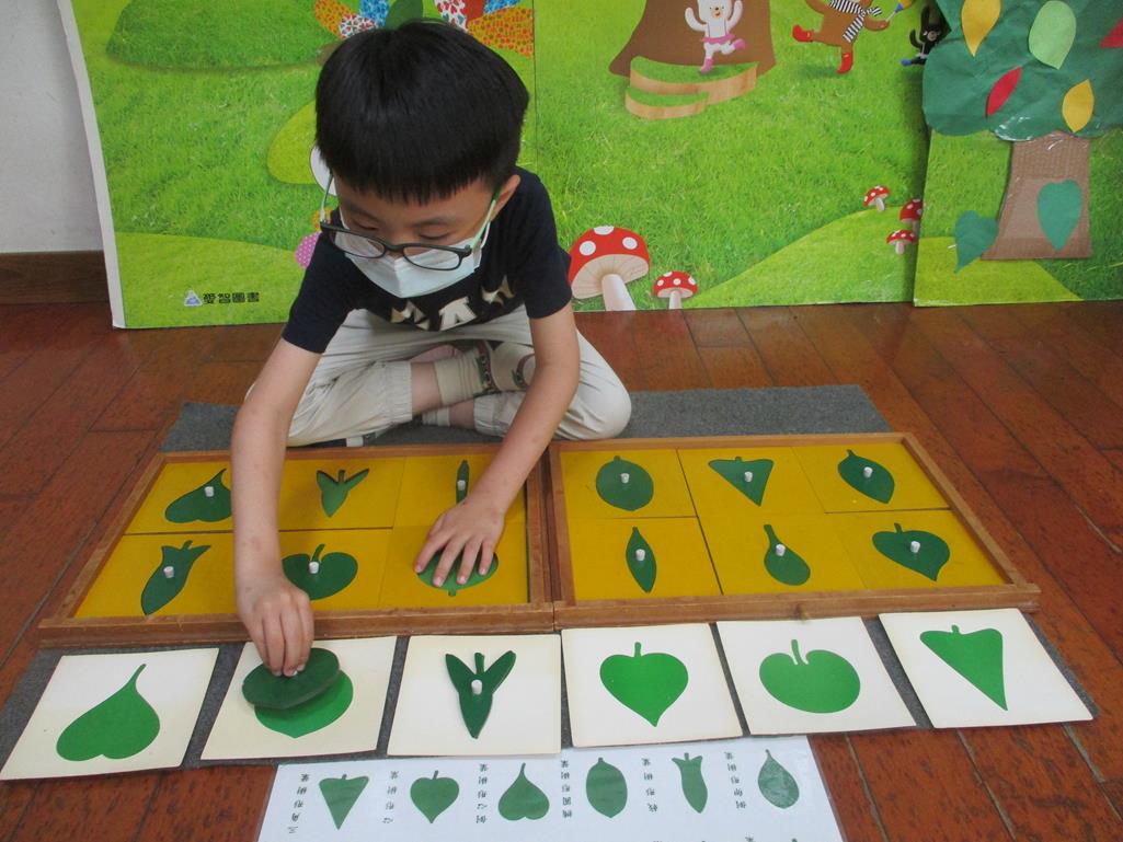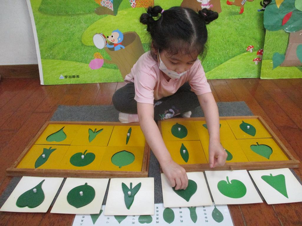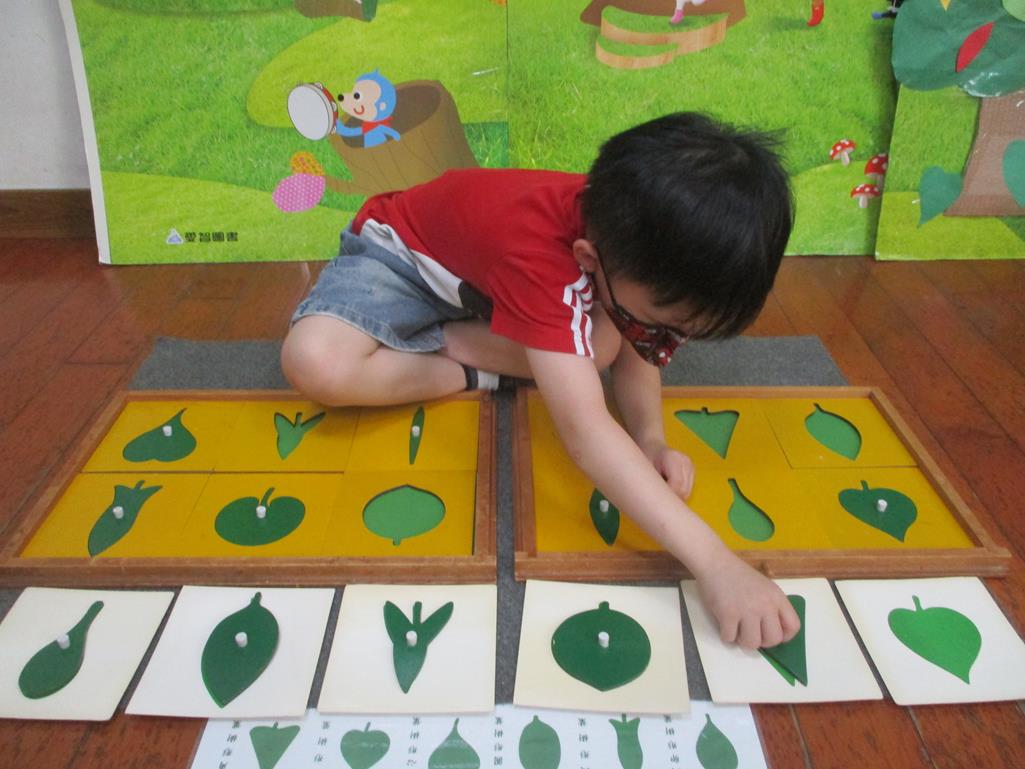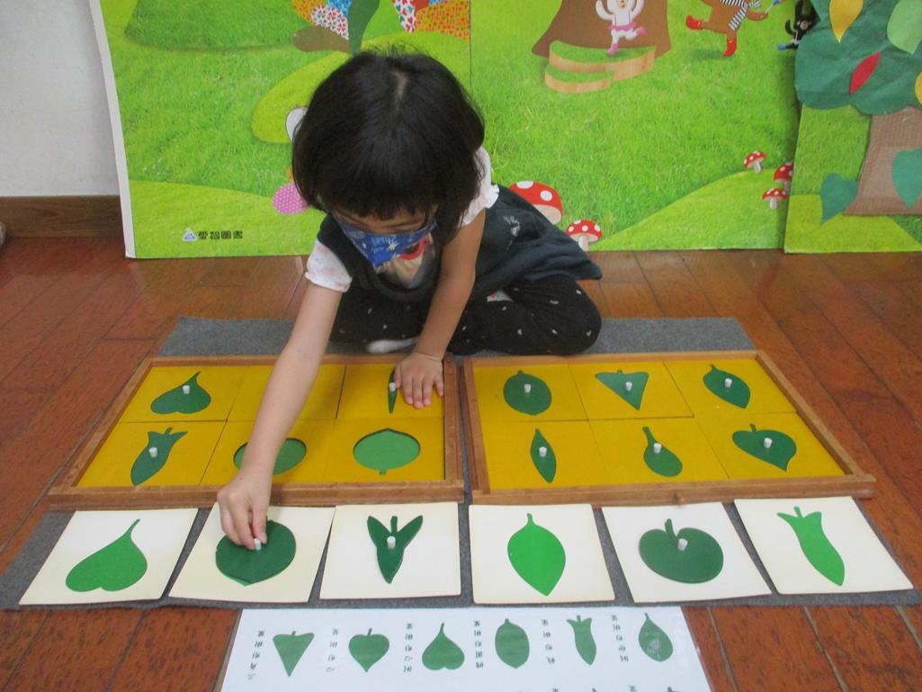 相簿名稱: 茉莉班-蒙特梭利教學(感官教育-樹葉拼圖櫥 (名稱介紹+圖卡) )