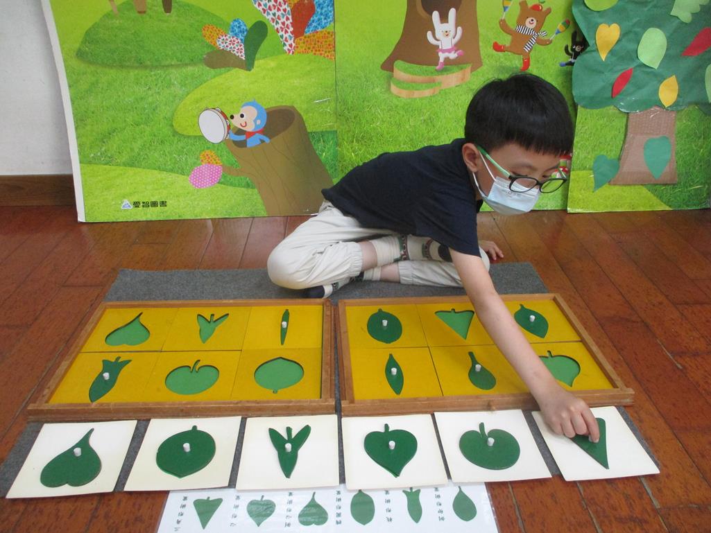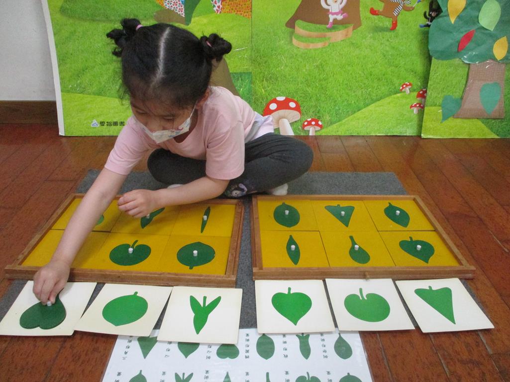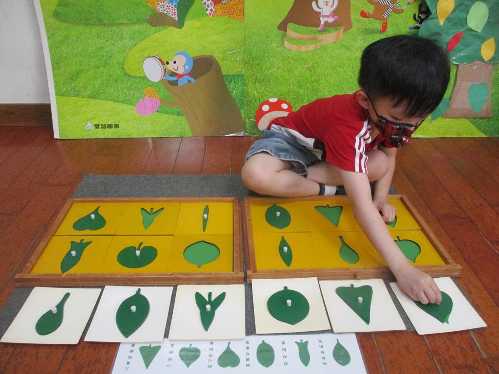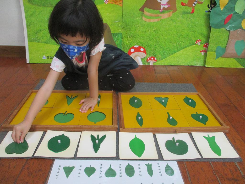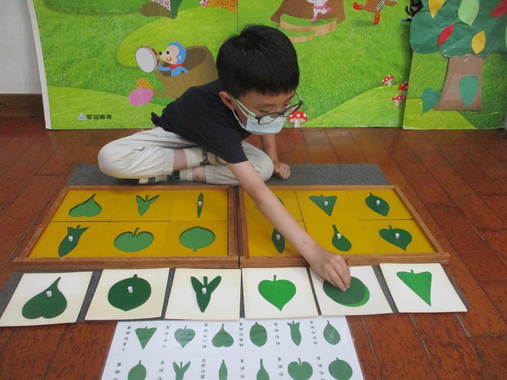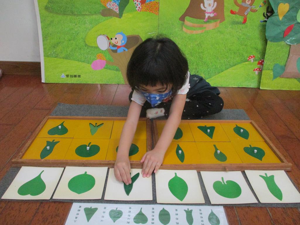 相簿名稱: 茉莉班-蒙特梭利教學(感官教育-樹葉拼圖櫥 (名稱介紹+圖卡) )