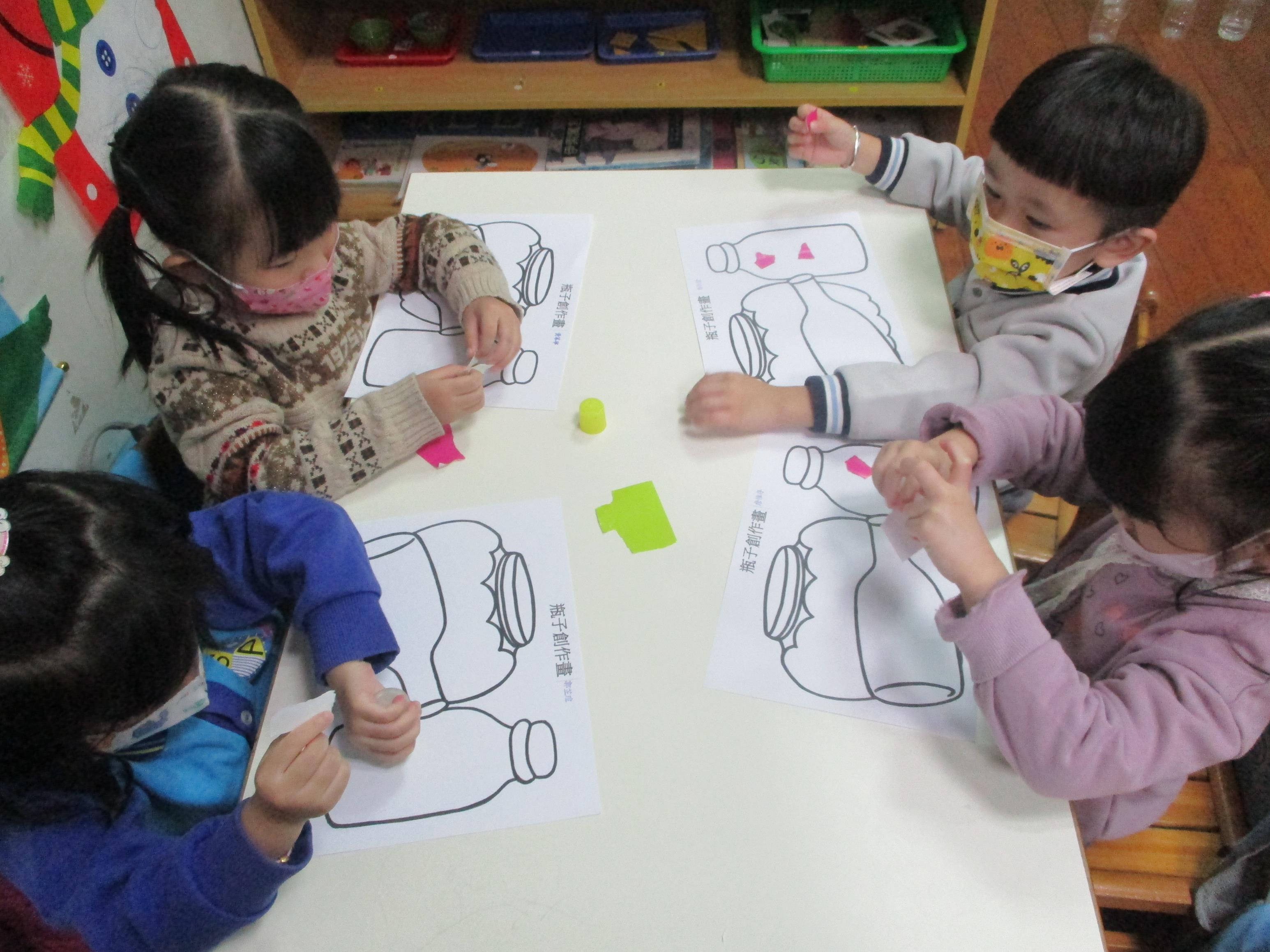 相簿名稱: 茉莉班-主題創作(瓶子創作畫(撕貼畫))