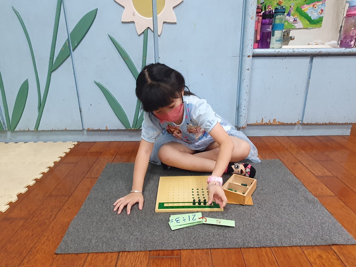 相簿名稱: 鬱金香班-蒙特梭利教學(數學教育-除算板)