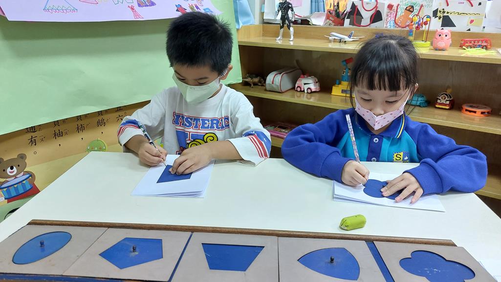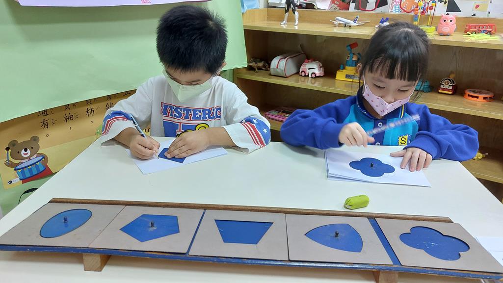 相簿名稱: 向日葵班-蒙特梭利教學(感官教育-製作形狀小冊-幾何嵌圖板)