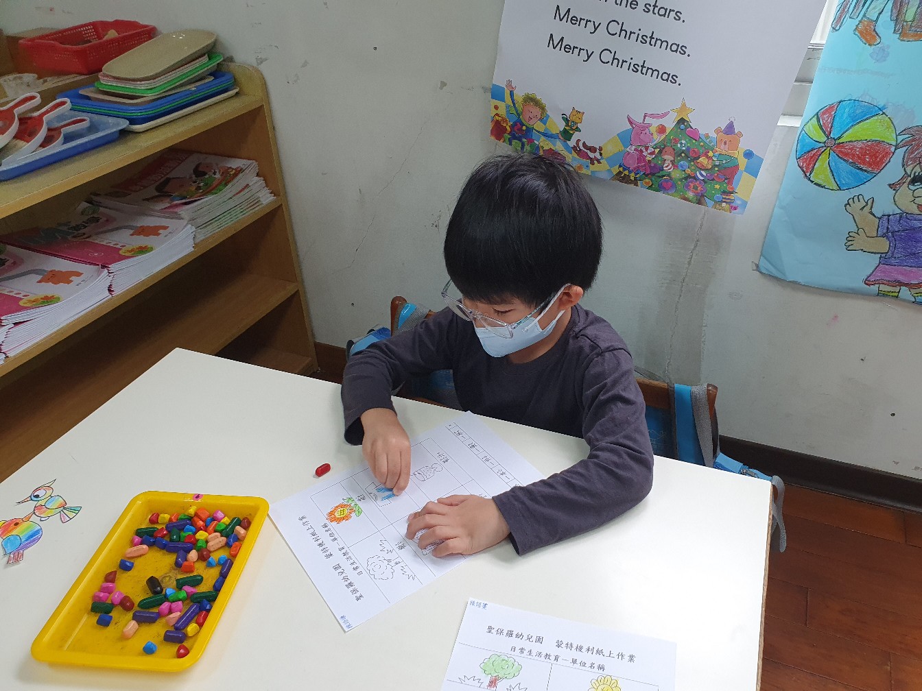 相簿名稱: 向日葵班-蒙特梭利教學(日常生活教育-單位名稱紙上作業)