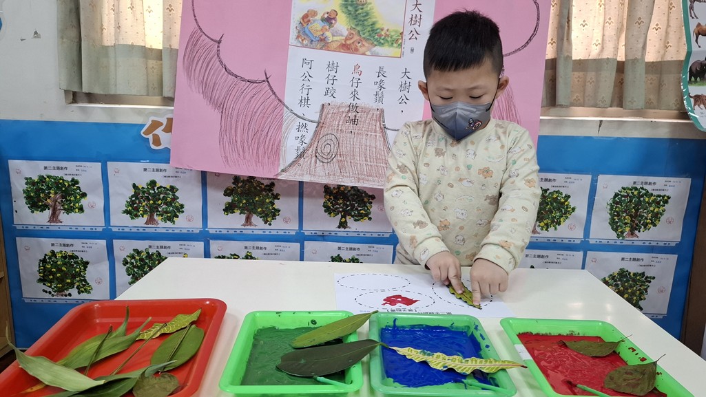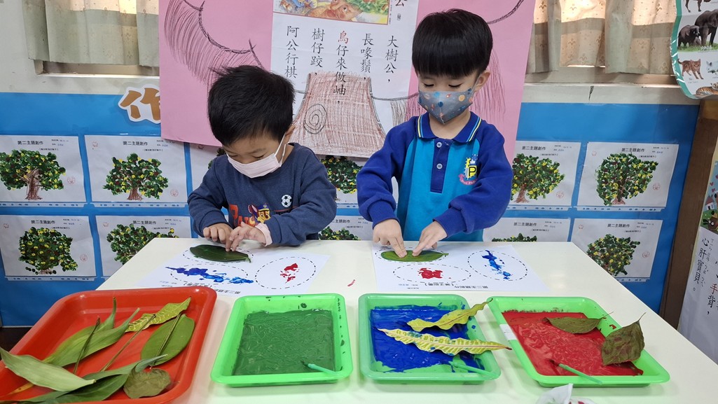 相簿名稱: 葡萄班-主題活動(藝術與人文創作-葉子刷畫)