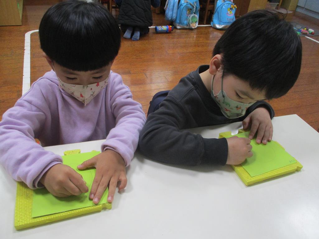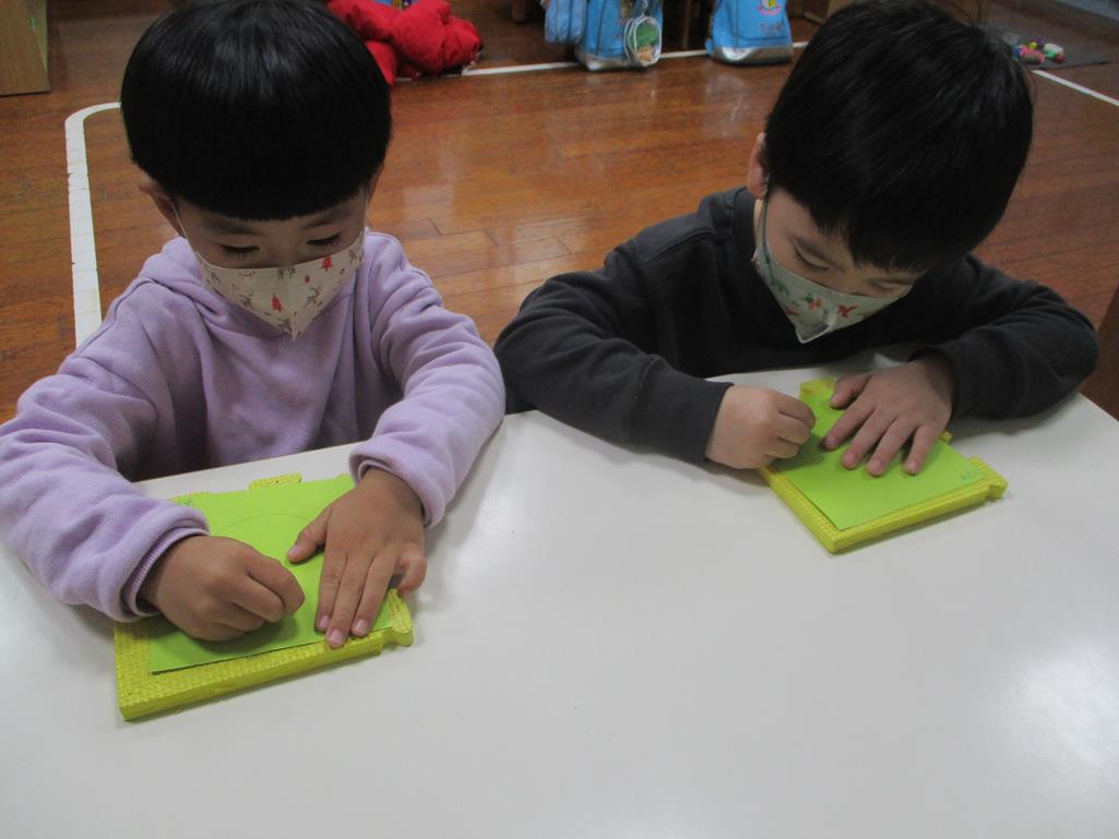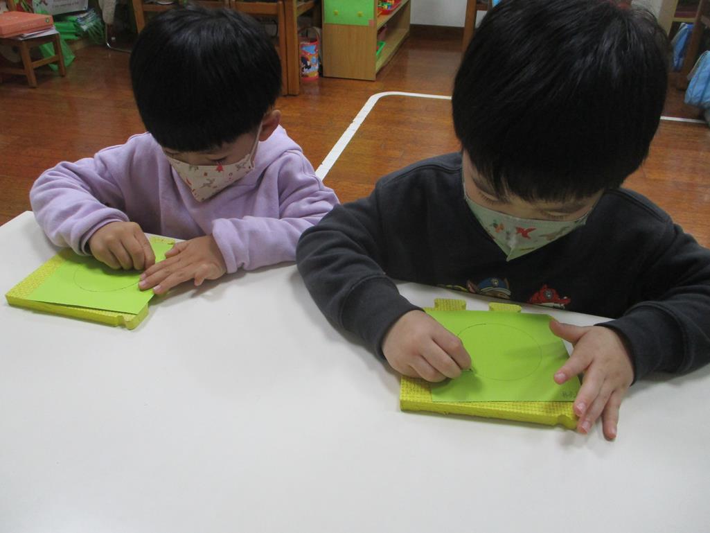 相簿名稱: 茉莉班-蒙特梭利教學(日常生活教育-刺工-幾何圖形(圓形))