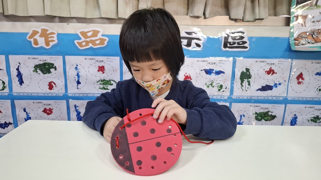 相簿名稱: 葡萄班-蒙特梭利教學(日常生活教育-瓢蟲穿洞板)