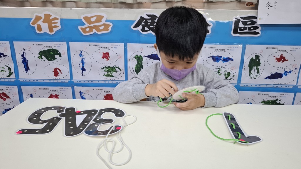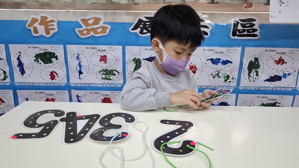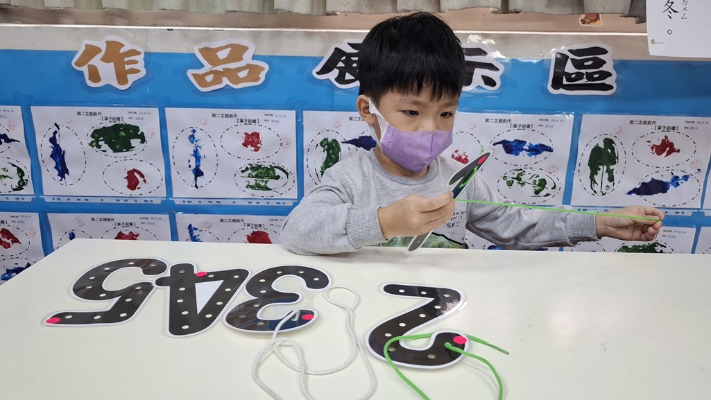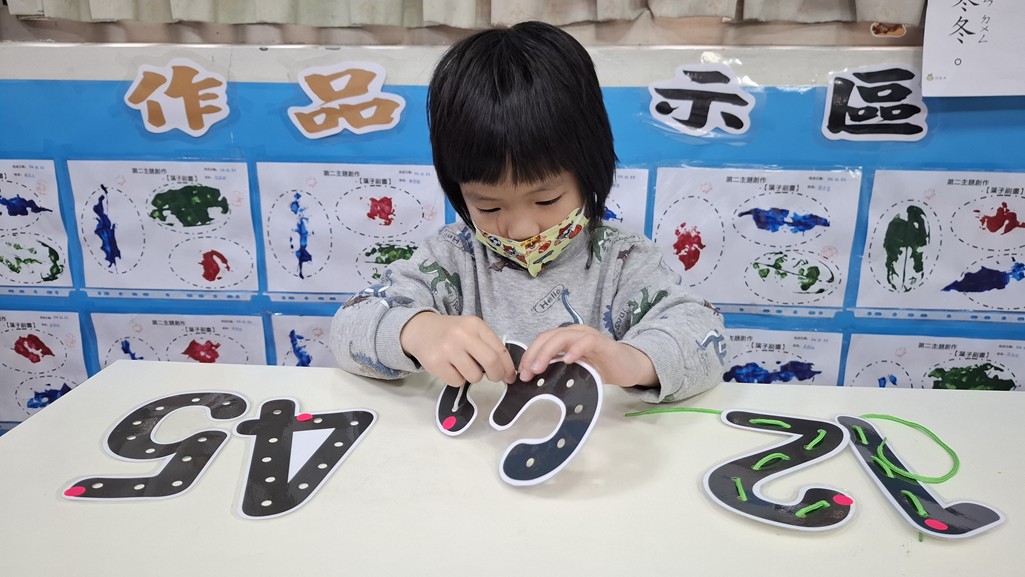 相簿名稱: 葡萄班-蒙特梭利教學(數學教育-數字穿洞板1-5)