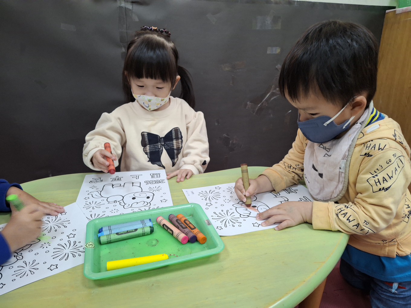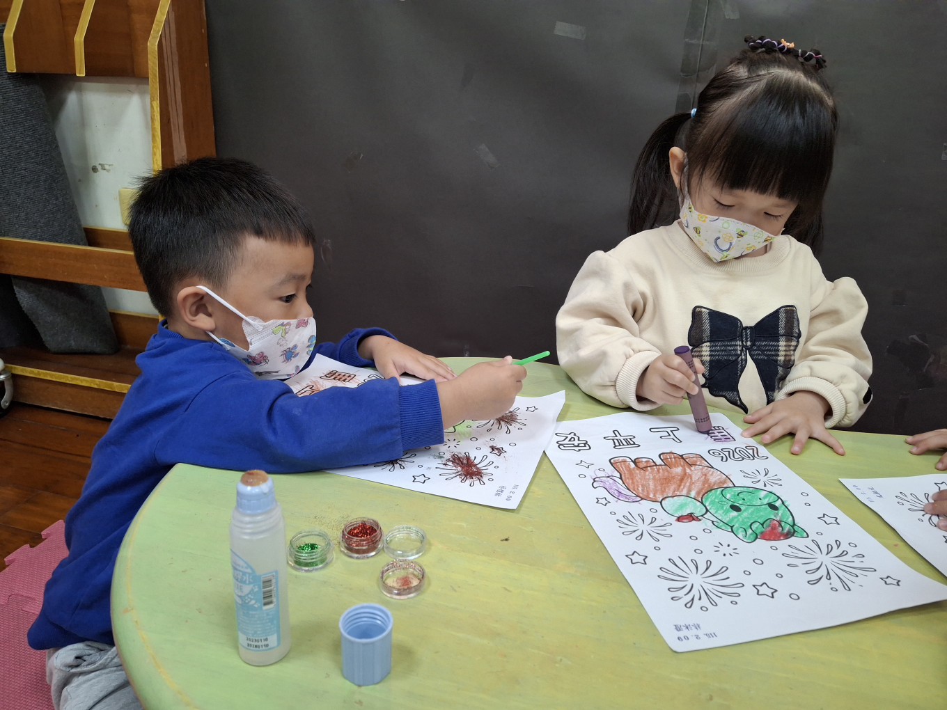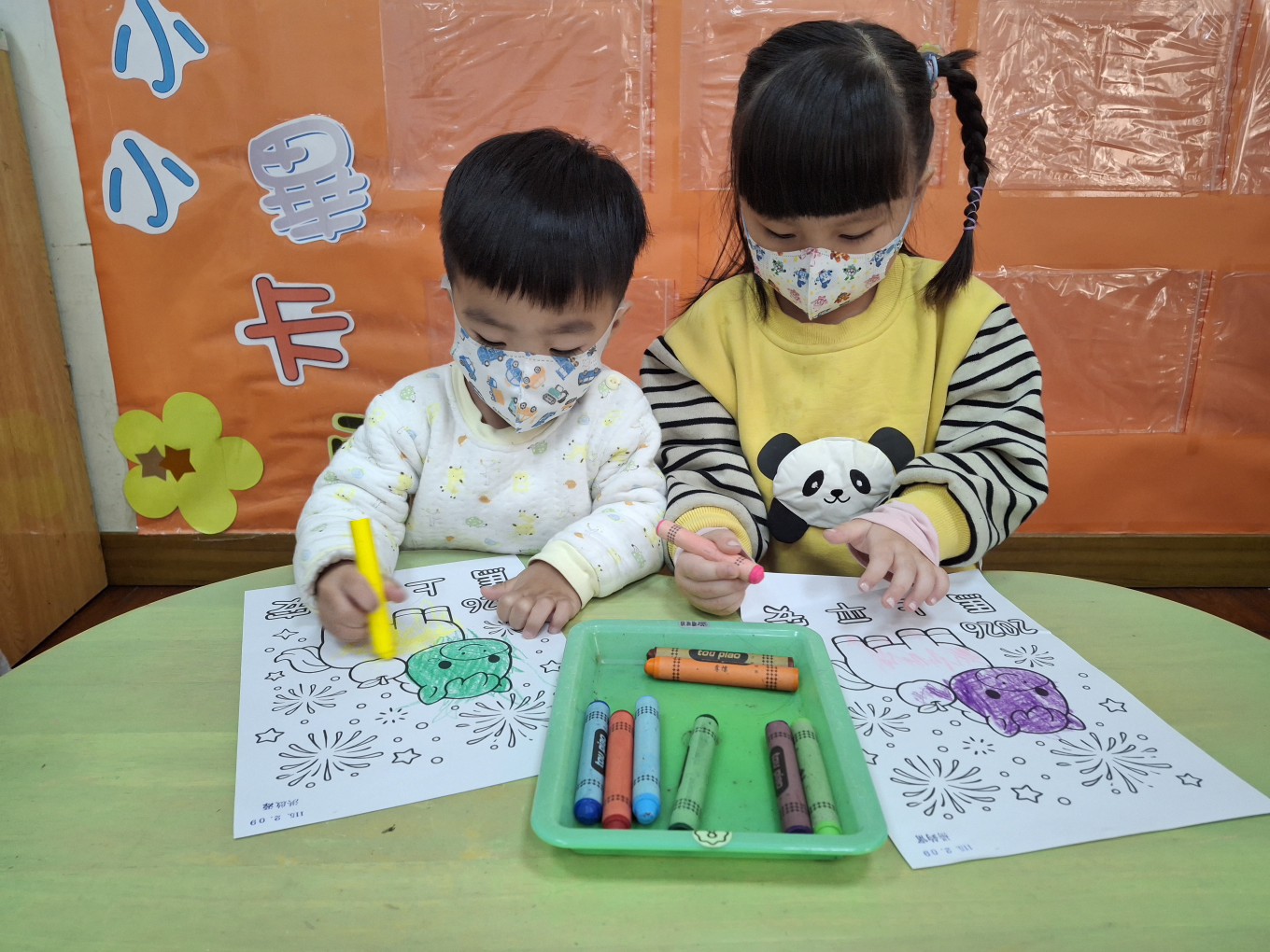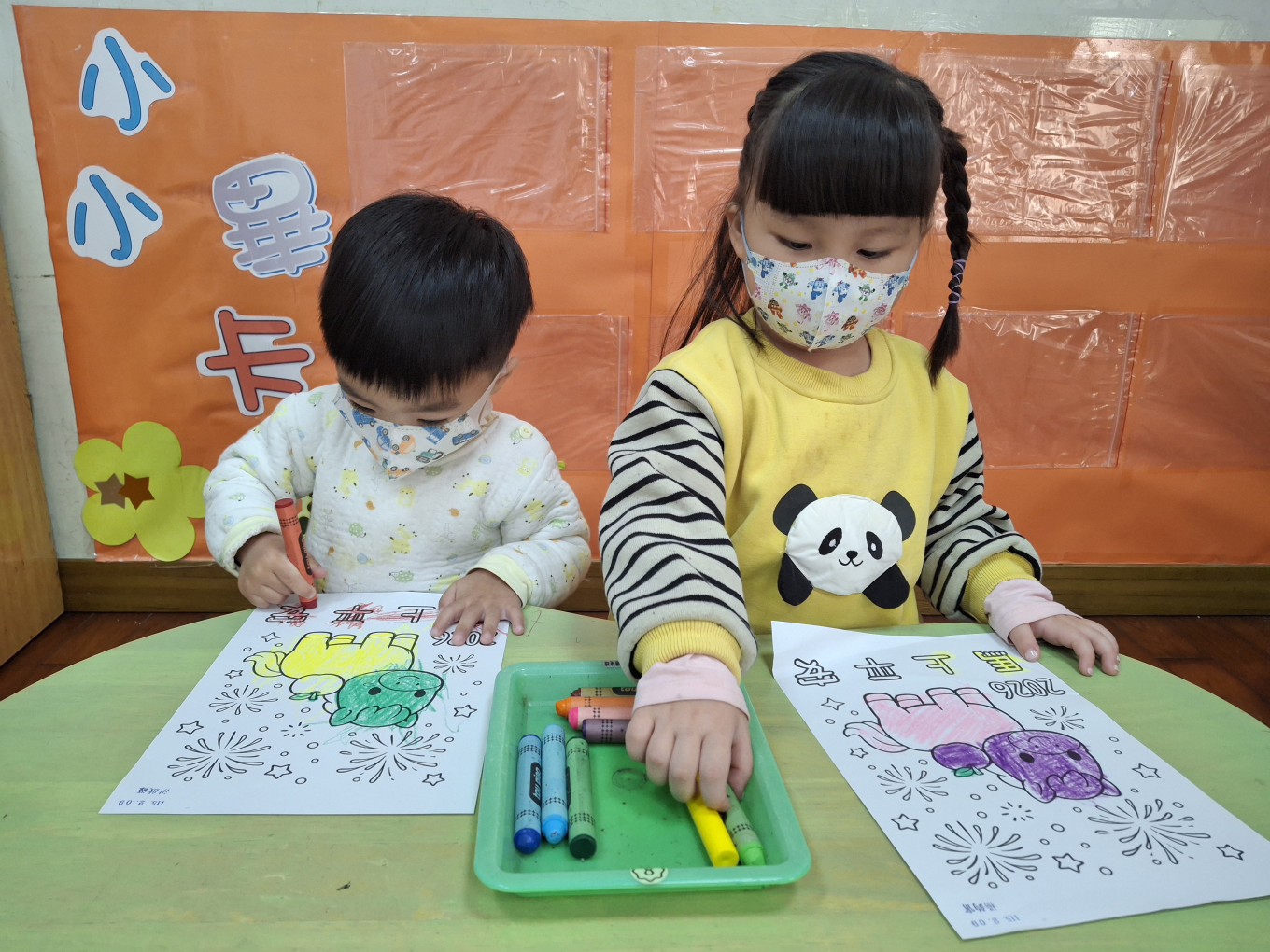 相簿名稱: 草莓班-美感創作【節慶立體作品&著色畫((劈哩啪啦馬上旺(鞭炮)&馬上平安))】