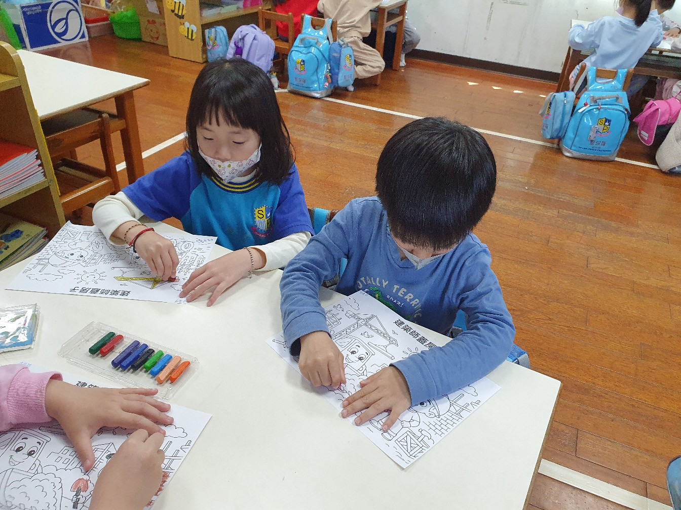 相簿名稱: 向日葵班-主題美感創作(著色畫-建築師蓋房子)