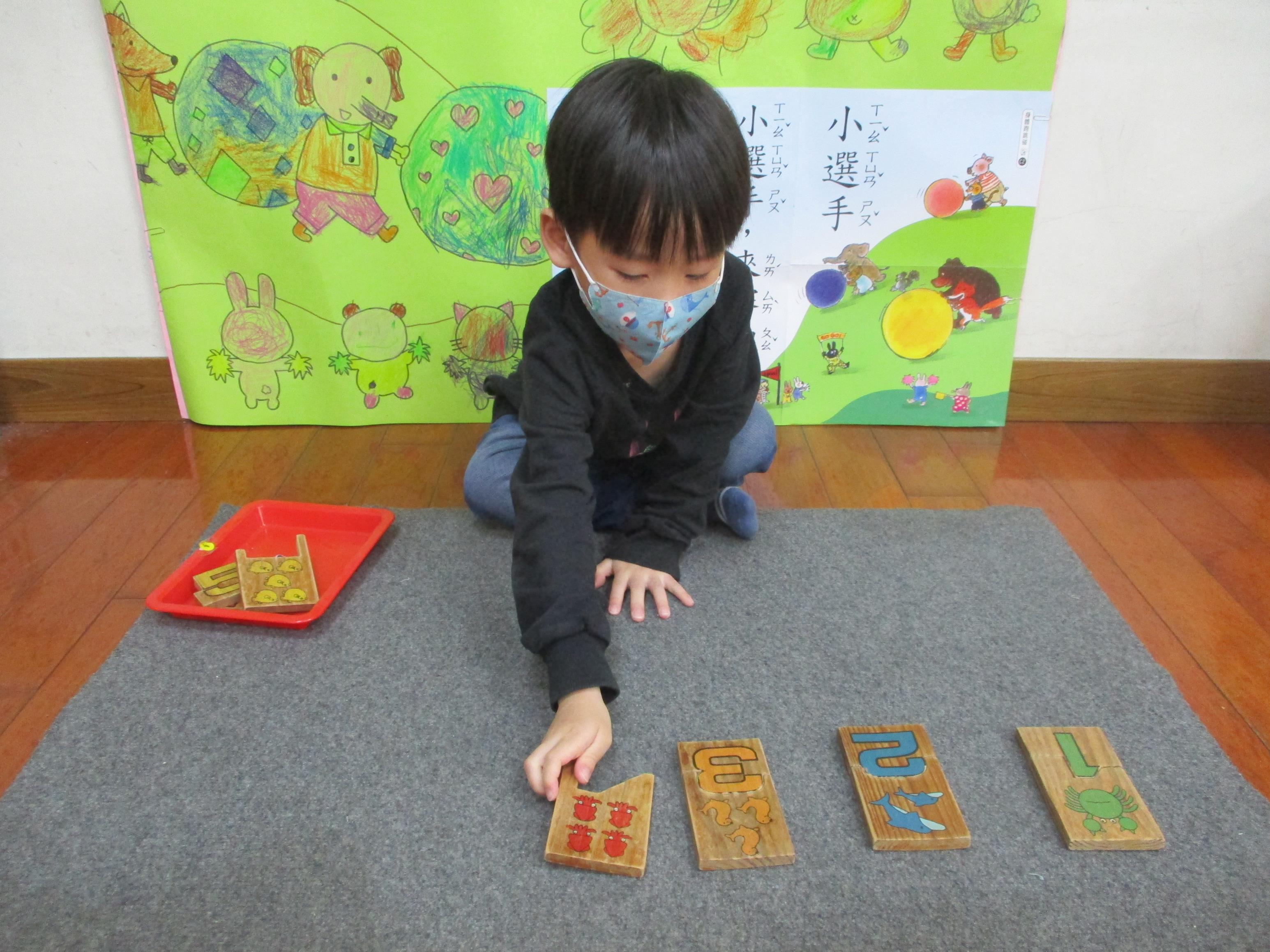 相簿名稱: 茉莉班-蒙特梭利教學(數學教育-數字與量配對<木製>)