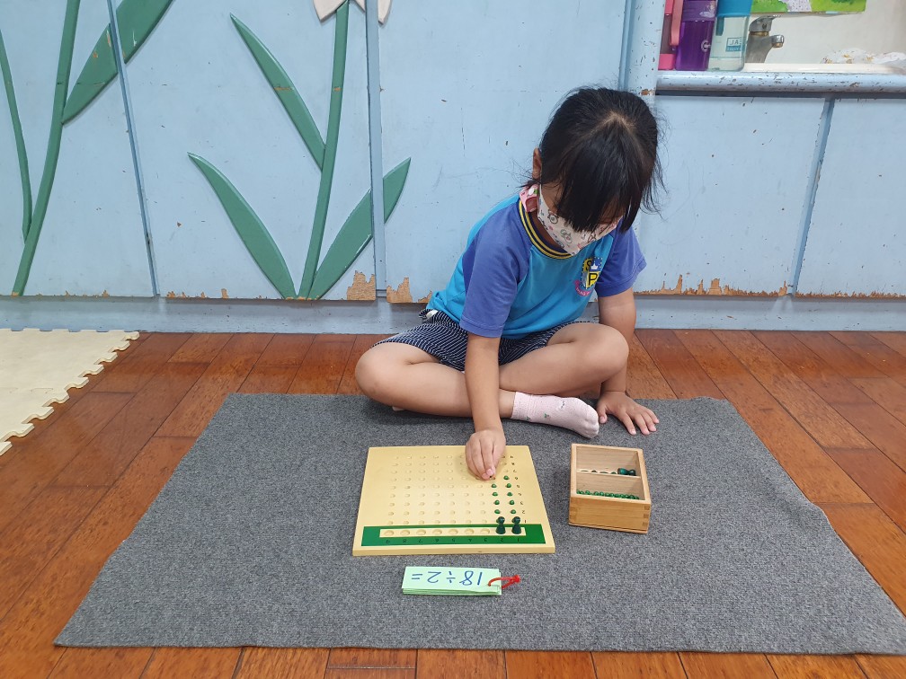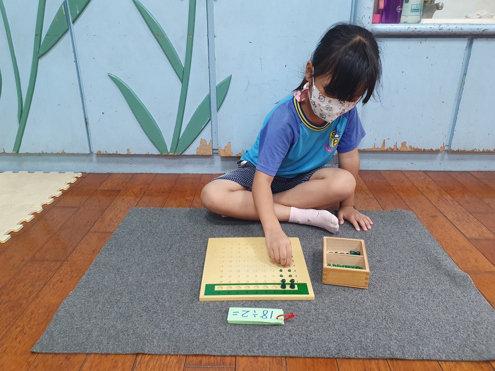 相簿名稱: 鬱金香班-蒙特梭利教學(數學教育-除算板)