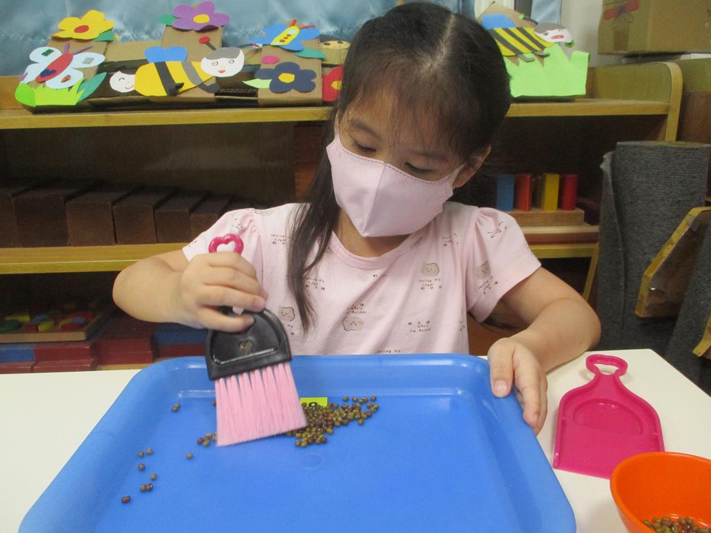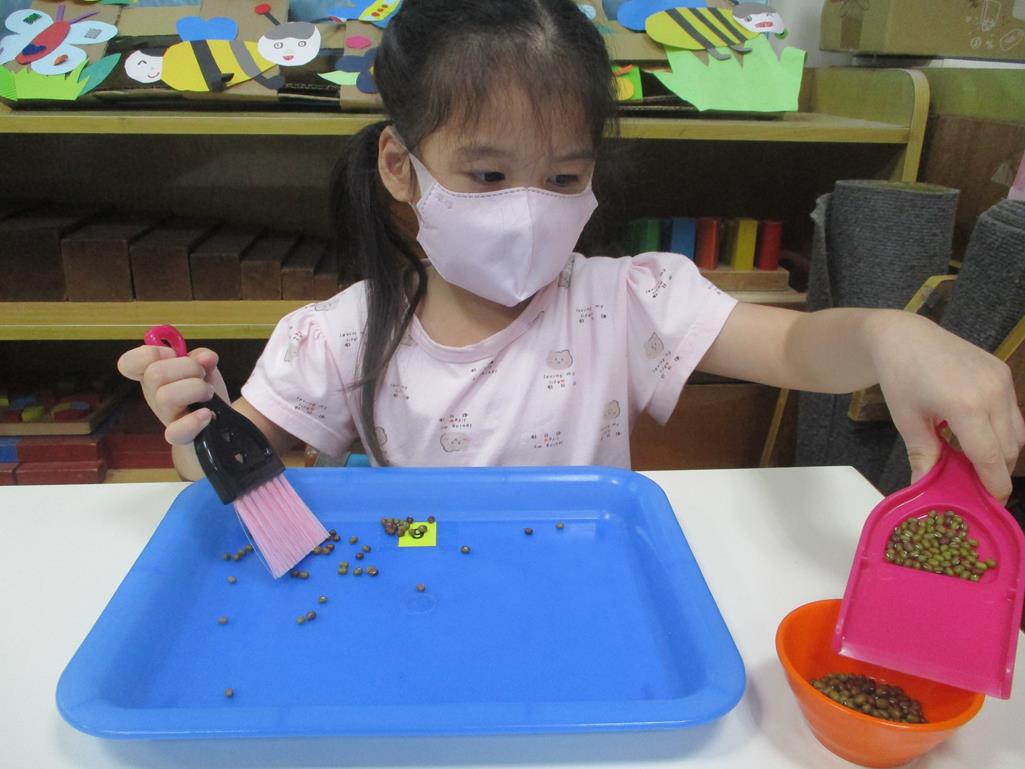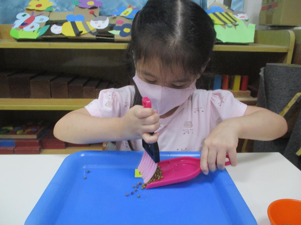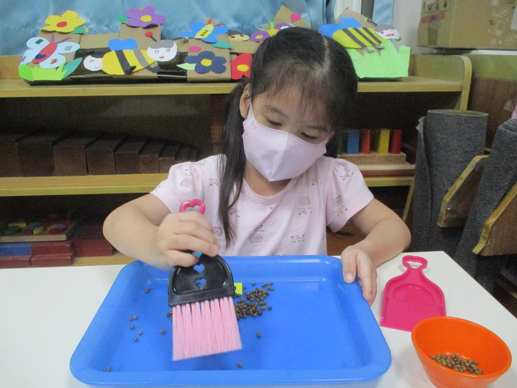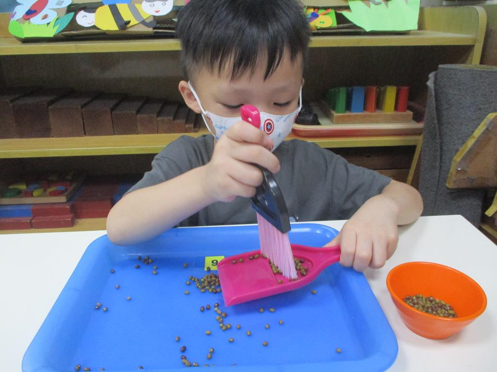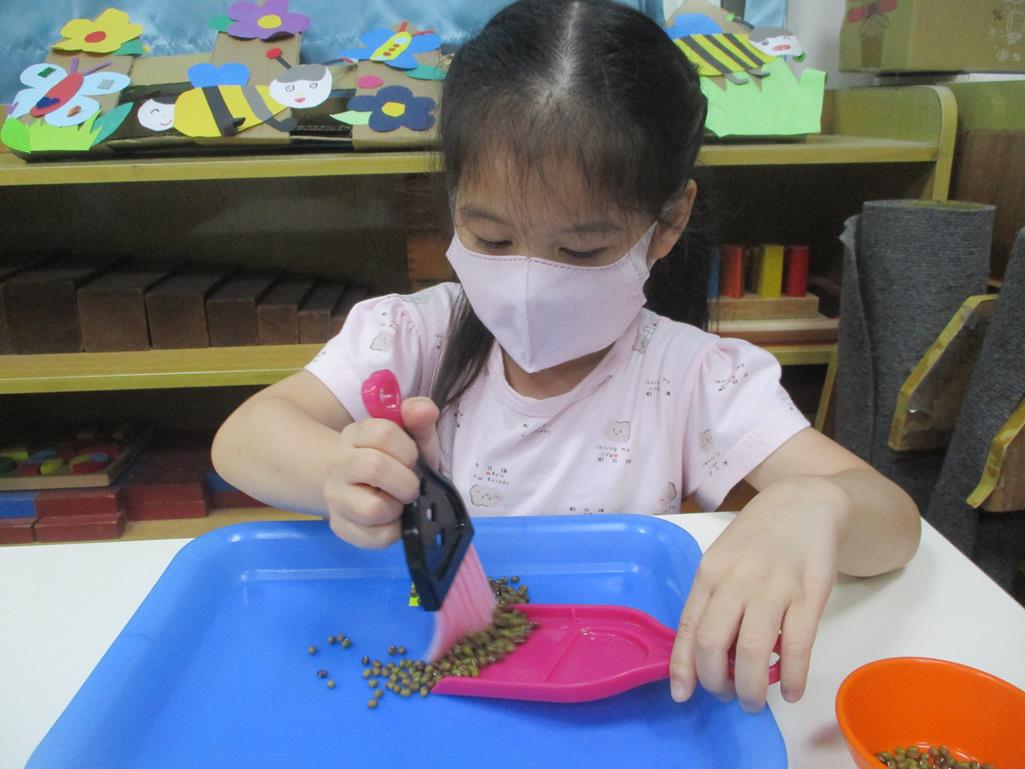 相簿名稱: 茉莉班-蒙特梭利教學(日常生活教育-掃豆練習)