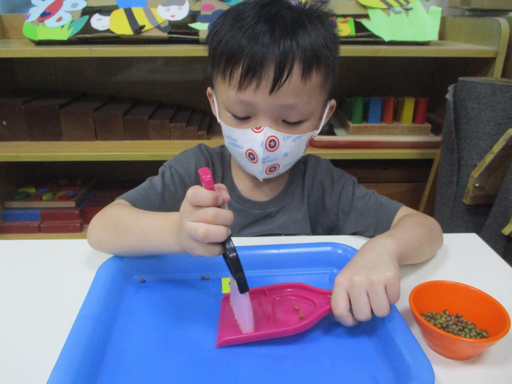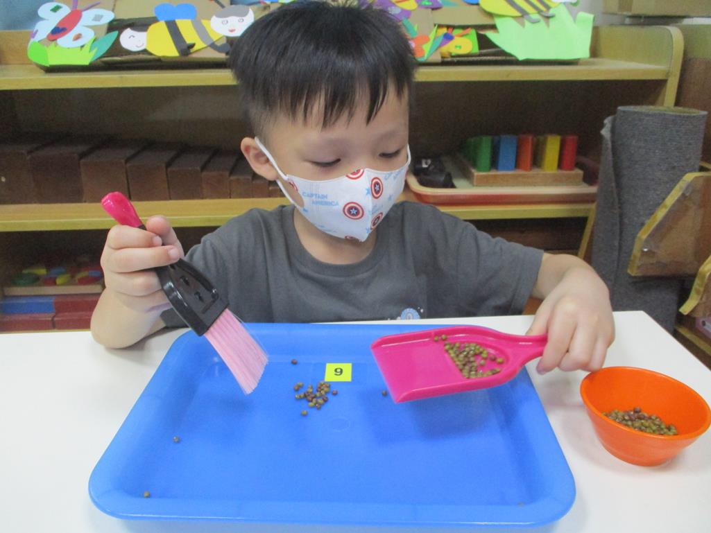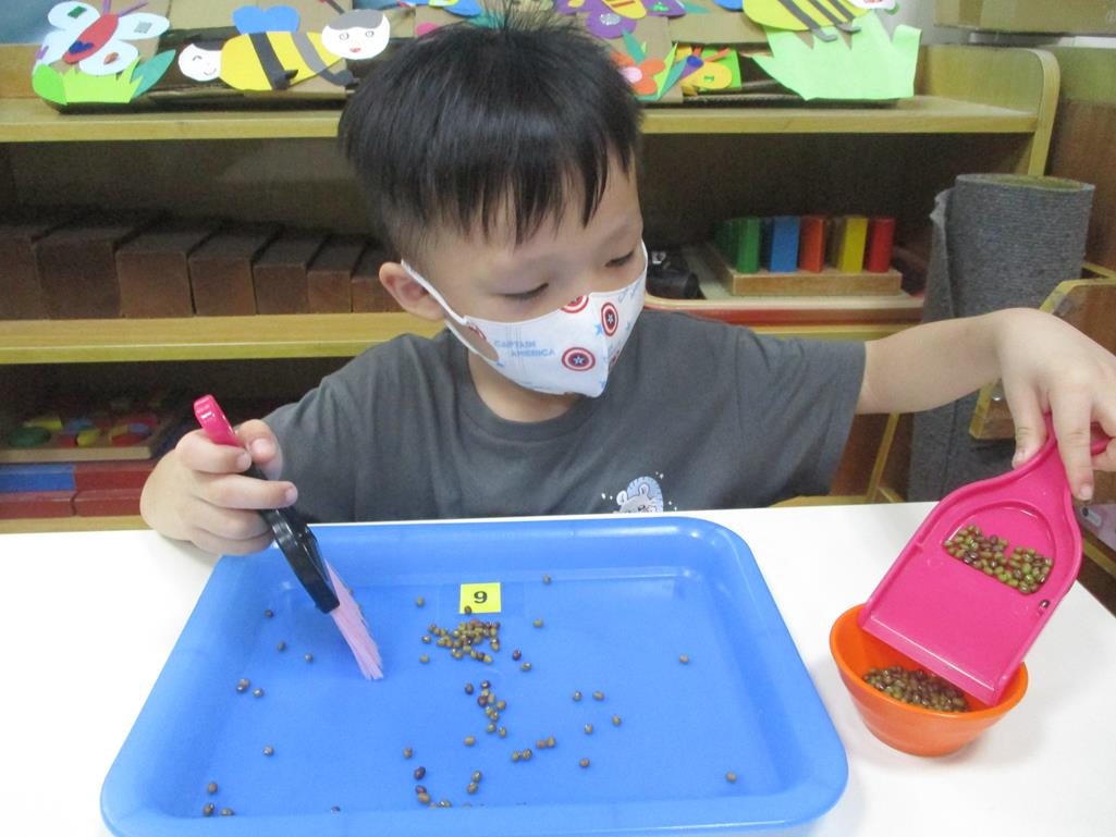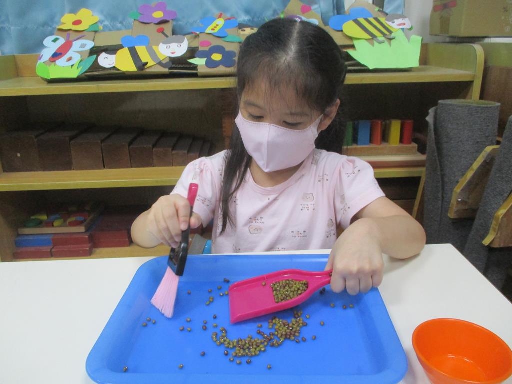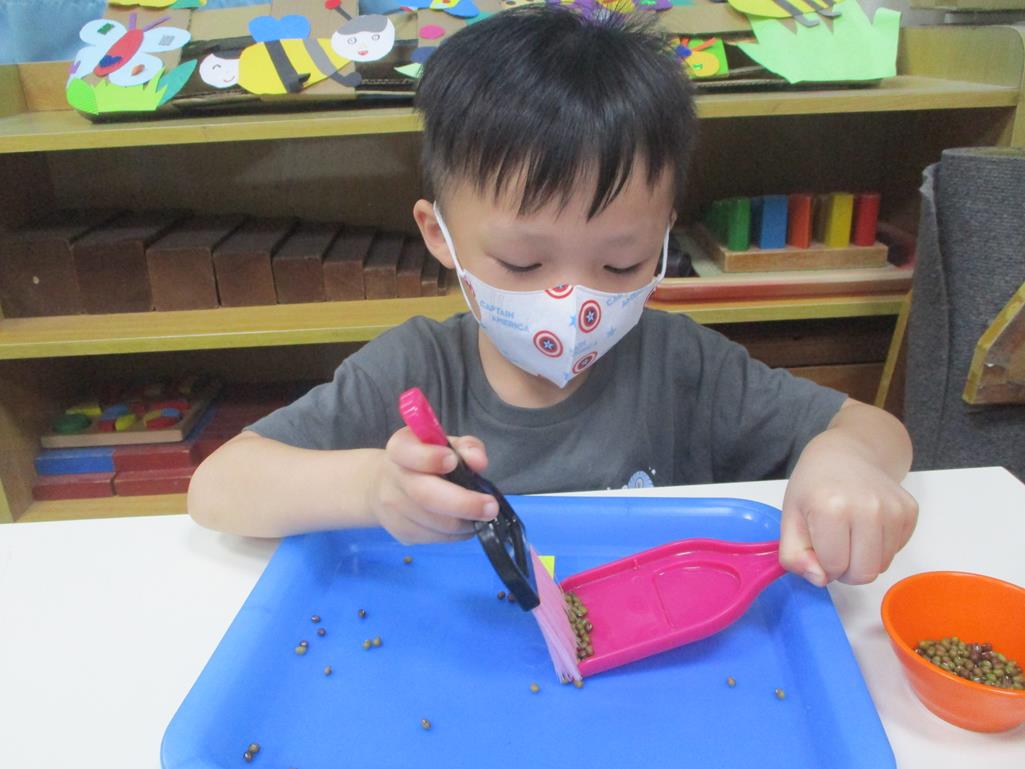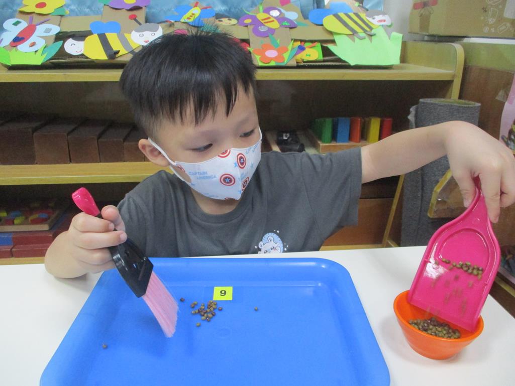 相簿名稱: 茉莉班-蒙特梭利教學(日常生活教育-掃豆練習)