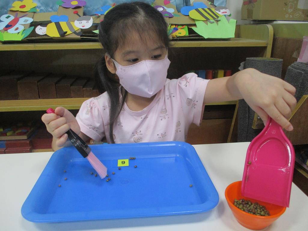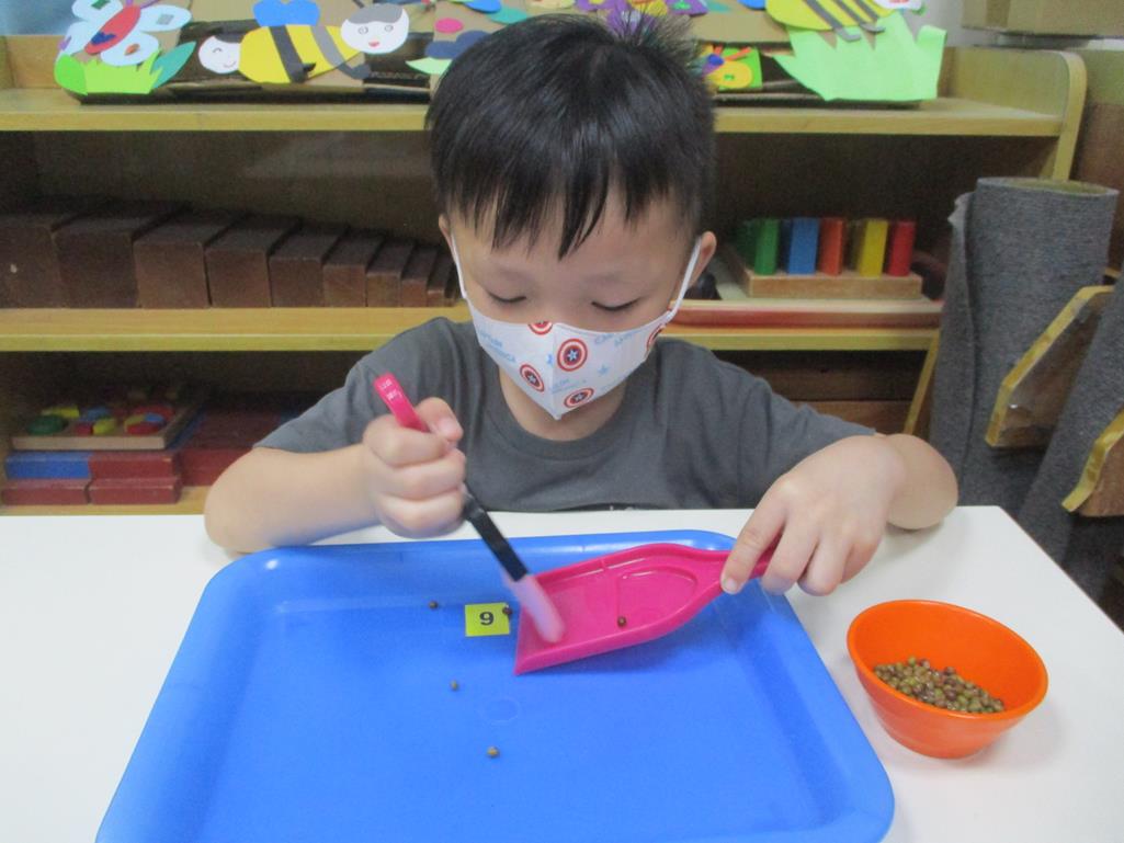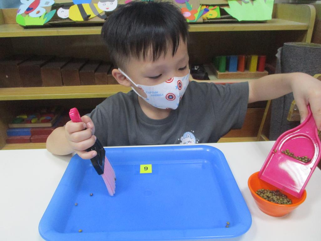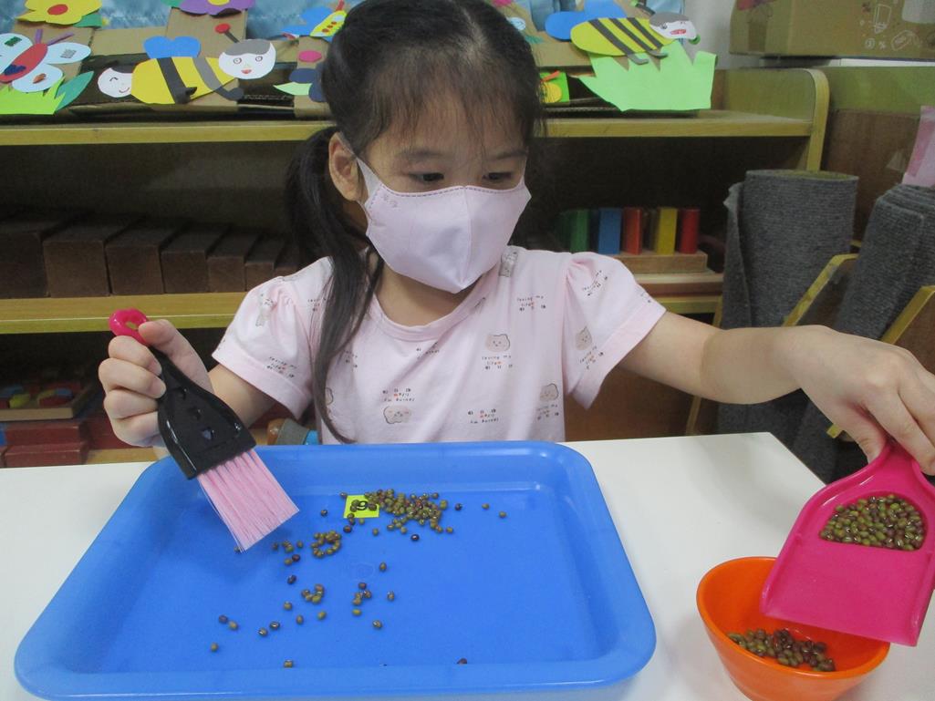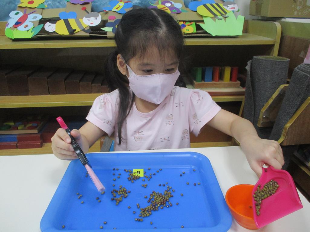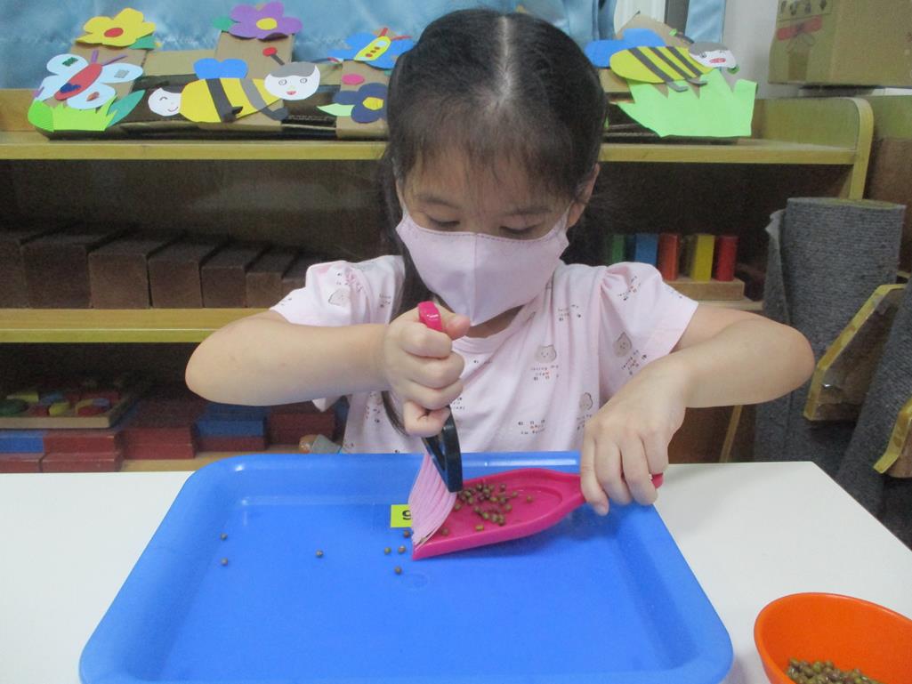 相簿名稱: 茉莉班-蒙特梭利教學(日常生活教育-掃豆練習)