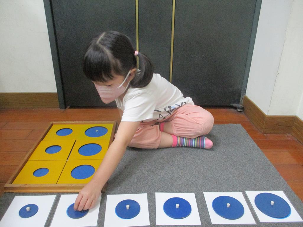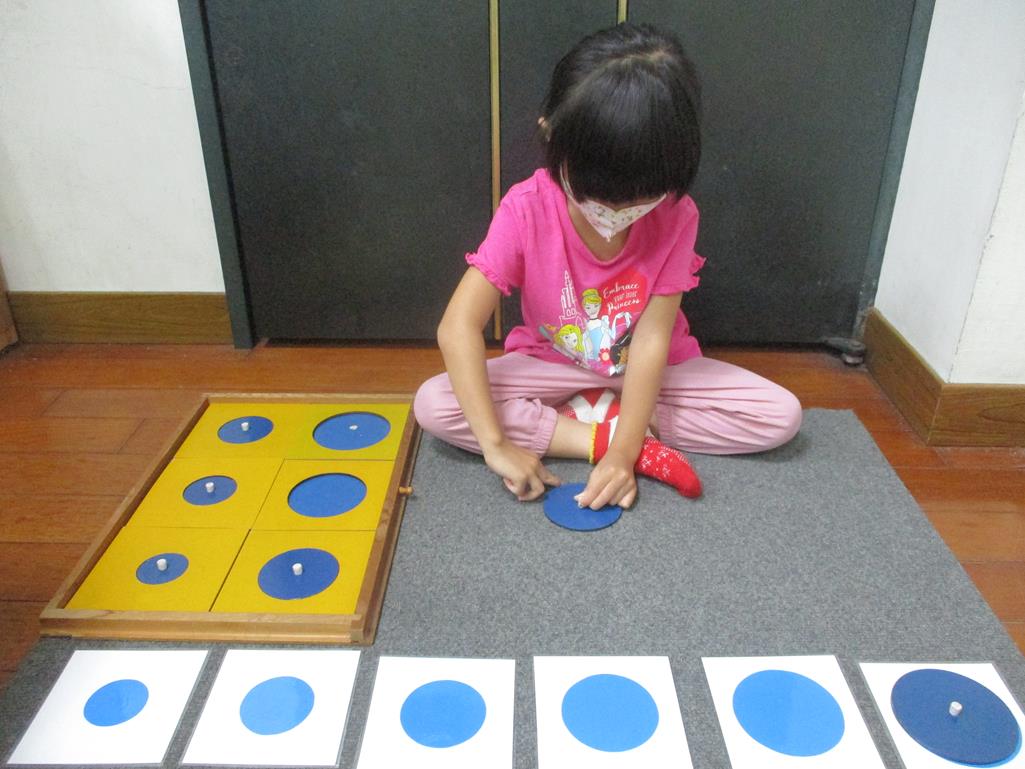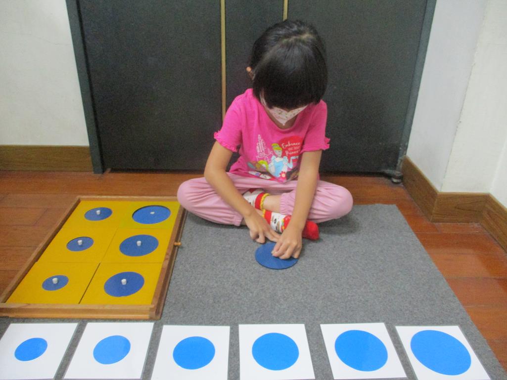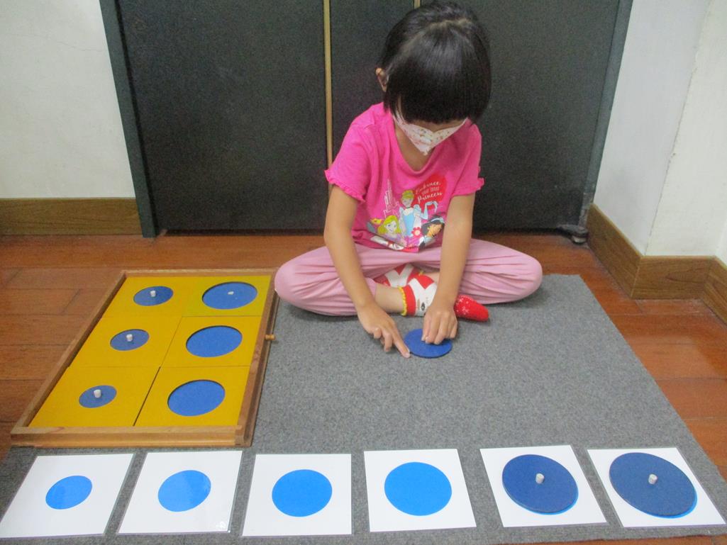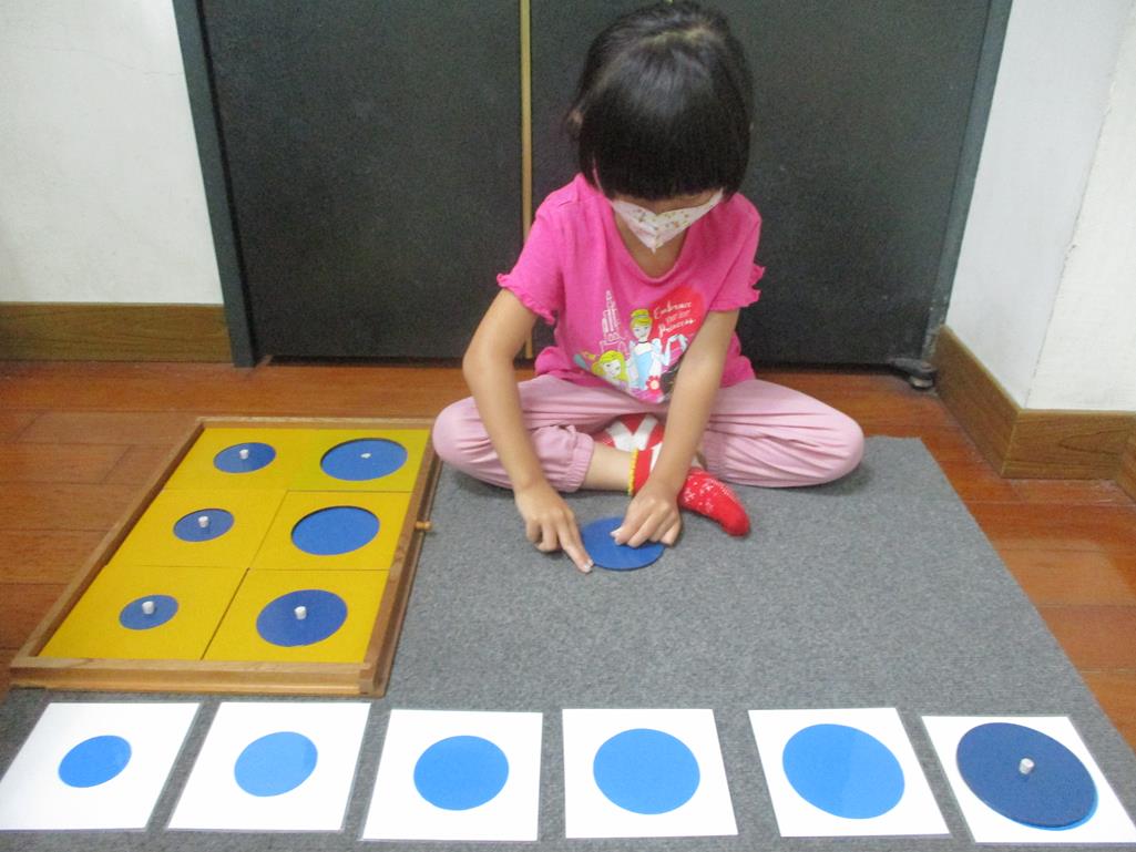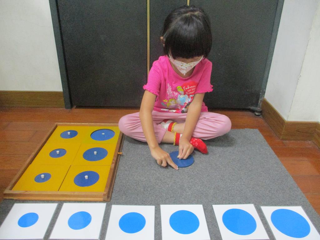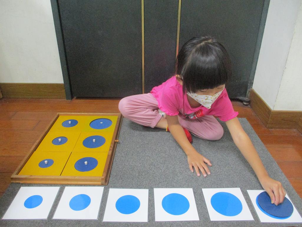 相簿名稱: 茉莉班-蒙特梭利教學(感官教育-幾何拼圖櫥(圓形)+實心卡)