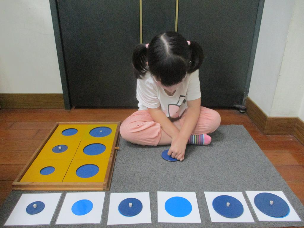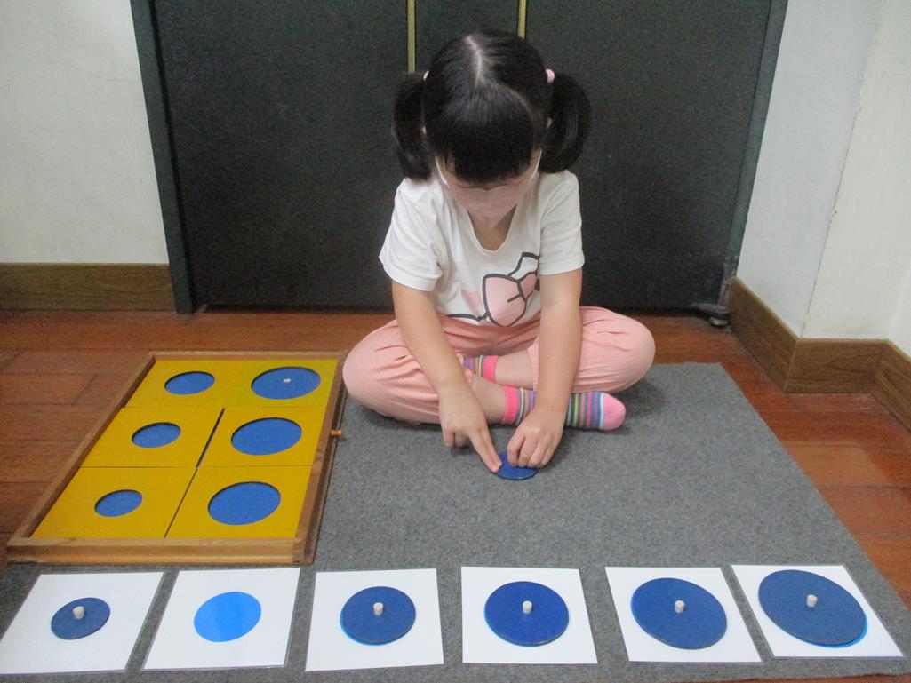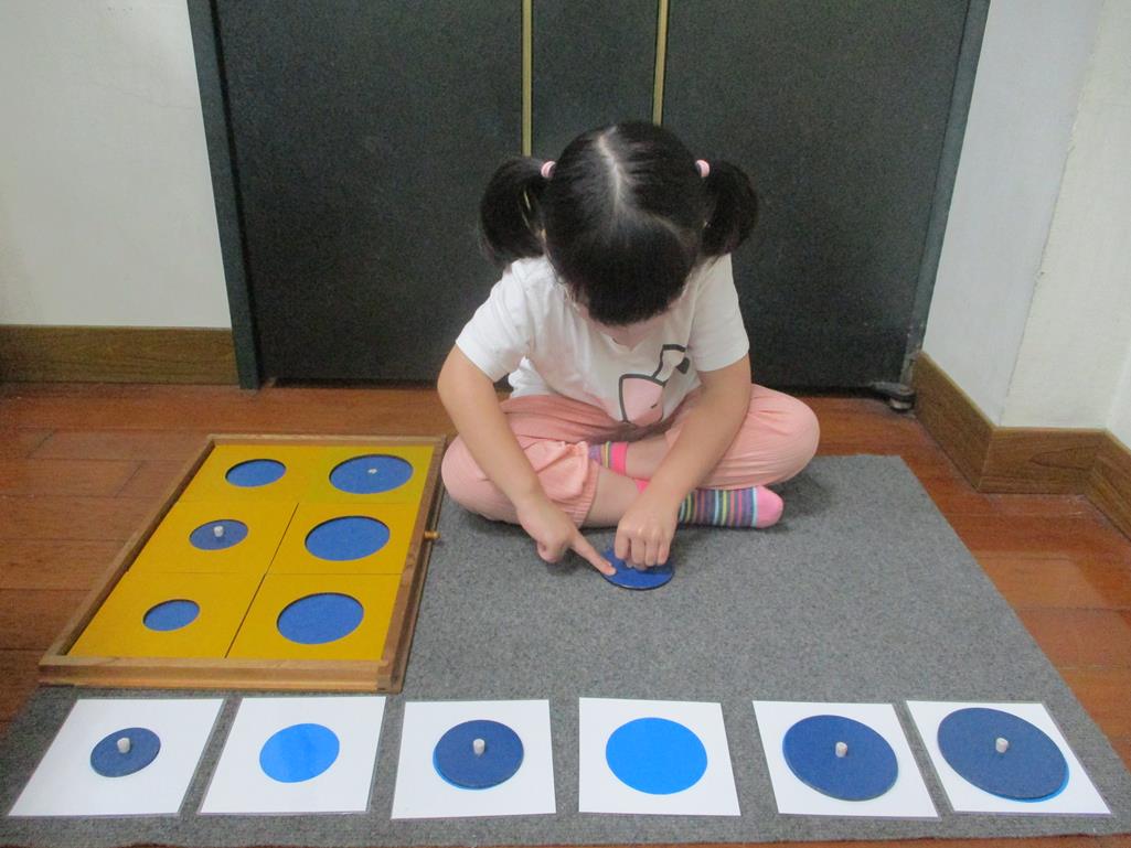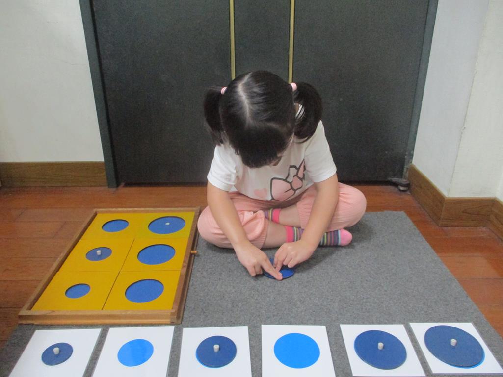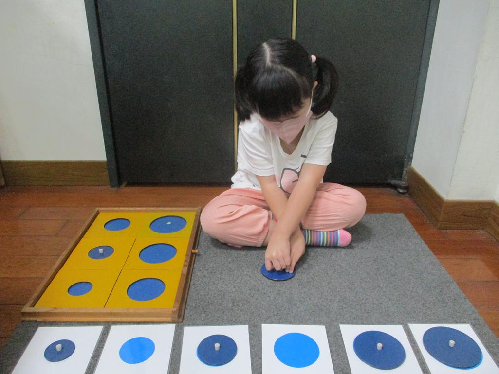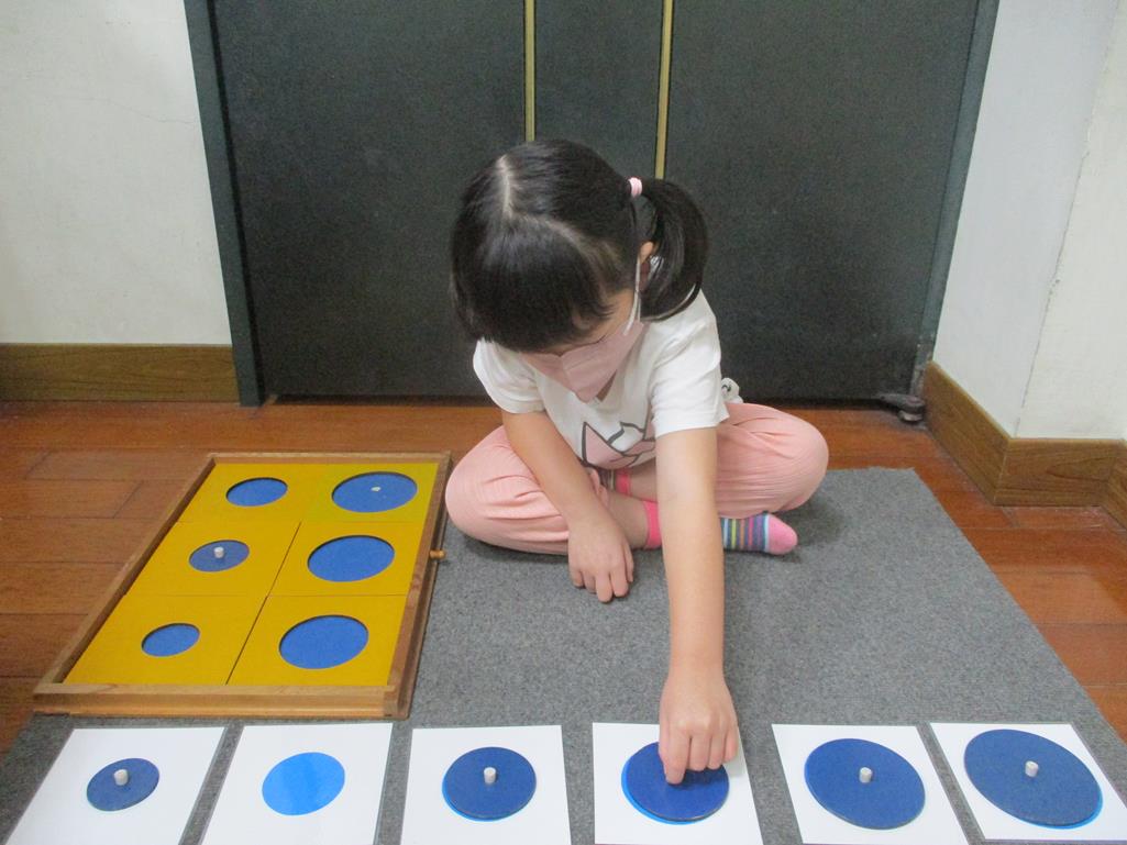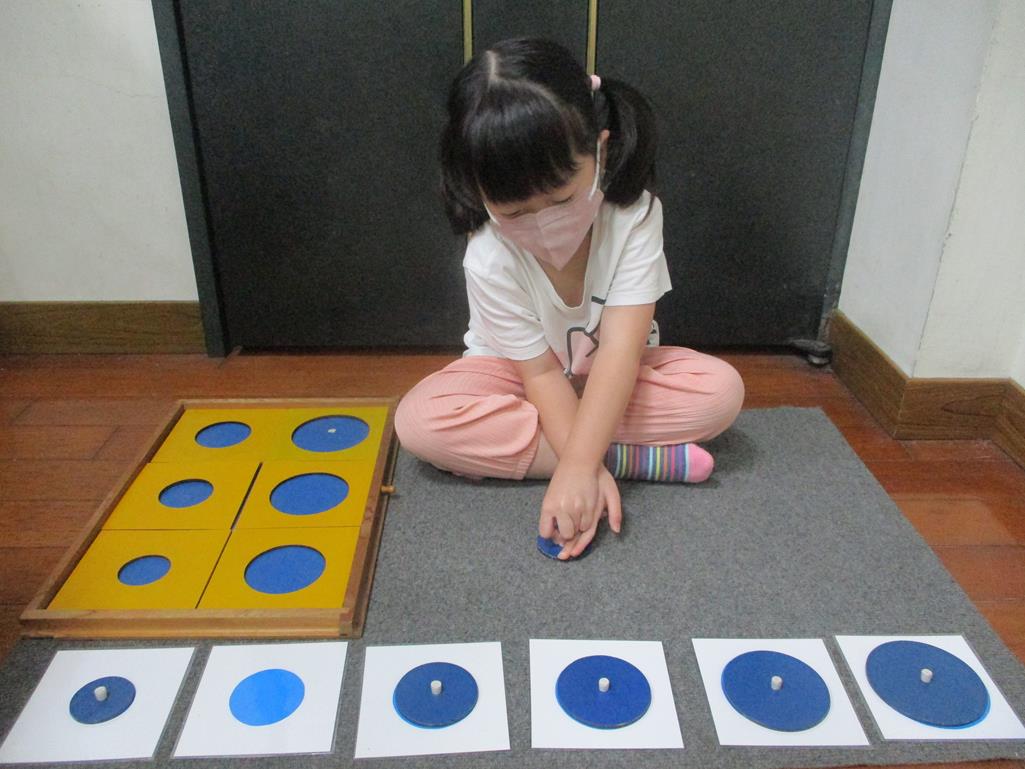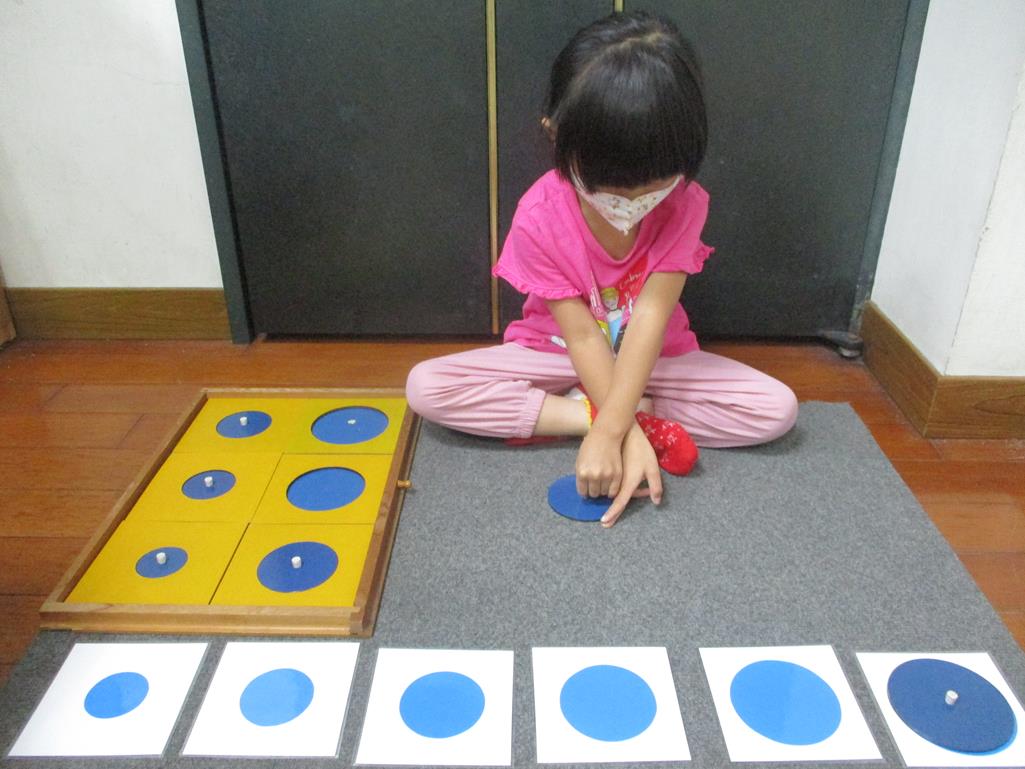 相簿名稱: 茉莉班-蒙特梭利教學(感官教育-幾何拼圖櫥(圓形)+實心卡)