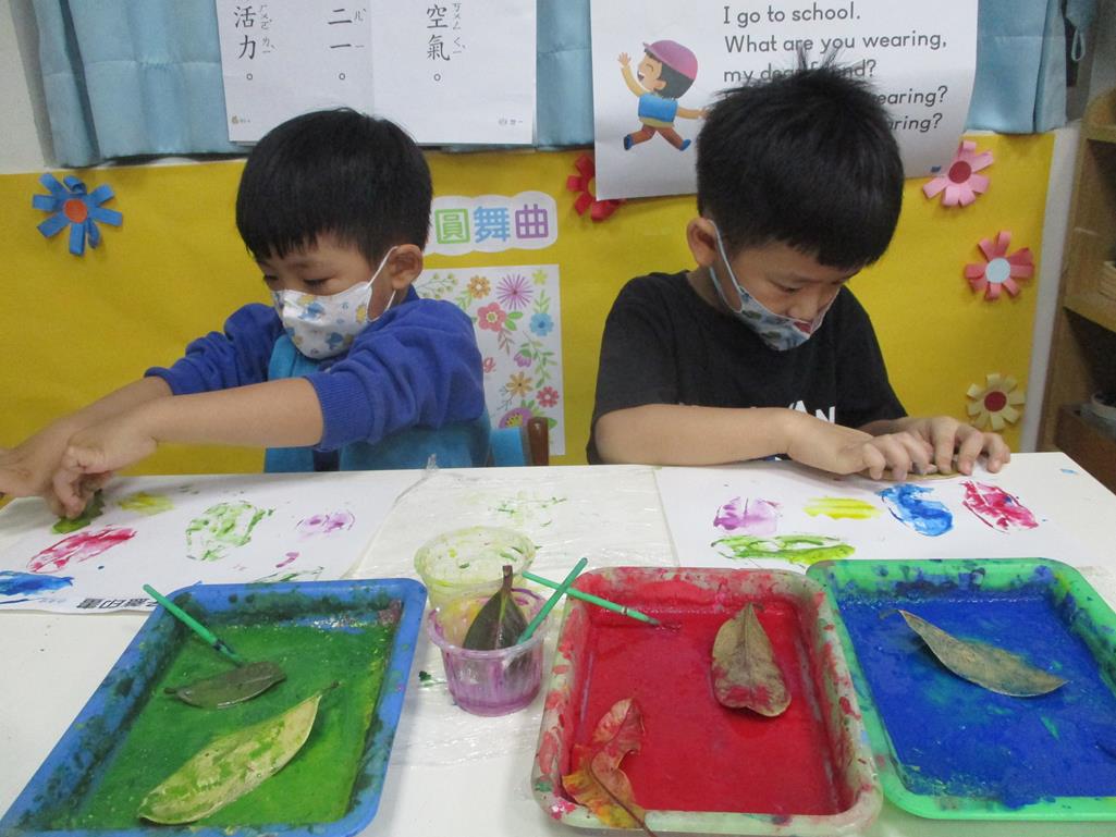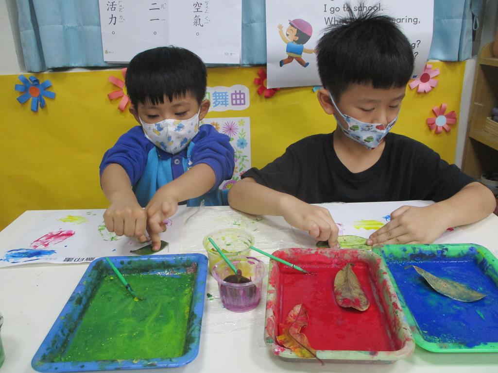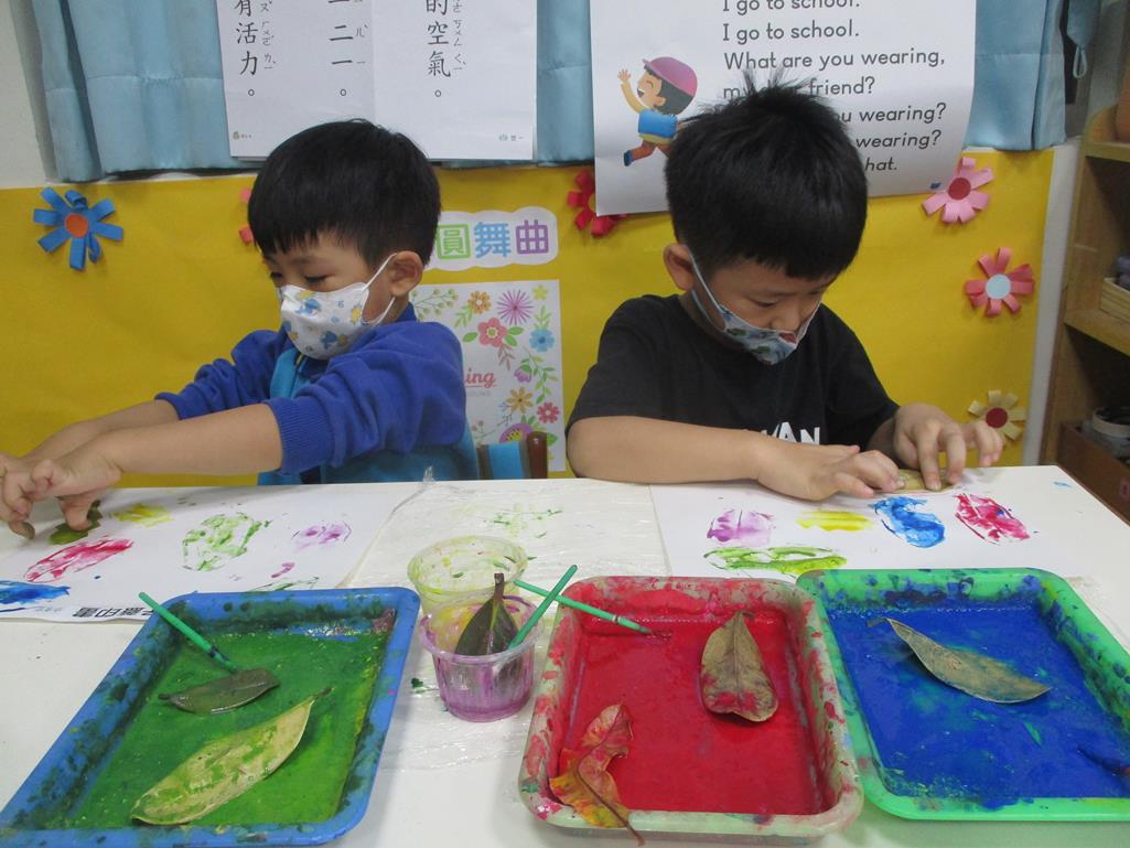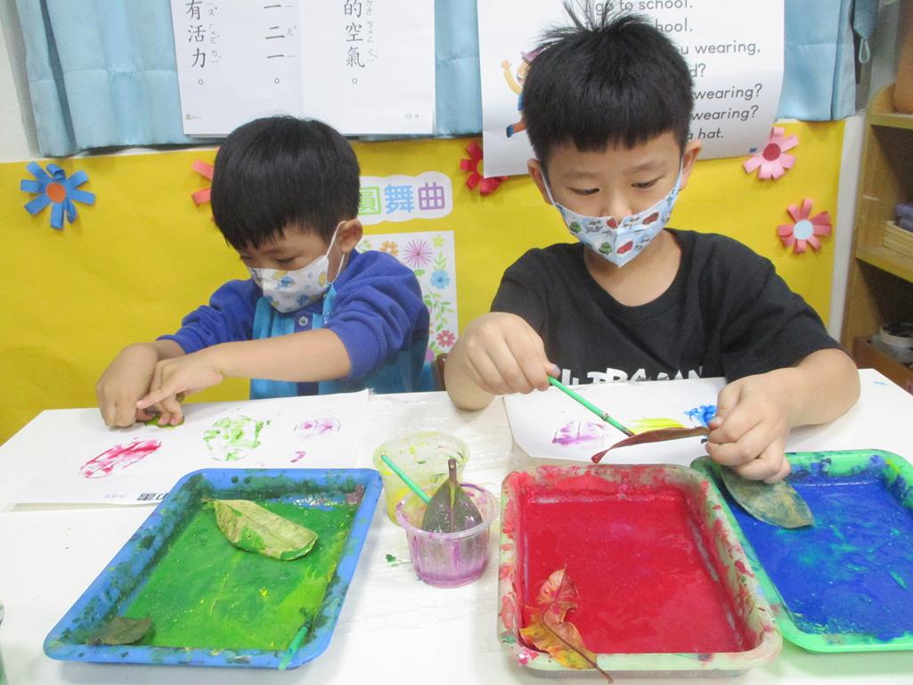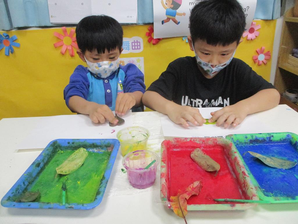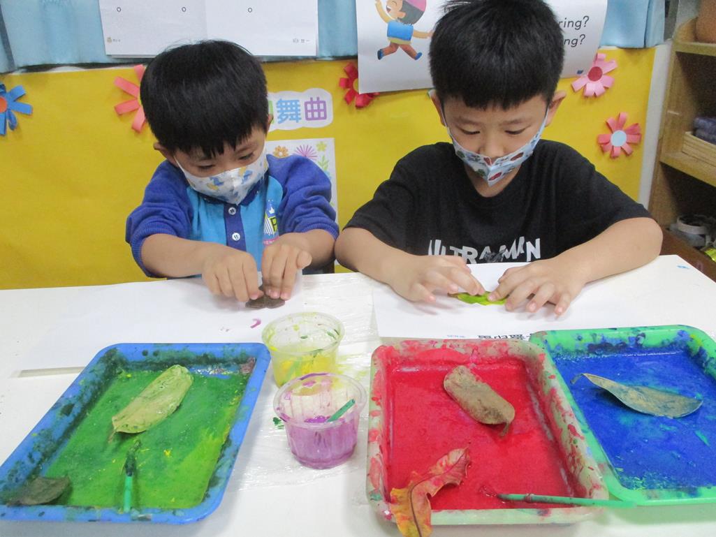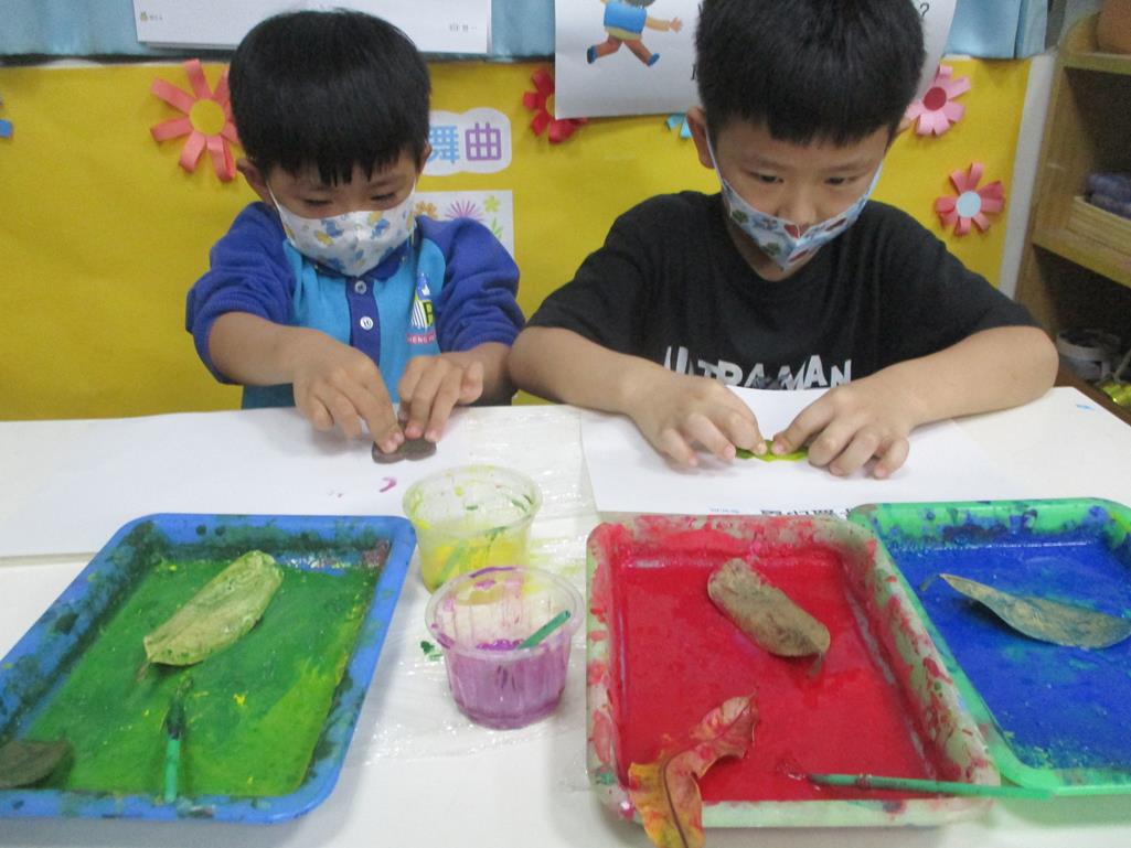 相簿名稱: 茉莉班-主題美感創作(葉子蓋印畫)