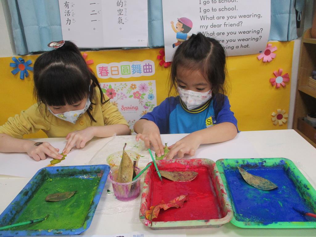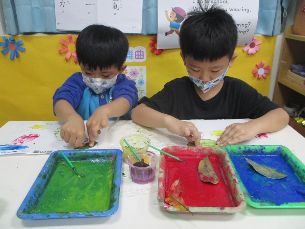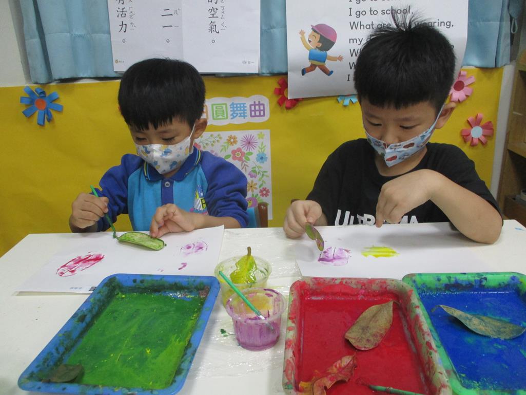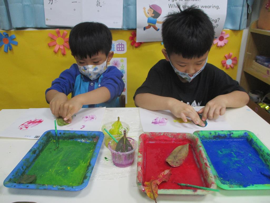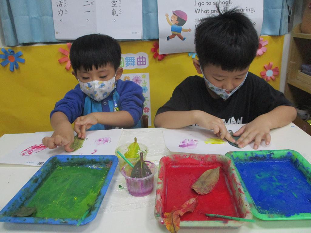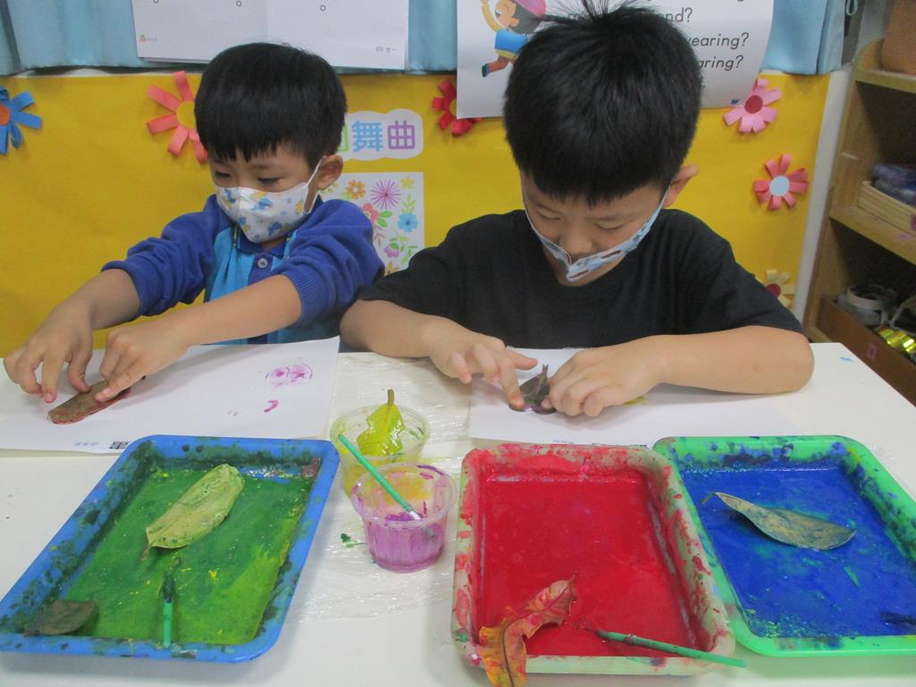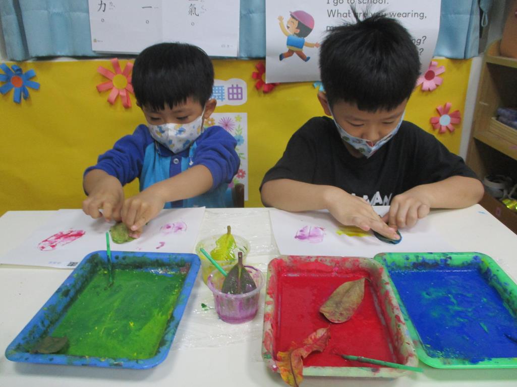 相簿名稱: 茉莉班-主題美感創作(葉子蓋印畫)