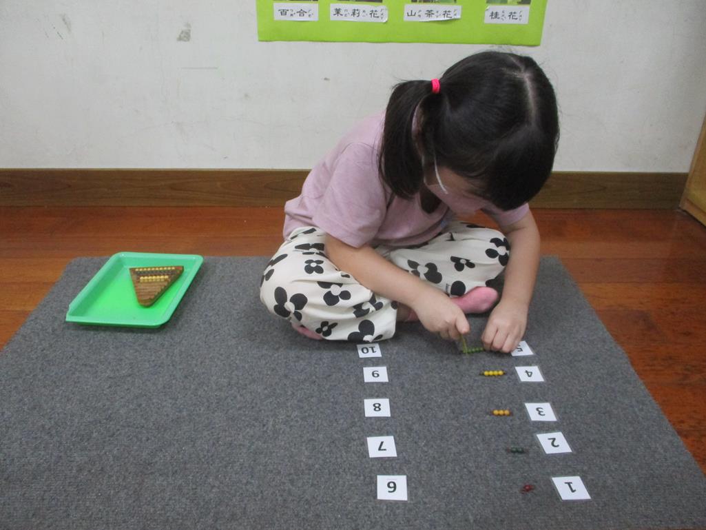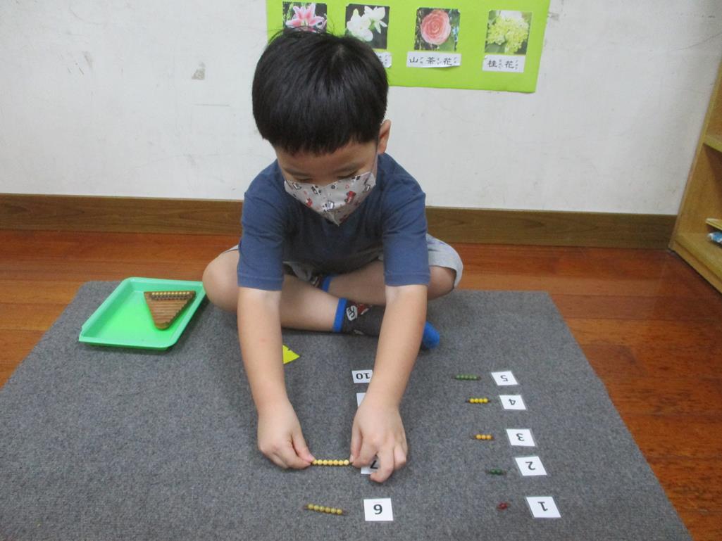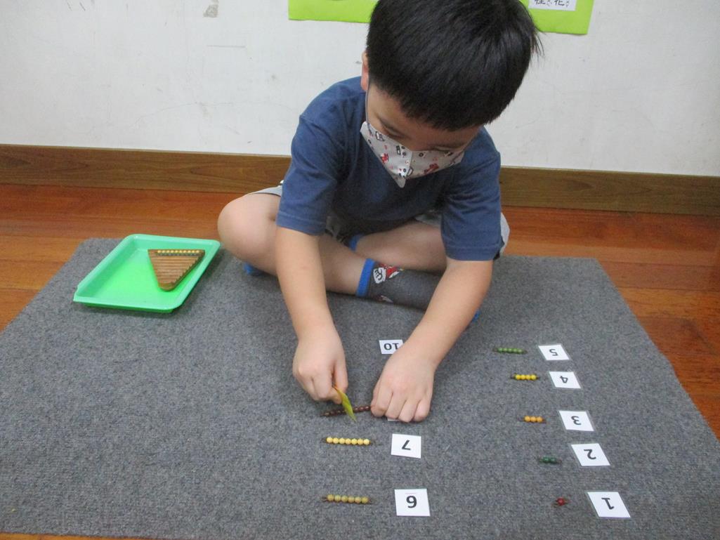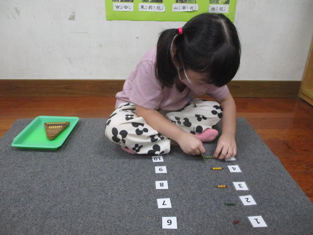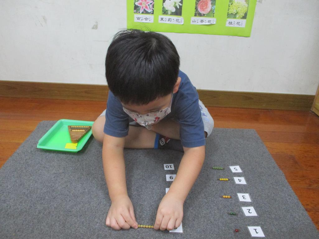 相簿名稱: 茉莉班-蒙特梭利教學(數學教育-彩色串珠1~10)