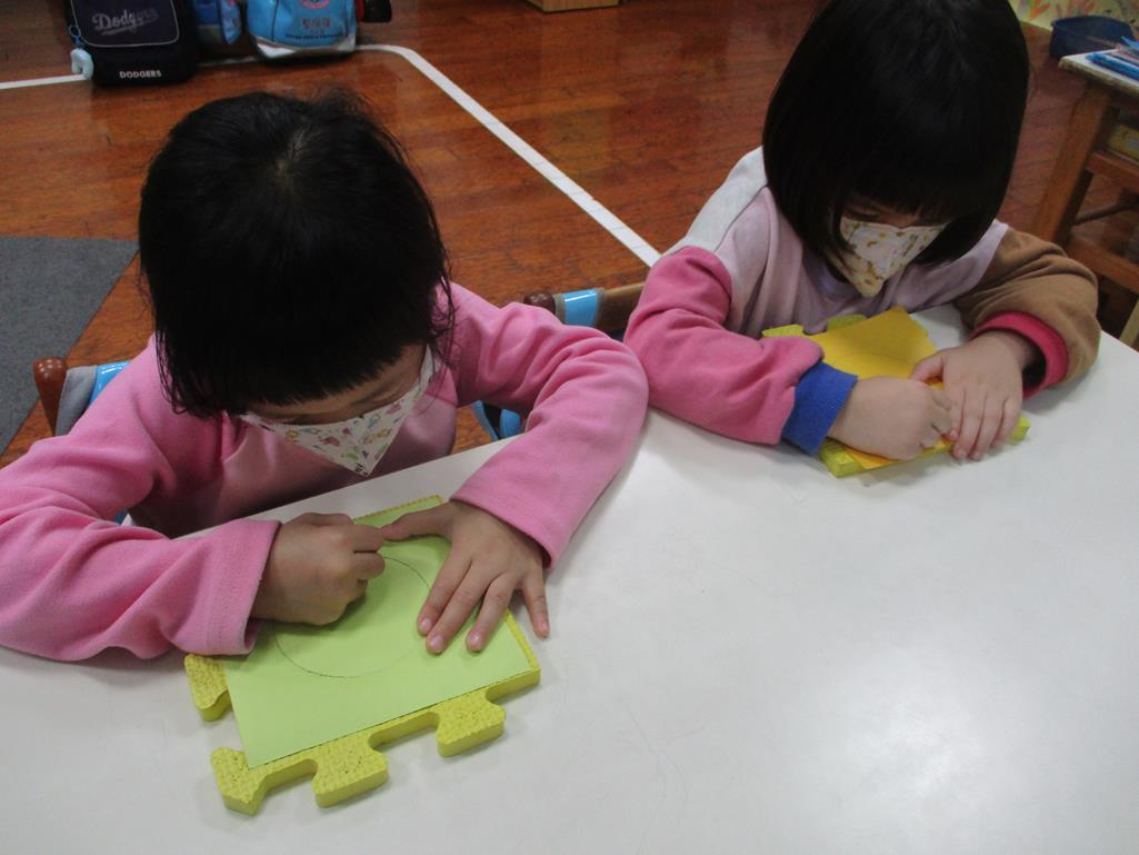 相簿名稱: 茉莉班-蒙特梭利教學(日常生活教育-刺工-幾何圖形(圓形))
