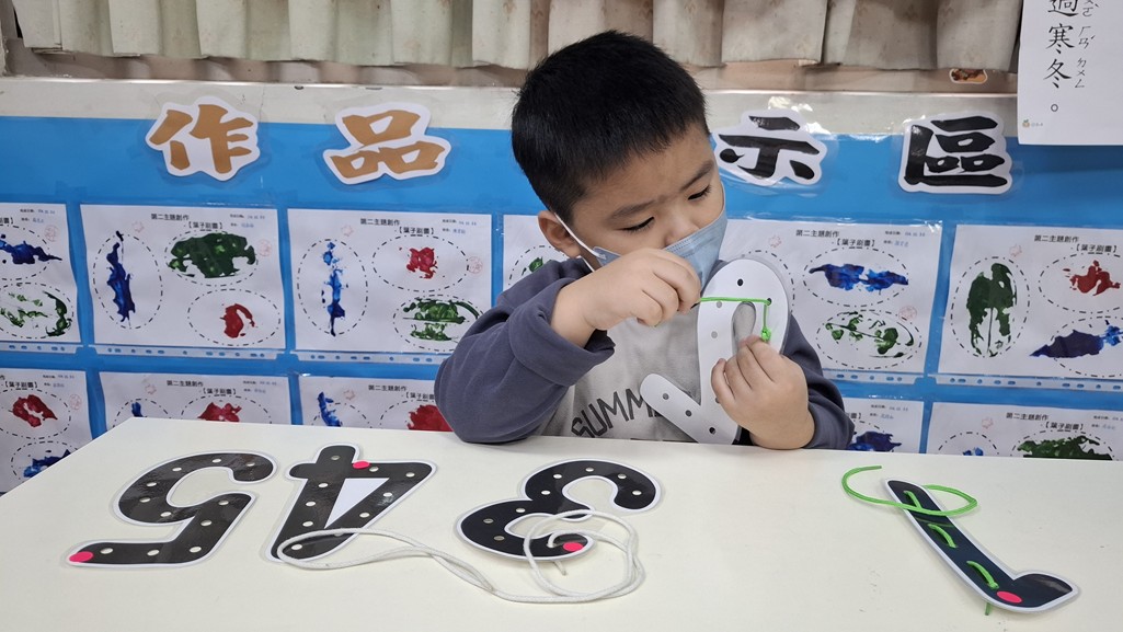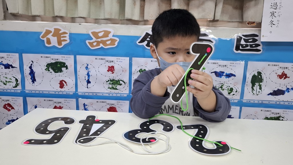 相簿名稱: 葡萄班-蒙特梭利教學(數學教育-數字穿洞板1-5)