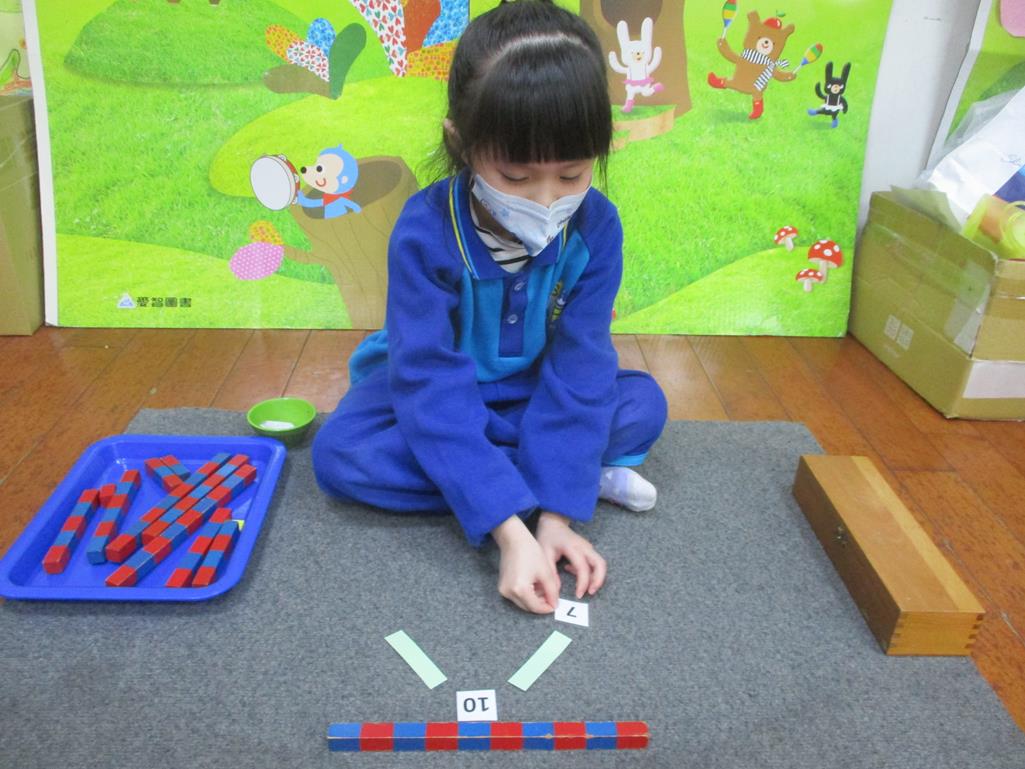 相簿名稱: 茉莉班-蒙特梭利教學(數學教育-10的分解組合(迷你數棒))