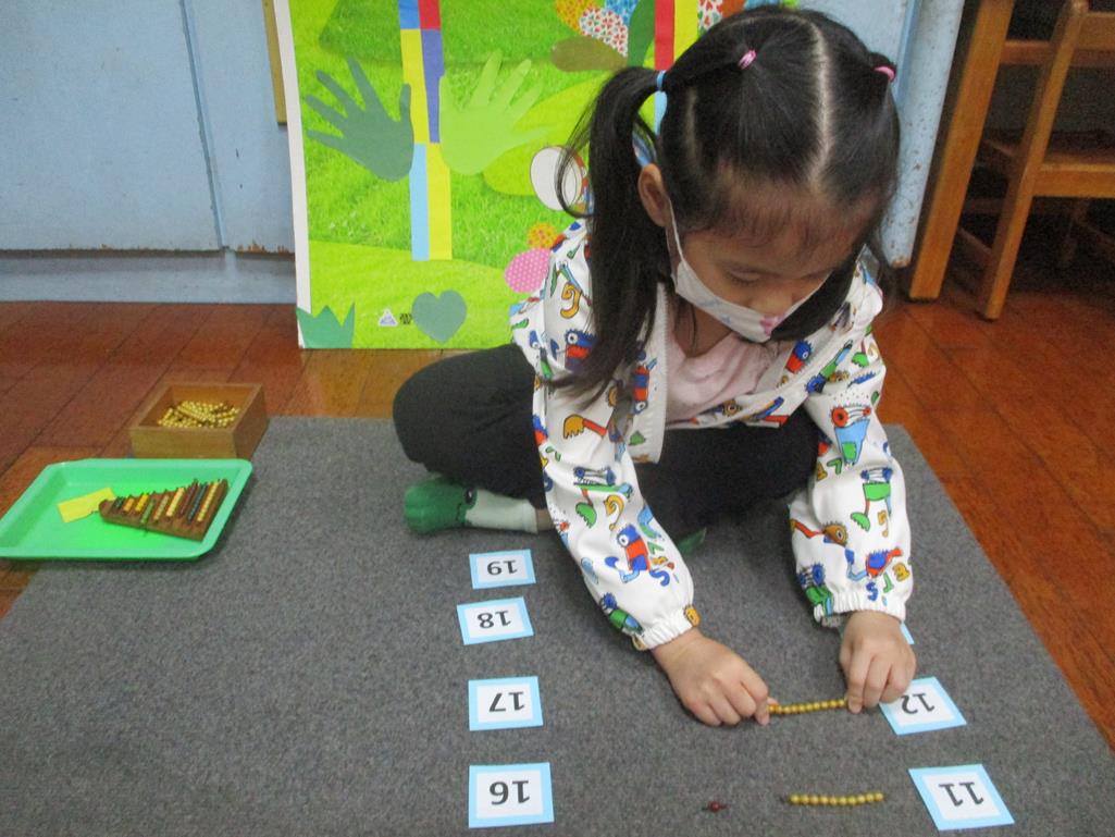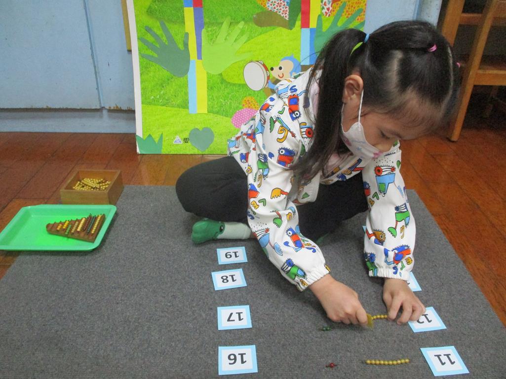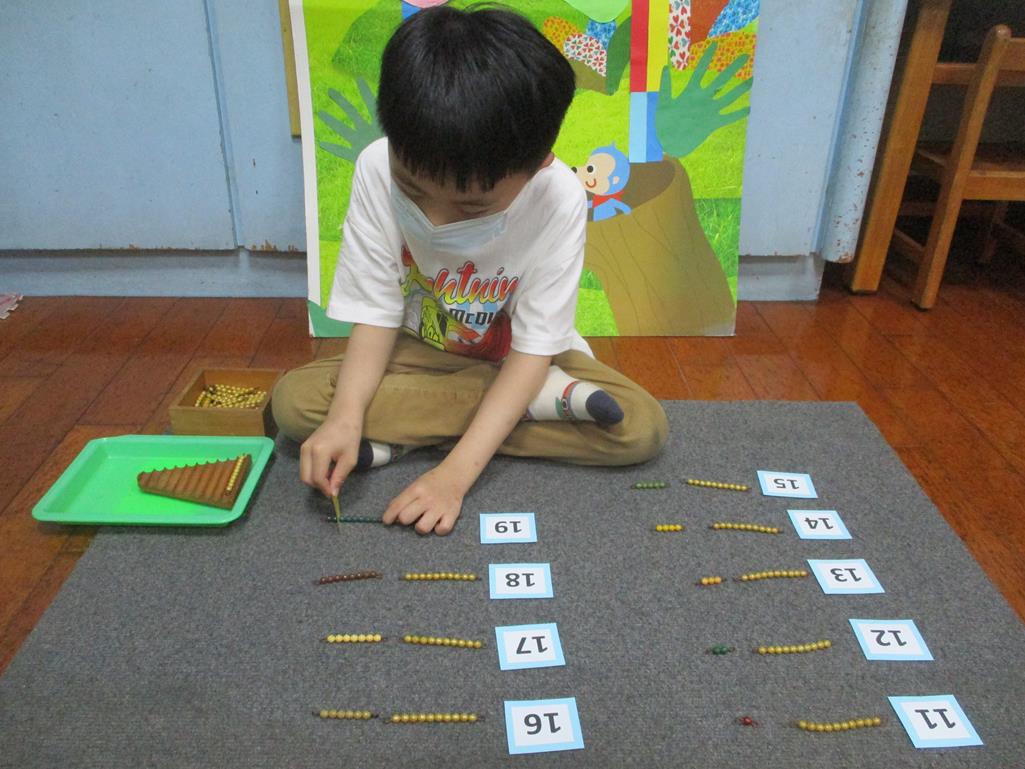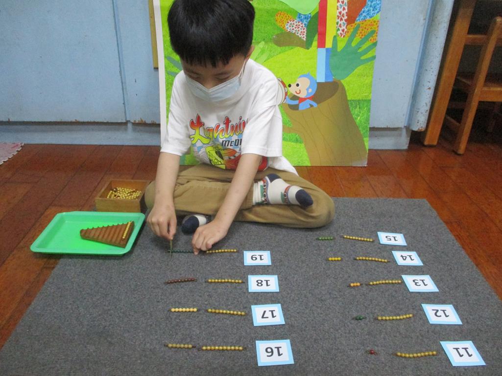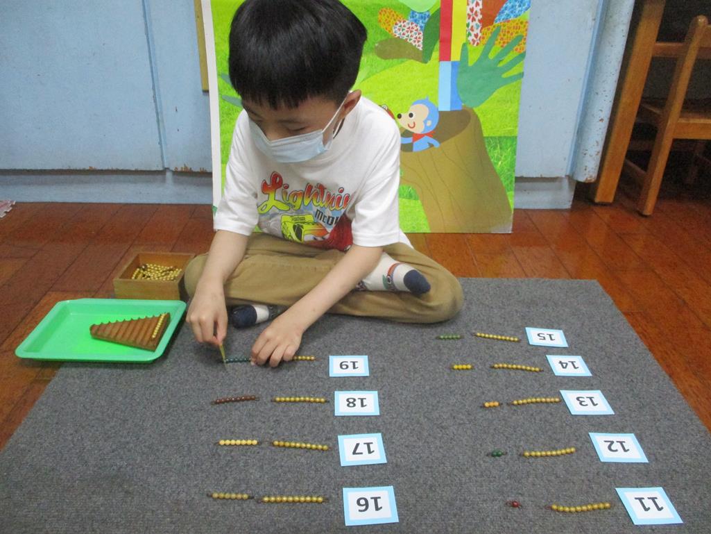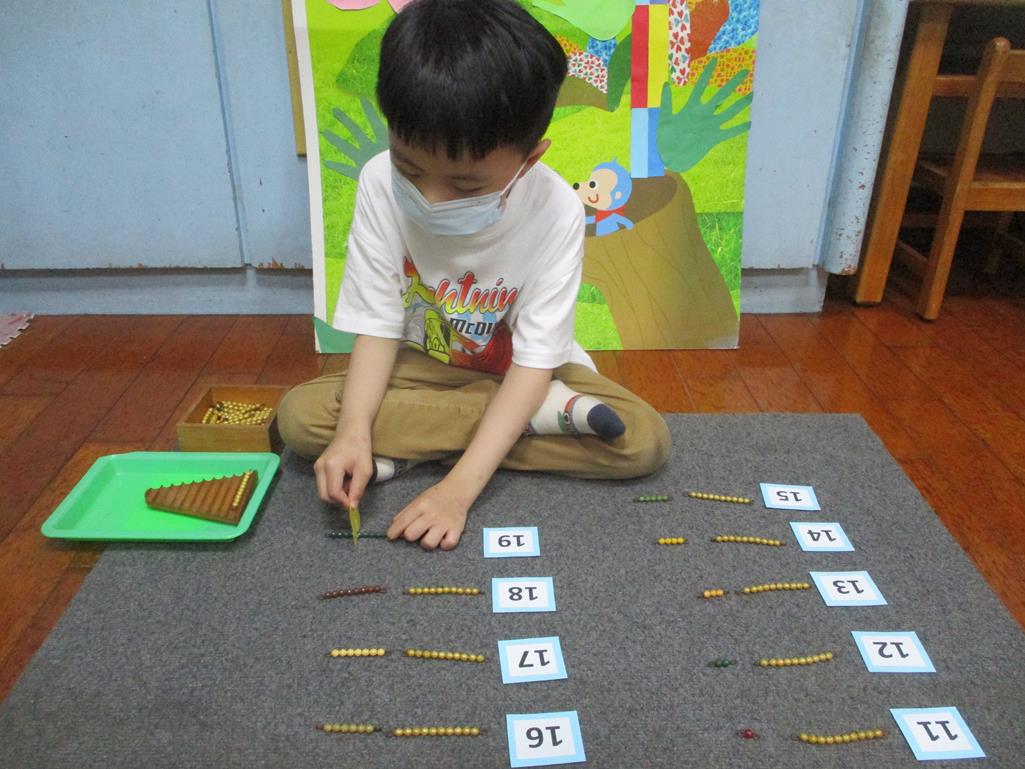 相簿名稱: 茉莉班-蒙特梭利教學(數學教育-彩色串珠11~19+字卡)