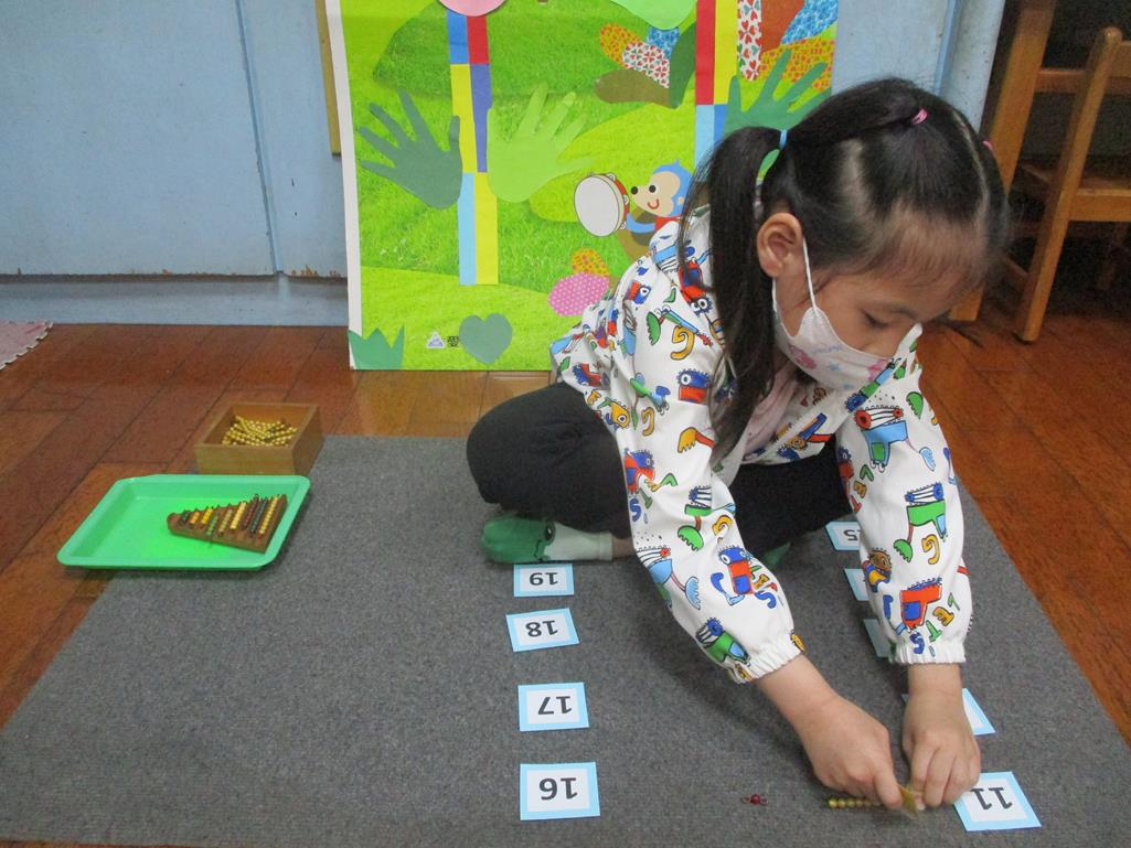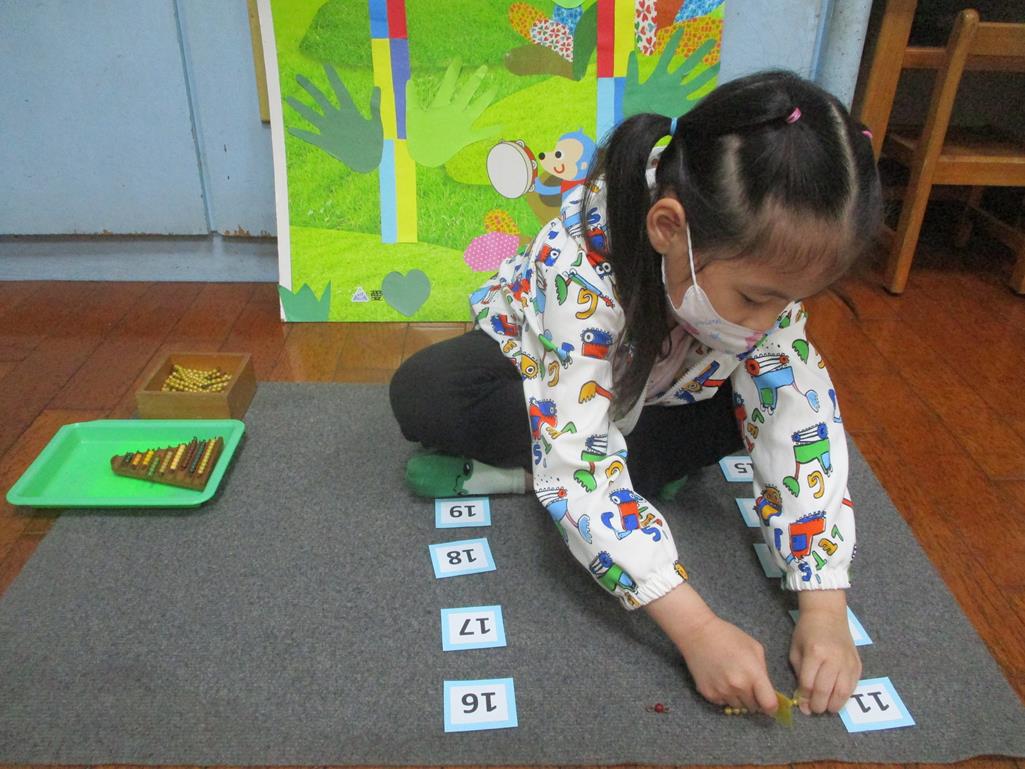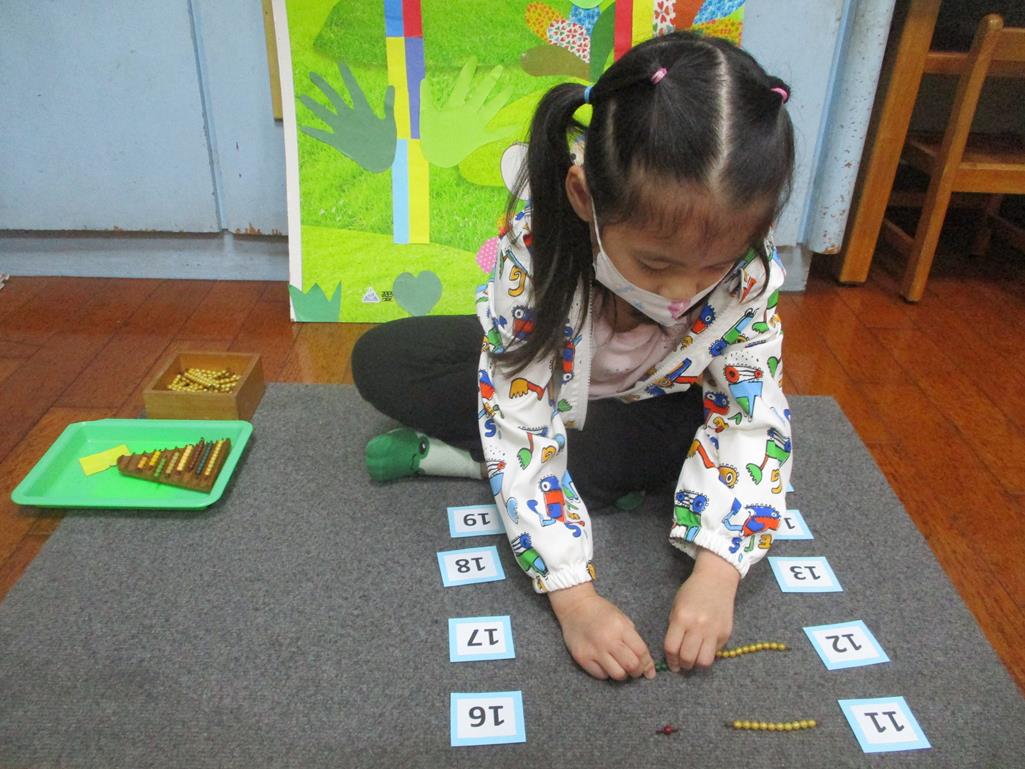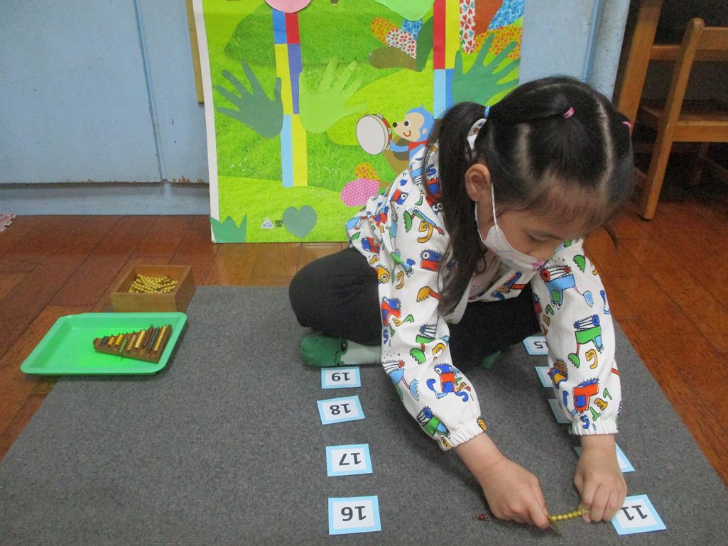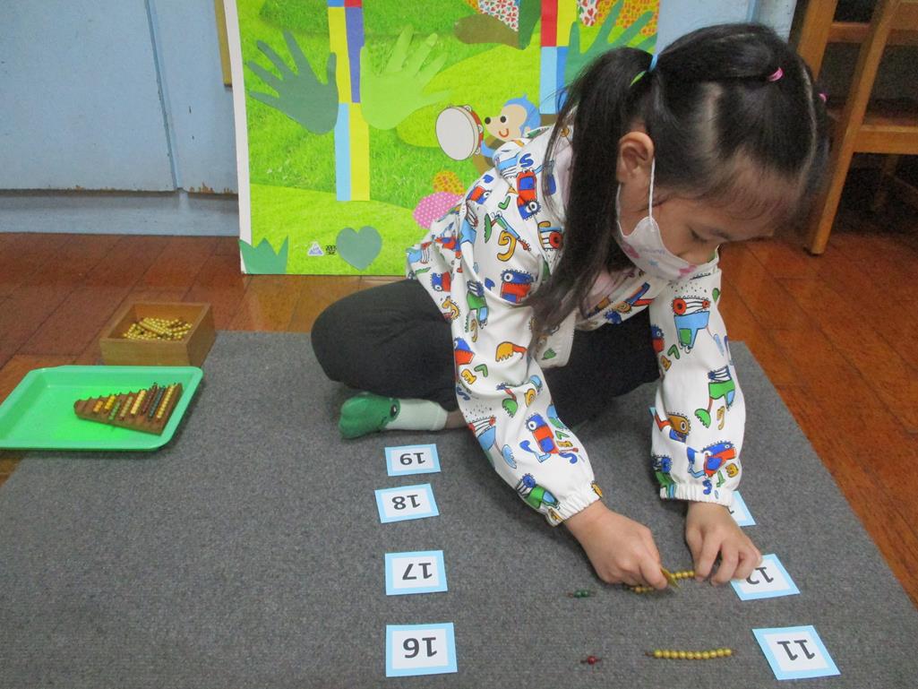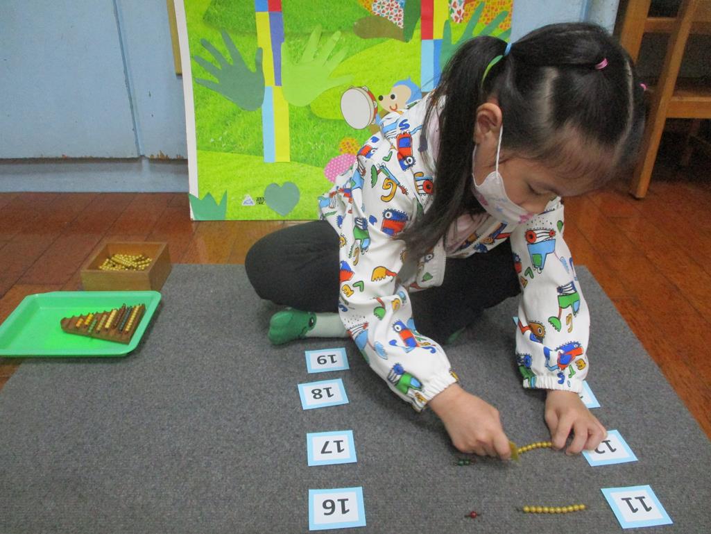 相簿名稱: 茉莉班-蒙特梭利教學(數學教育-彩色串珠11~19+字卡)
